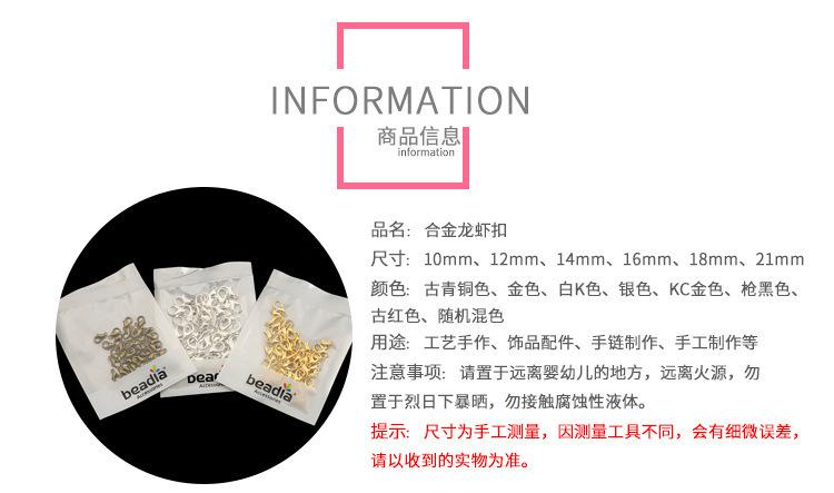 Cierre de langosta de aleación de 12 mm, 50 piezas/paquete, peso aproximado de 16 g