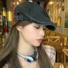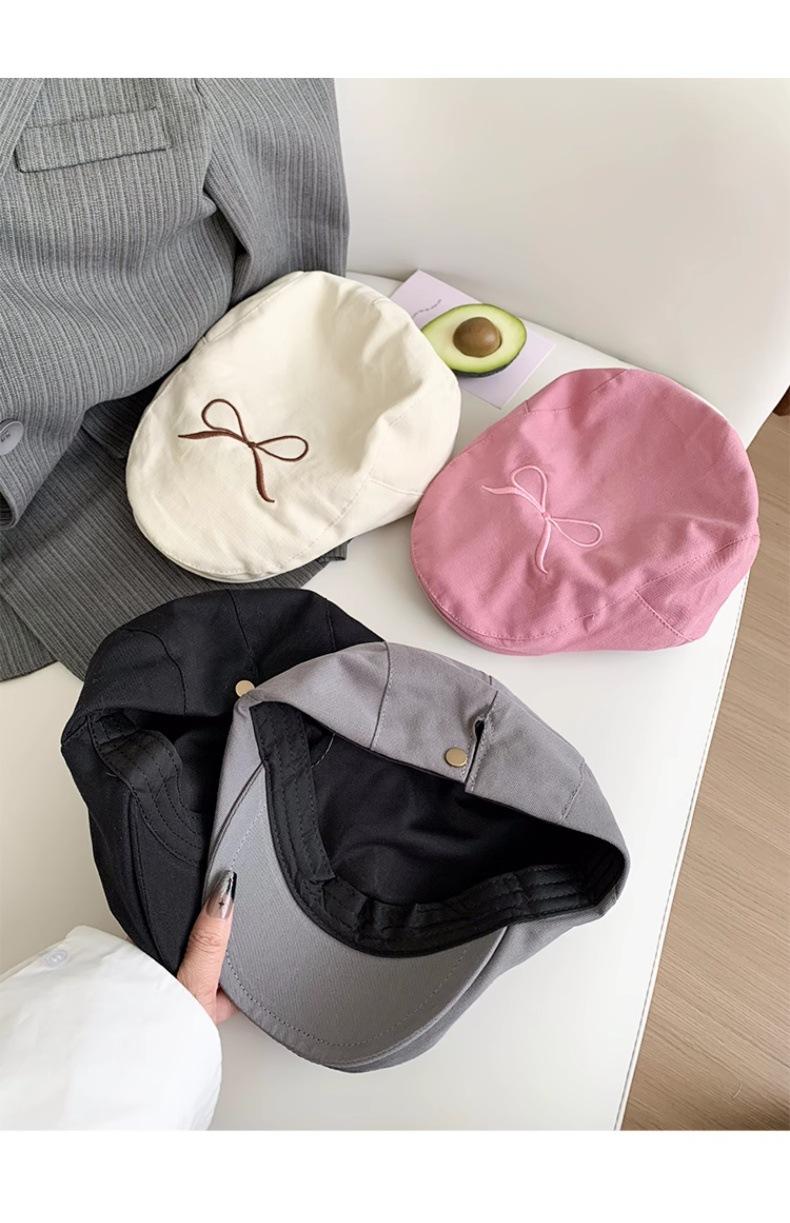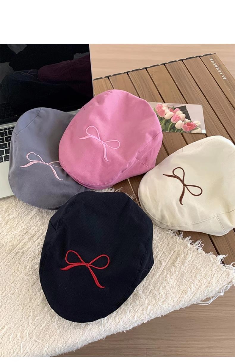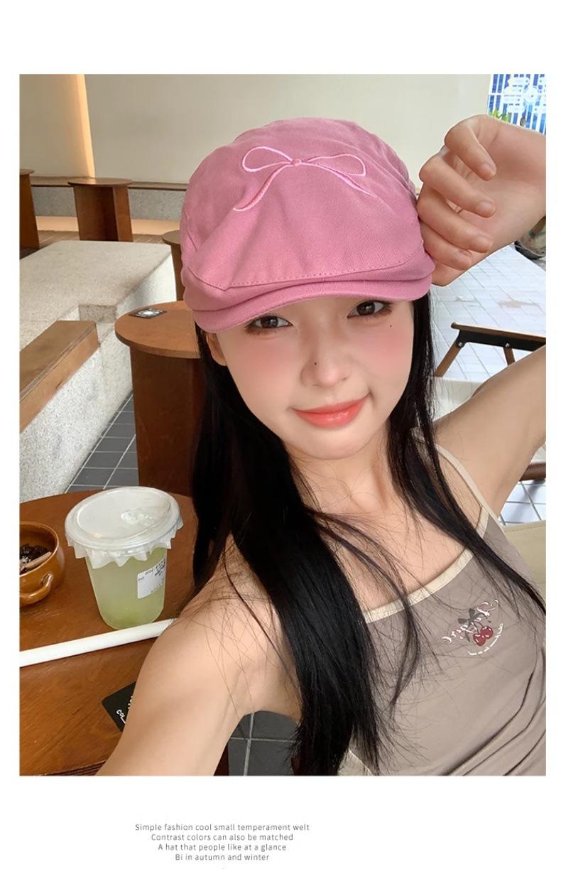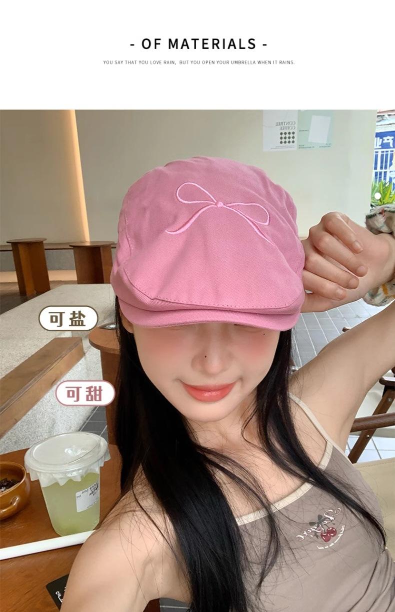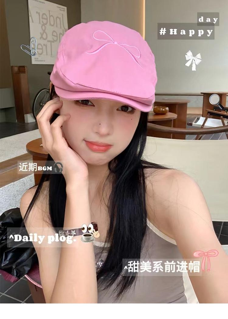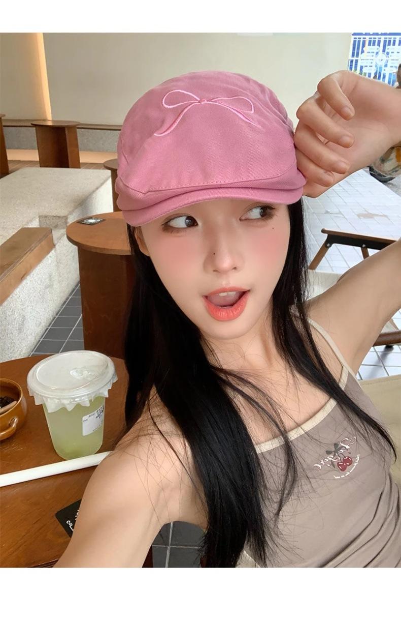 Gorra Avanzada de Mezclilla con Lazo Rosa Retro Estilo Americano para Mujer 2024 Nuevo Verano Ligera Lengua de Pato Sombrero Bailey a la Moda
