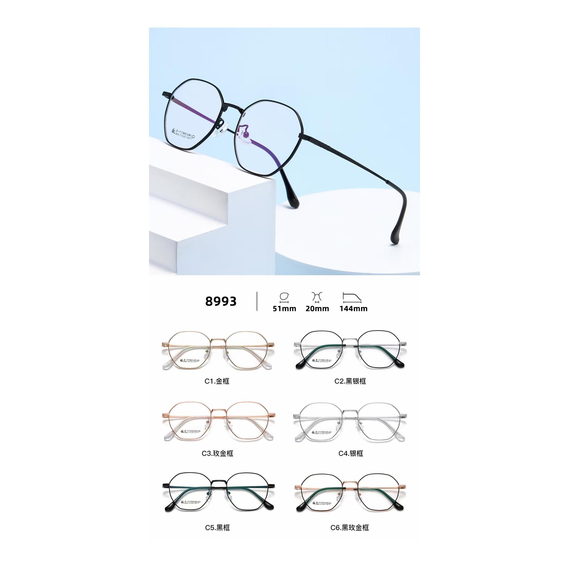2024 Montura de Gafas Poligonales Celebridad Cibernética Gafas Lisas Disponibles para Poder a la Moda Trendy Luz Anti-Azul 8993 para Hombres y Mujeres