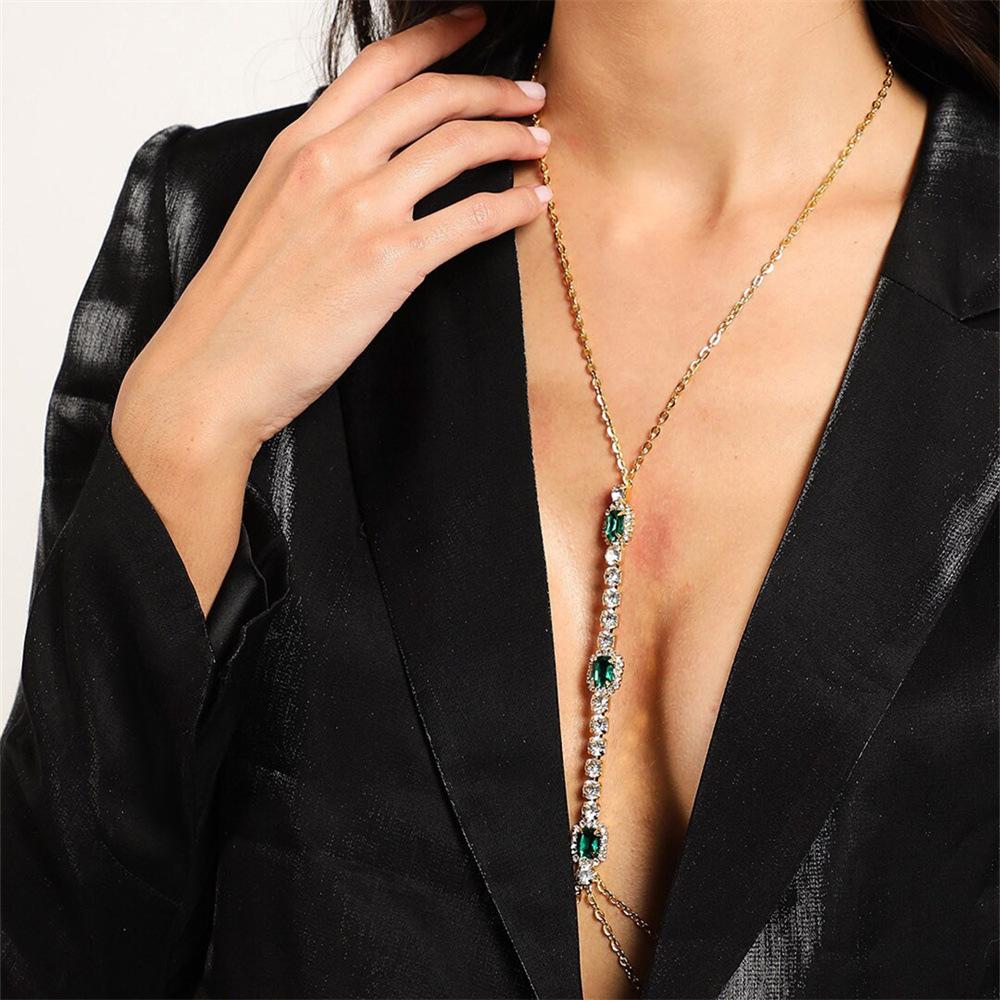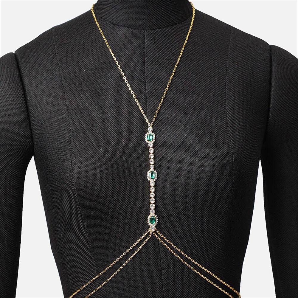 Cadena de pecho de esmeralda cuadrada de AliExpress Sexy Lujo Bikini Cadena corporal de diamantes de imitación Accesorios cadena corporal