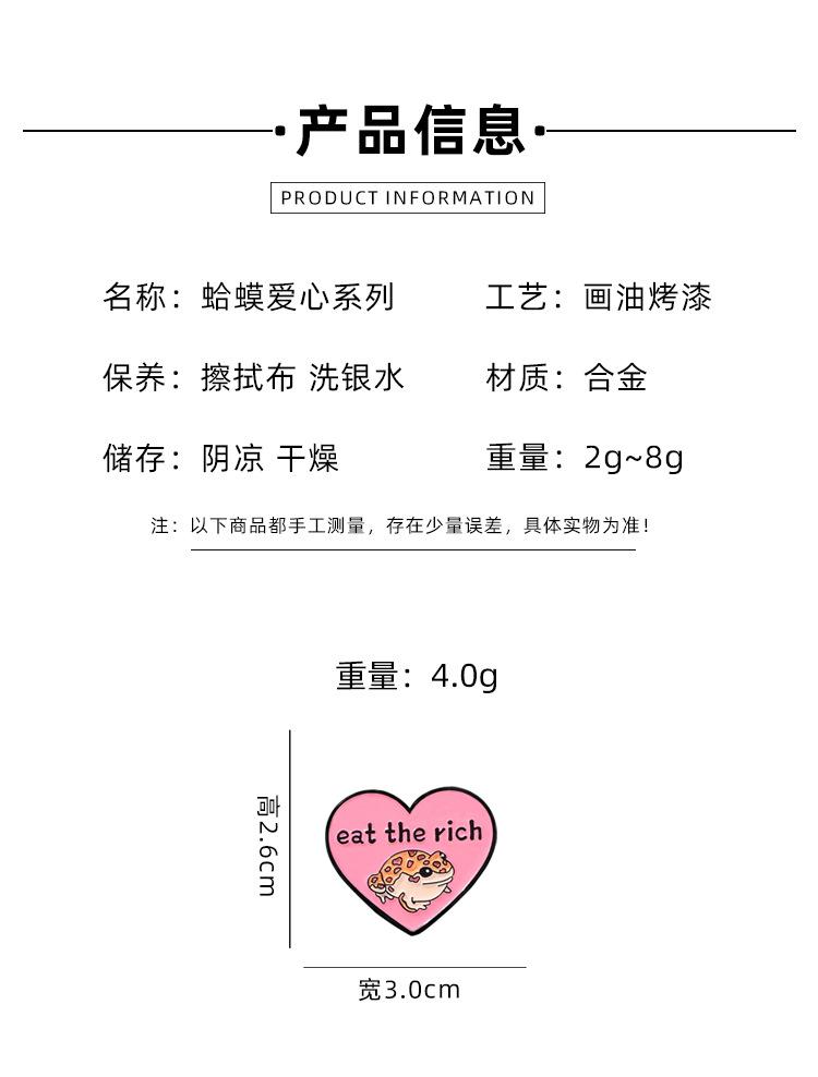 Broche de accesorios de ropa de gran venta, linda rana, sapo, dibujos animados, amor inglés, dulce gota de aceite, insignia de aleación