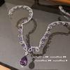 Collar de amatista brillante bañado en oro de 18 quilates con gotas de circonita y cadena de diamantes brillantes. Gargantilla brillante.