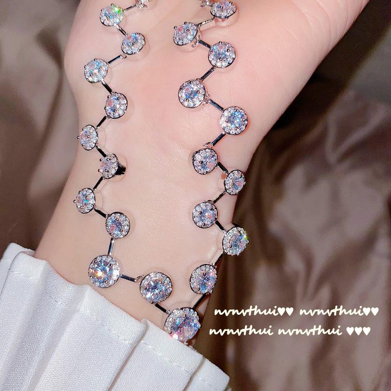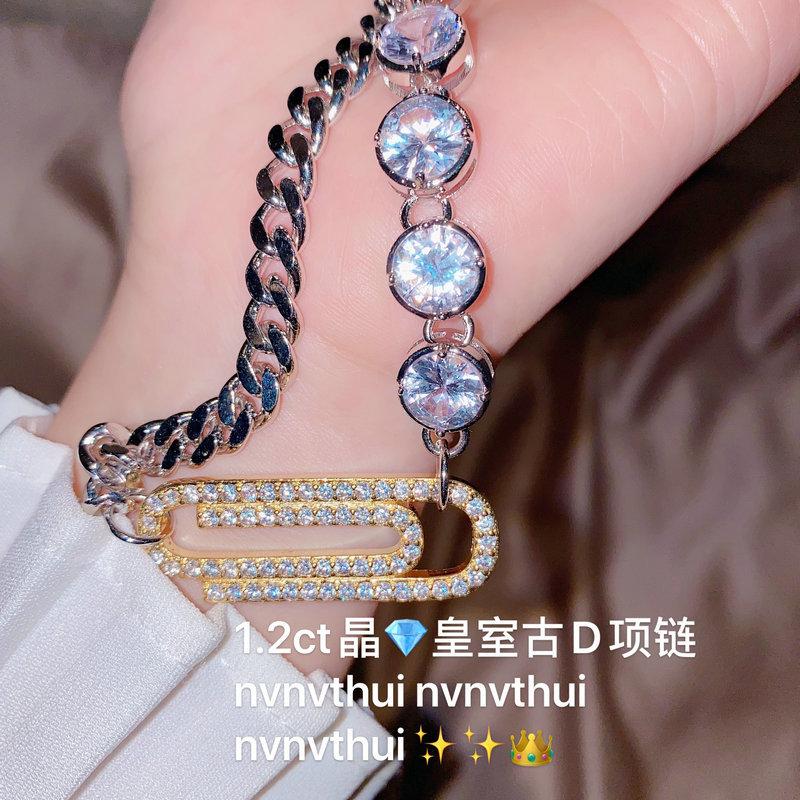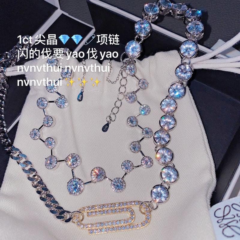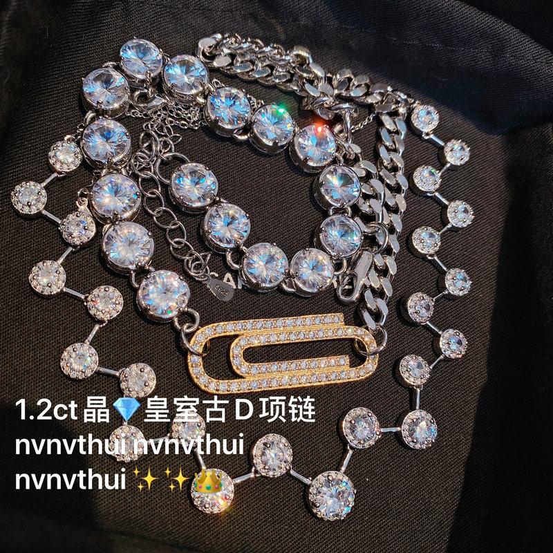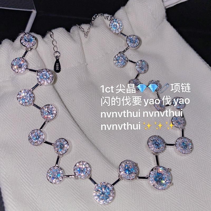 Huang SHI bright stars round diamond necklace, Huang SHI ~ big diamond 1 karat chain splicing necklace, Lace J...