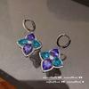 A Pair of Purple Blue Zircon Star Flower Earrings