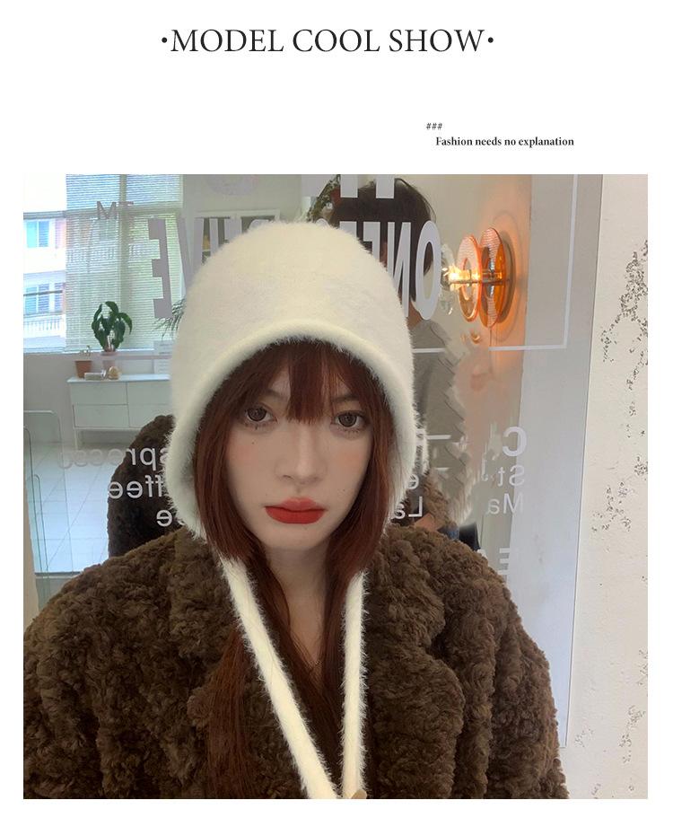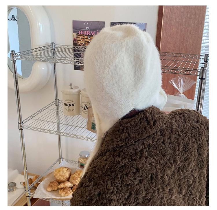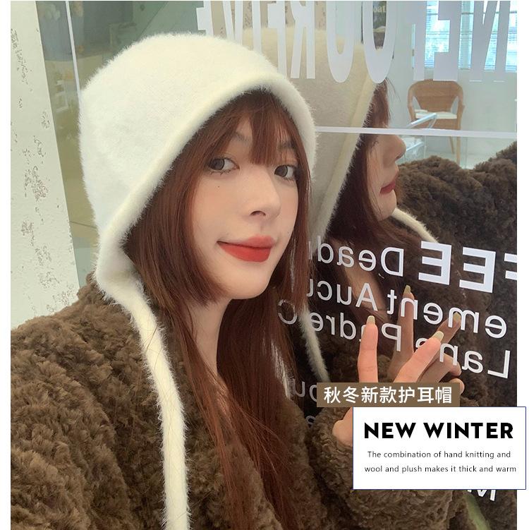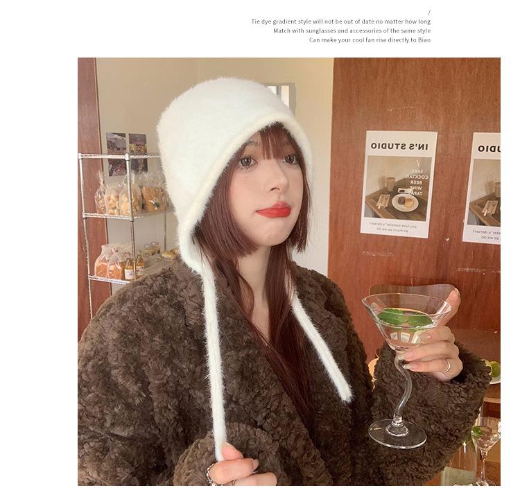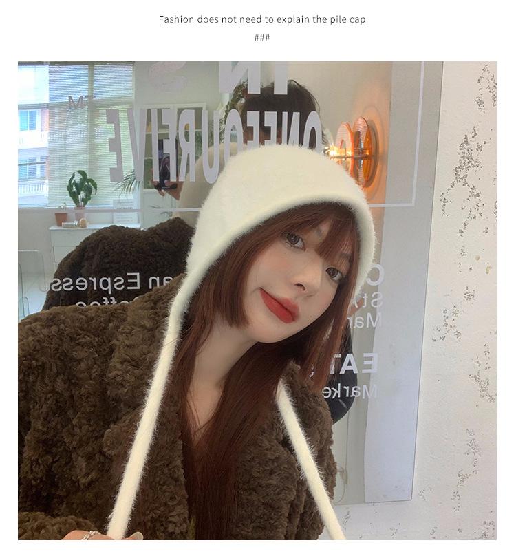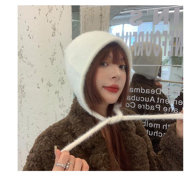 Gorro de Invierno Gorro de Pelo Blanco Imitación Piel de Conejo Cálido Gorro Pulóver para Niñas Lana Tejida Protección para las Orejas Gorro Lei Feng para Mujer