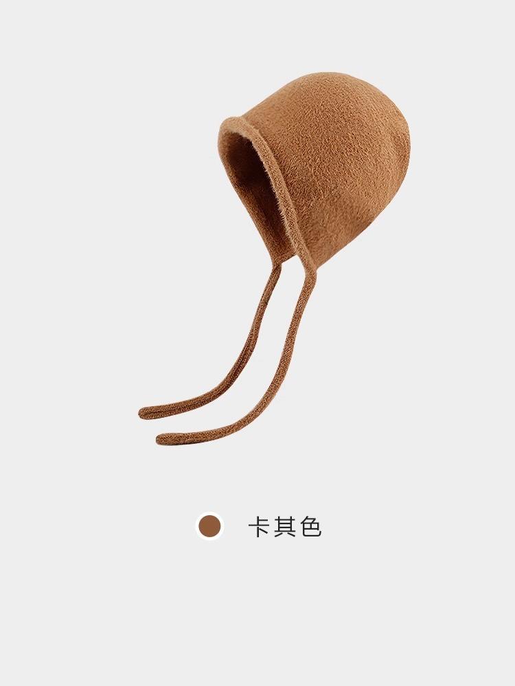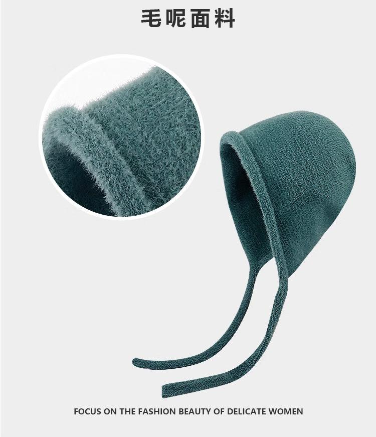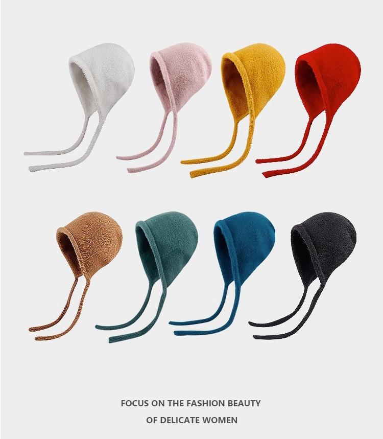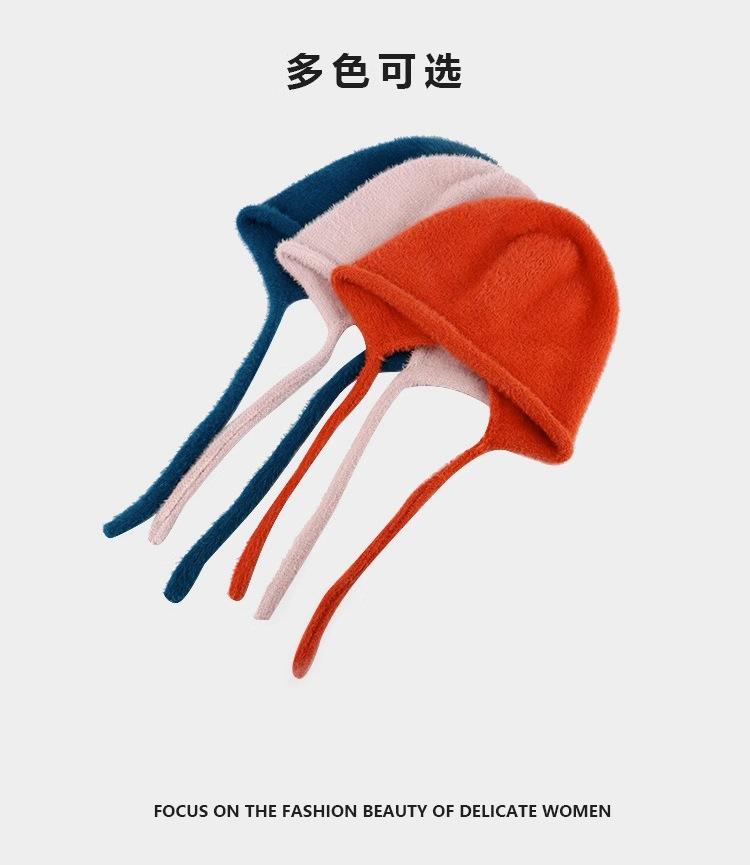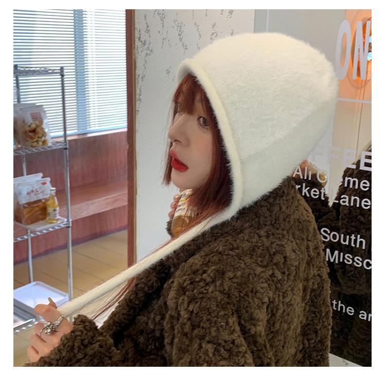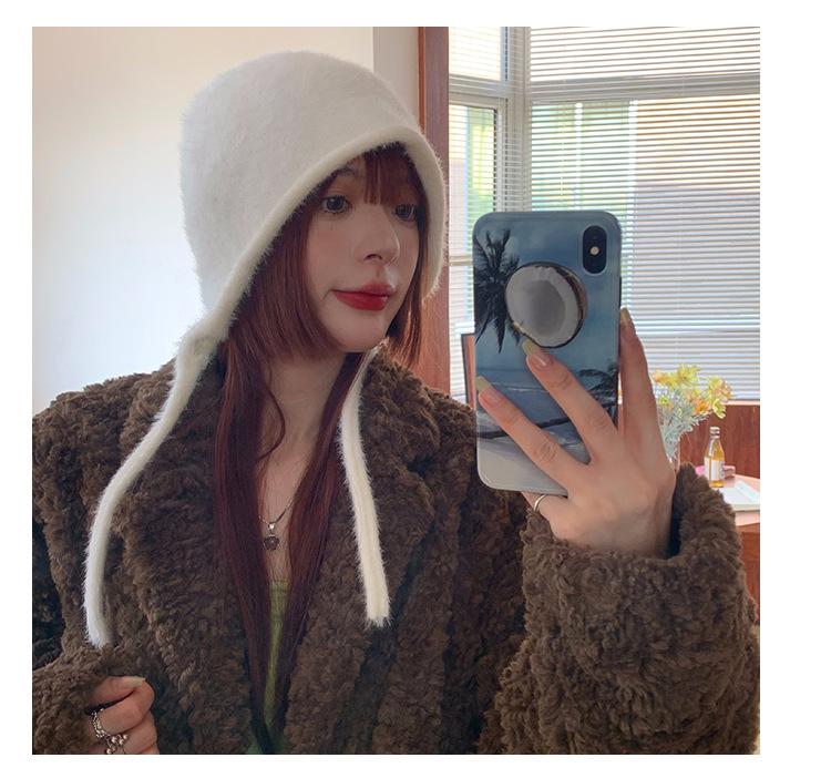 Gorro de Invierno Gorro de Pelo Blanco Imitación Piel de Conejo Cálido Gorro Pulóver para Niñas Lana Tejida Protección para las Orejas Gorro Lei Feng para Mujer