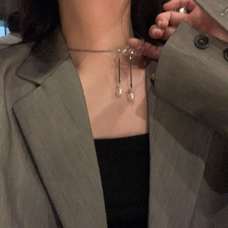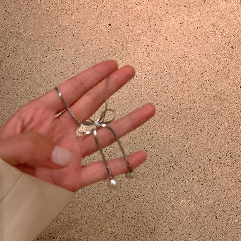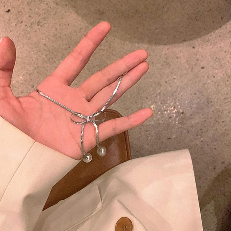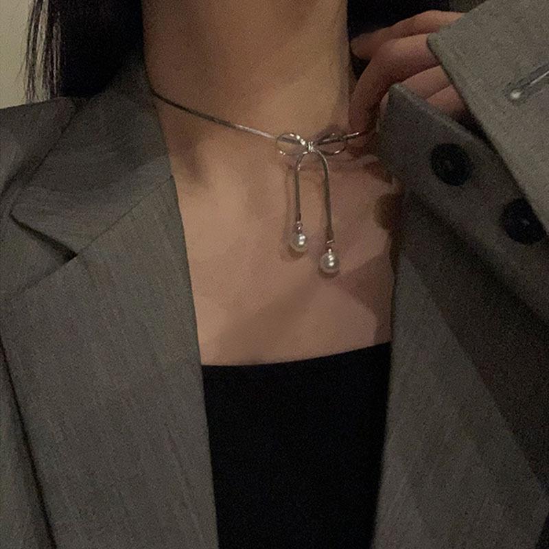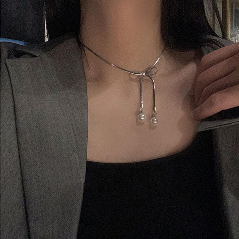 Cadena de Clavícula Coreana Nueva Plata Lazo para Mujer 2021 Nuevo Diseño Versátil Collar de Perlas Tendencia Colgante