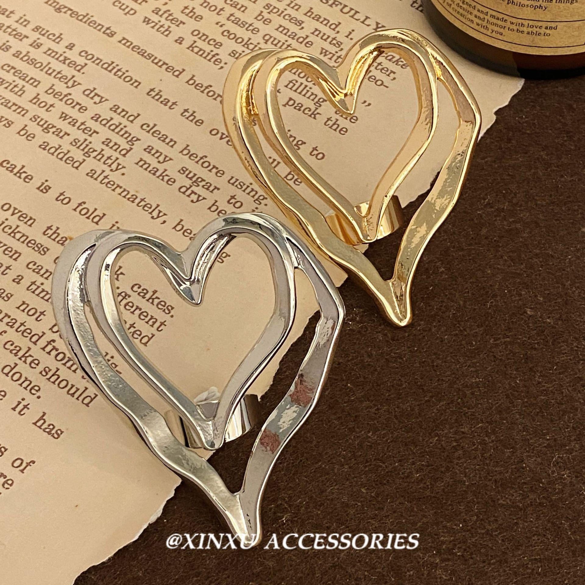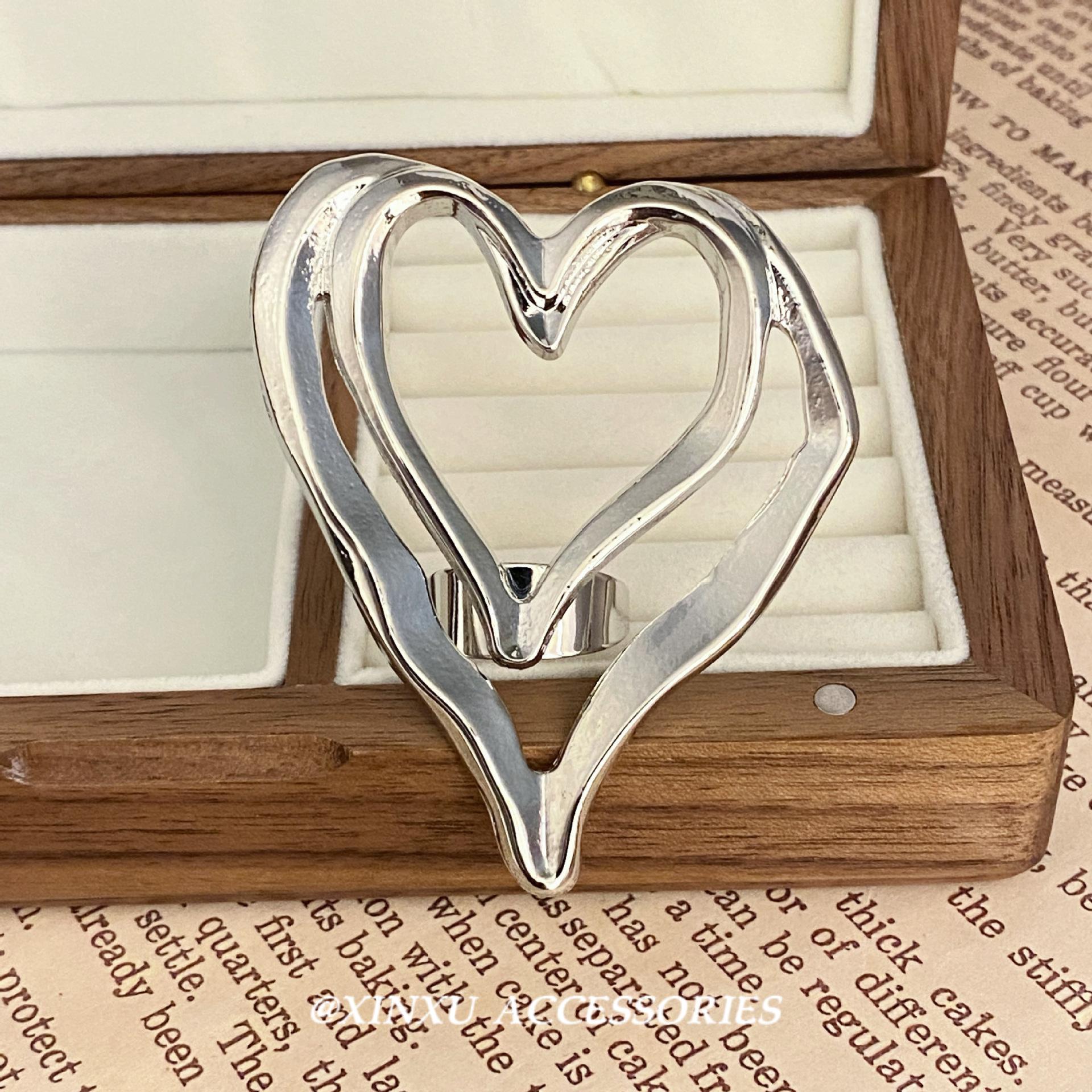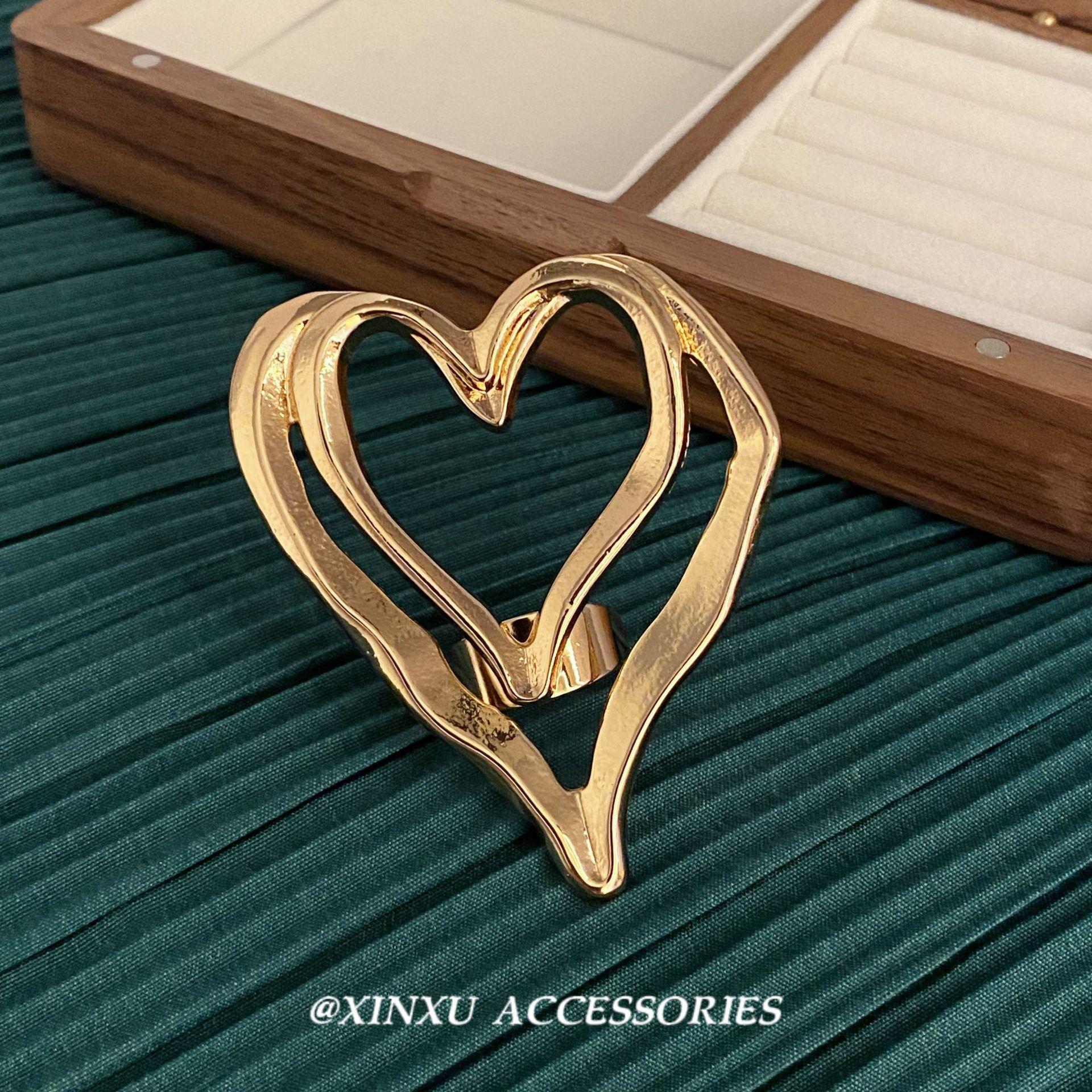 Anillo de Corazón Hueco de Doble Capa para Mujer Nuevo Europeo y Americano Diseño Nicho Hip-hop Atmosférico Celebridad de Internet Accesorios de Anillo Elegantes