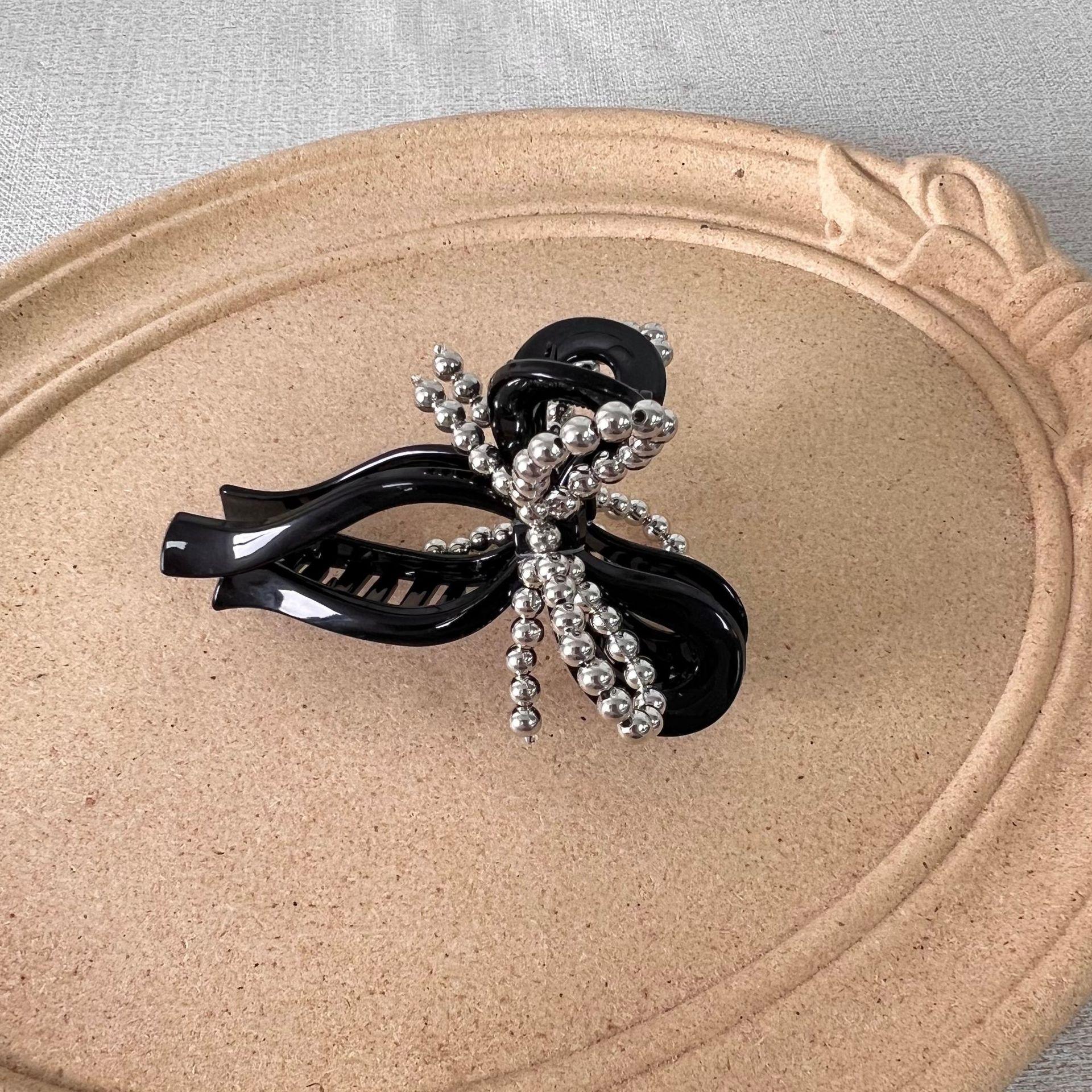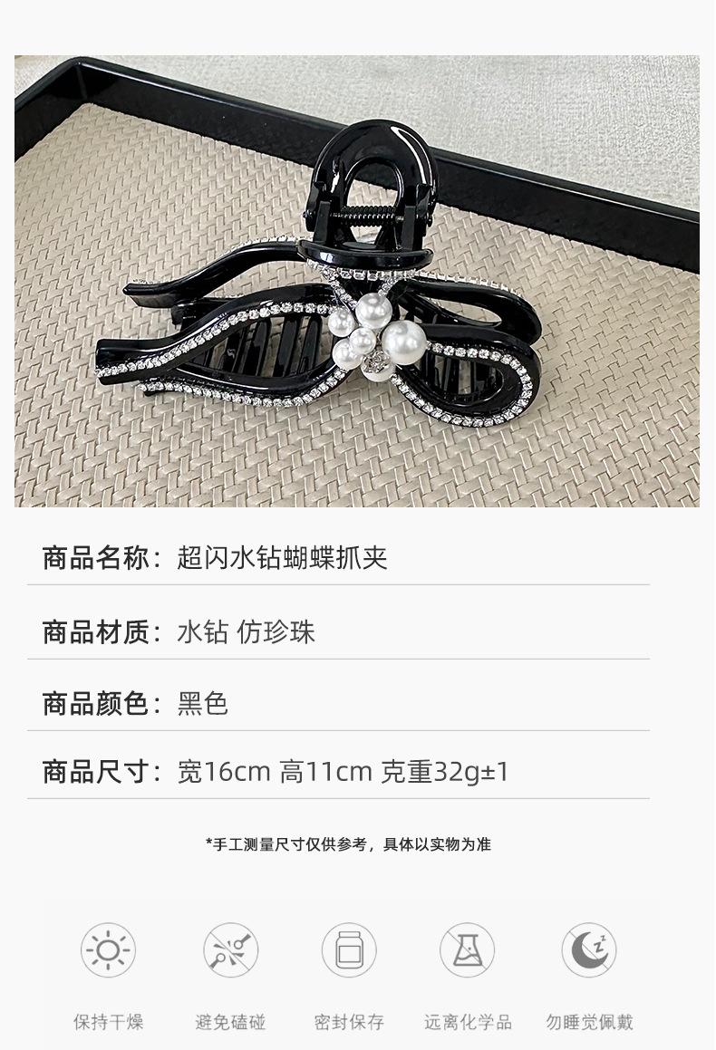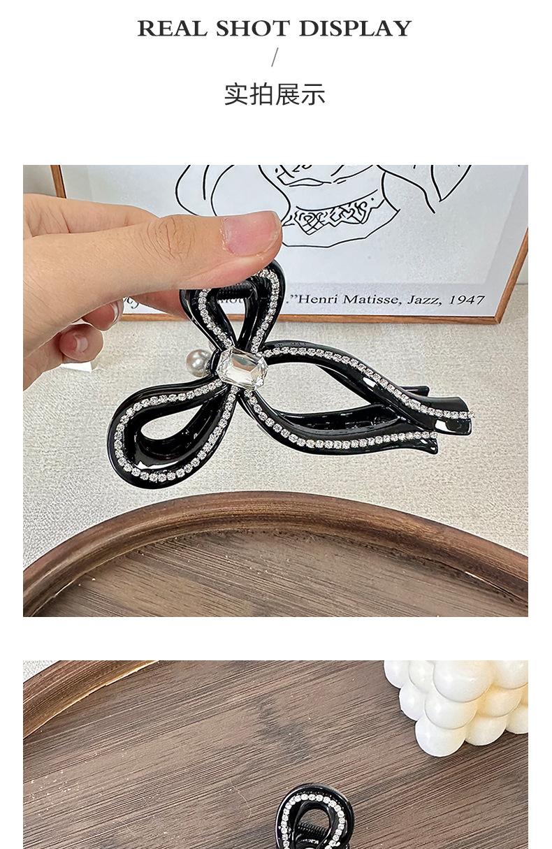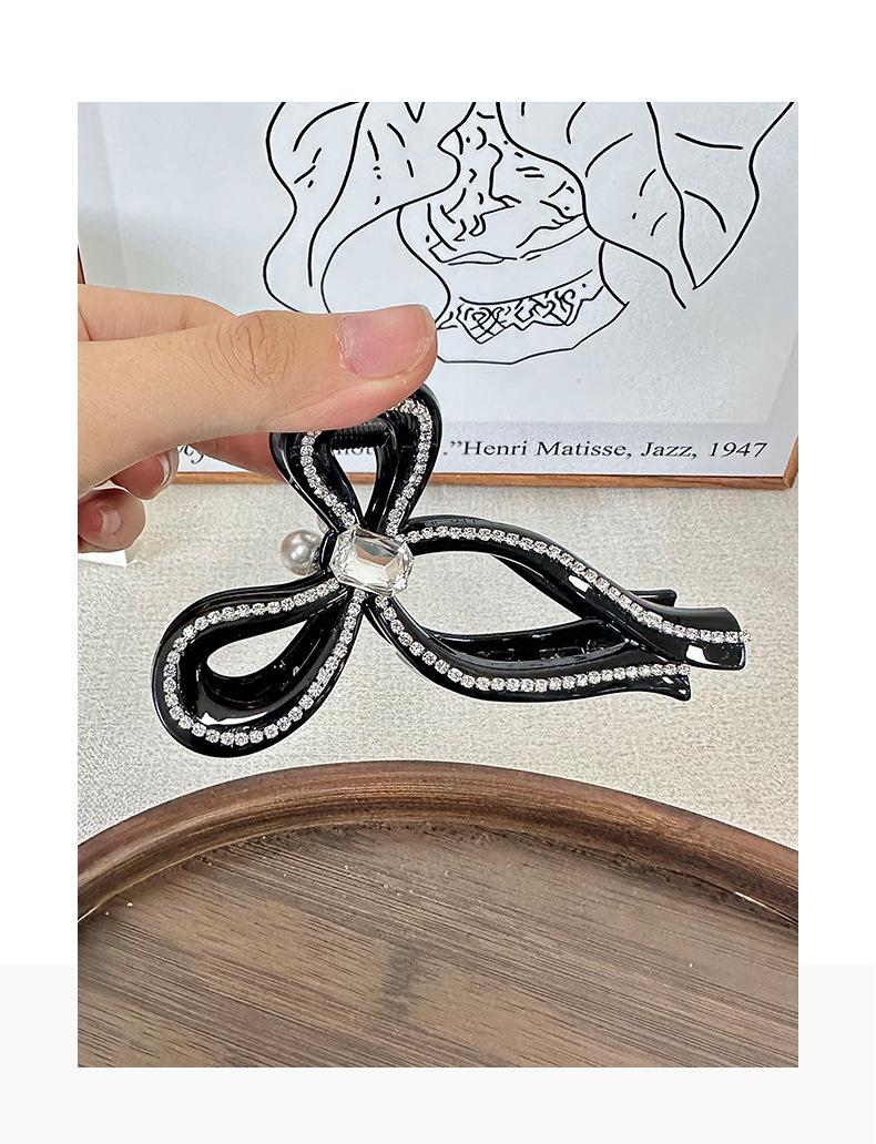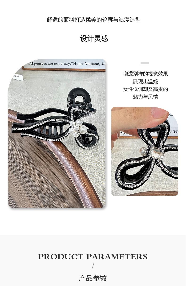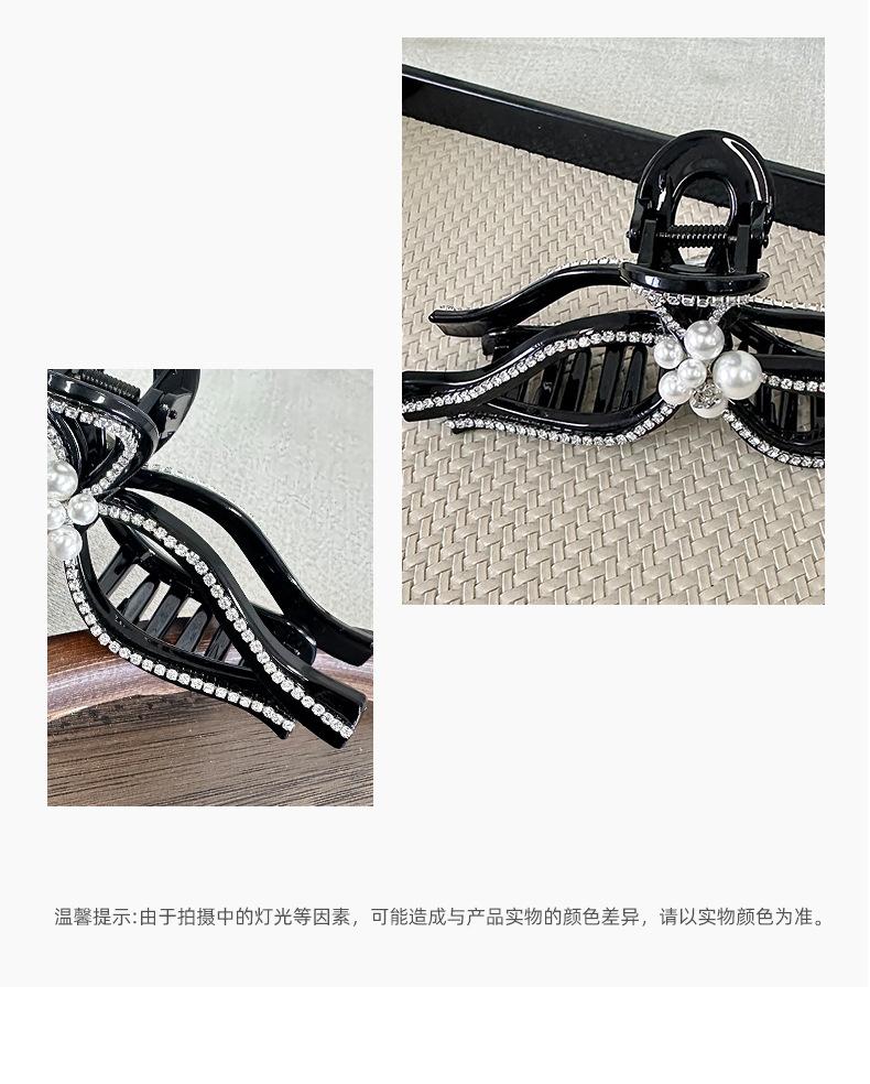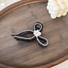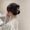 Clip de pelo estilo coreano con forma de lazo de perlas y diamantes de imitación, gran volumen, sensación de alta gama, exquisito clip de tiburón, clip superior con temperamento