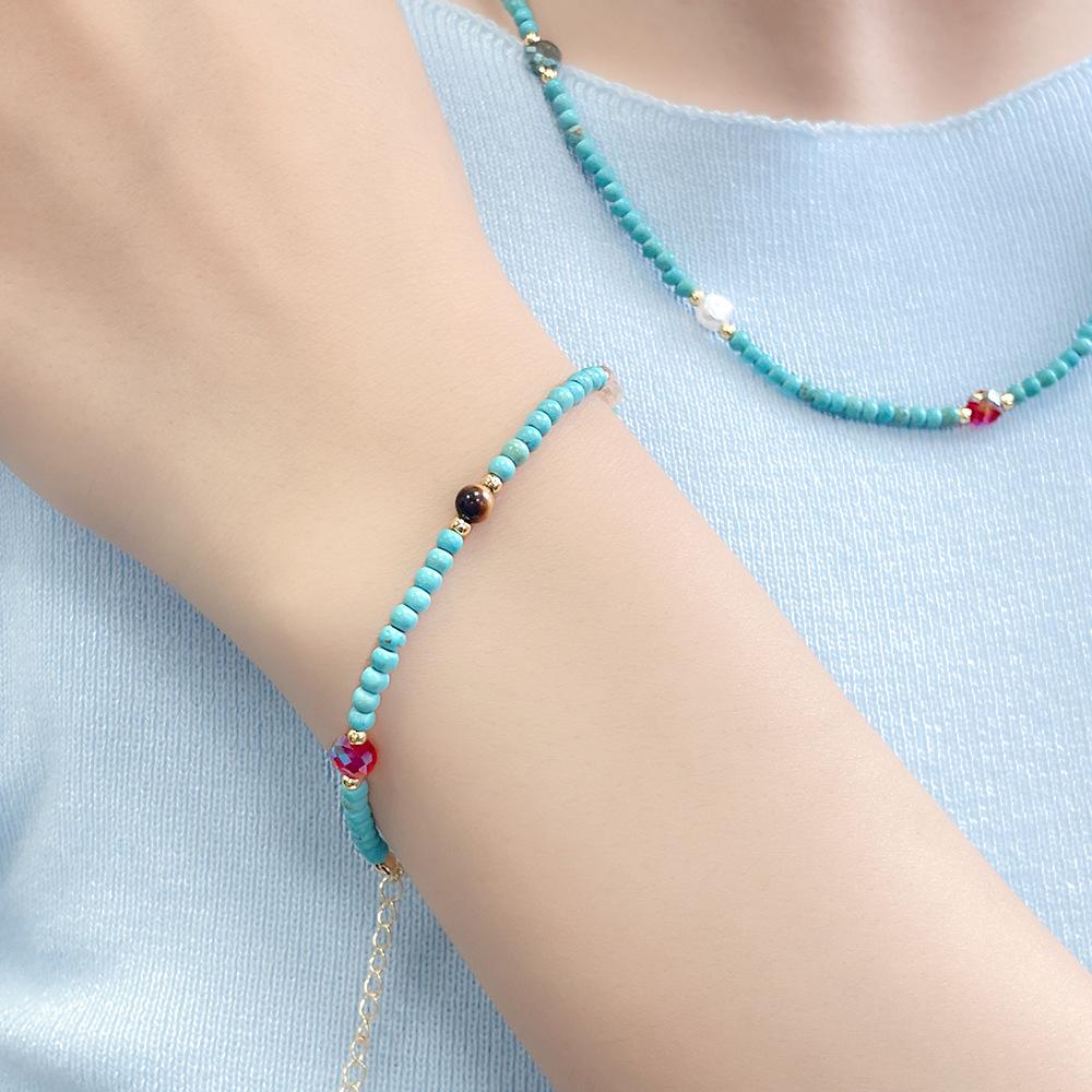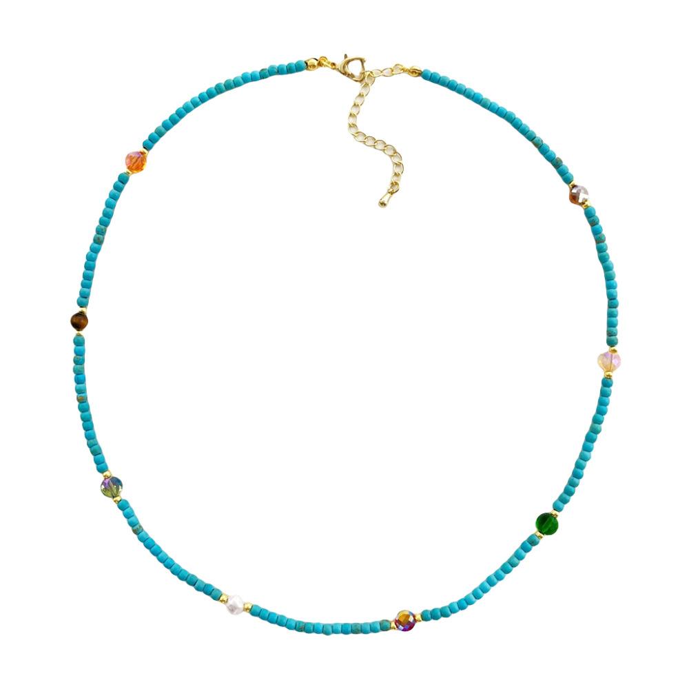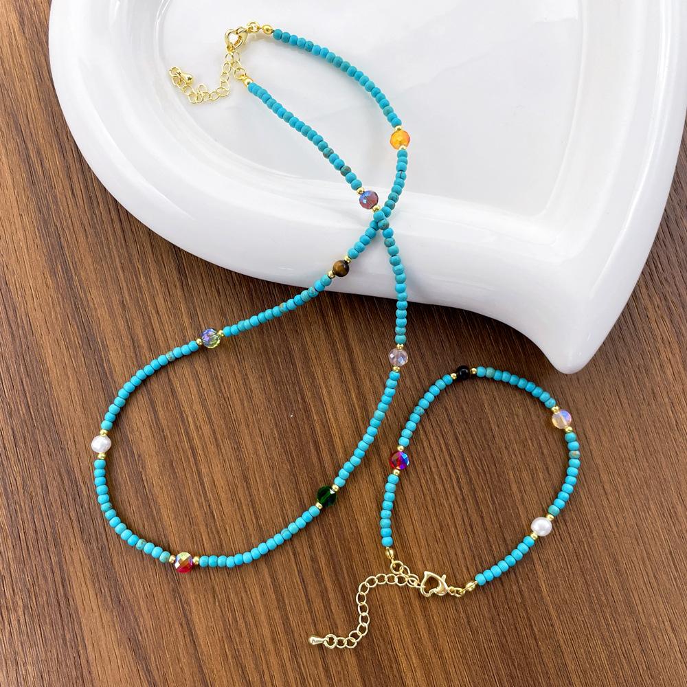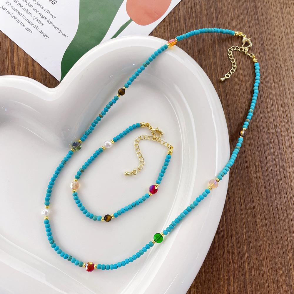 Collar Popular Transfronterizo de Cuentas Turquesa para Mujer, Cuentas de Vidrio, Pulsera de Perlas de Agua Dulce, Juego de Colgantes Decorativos Multiuso