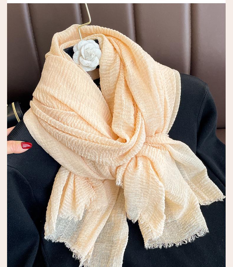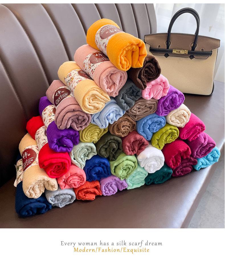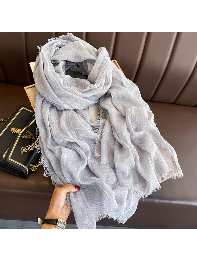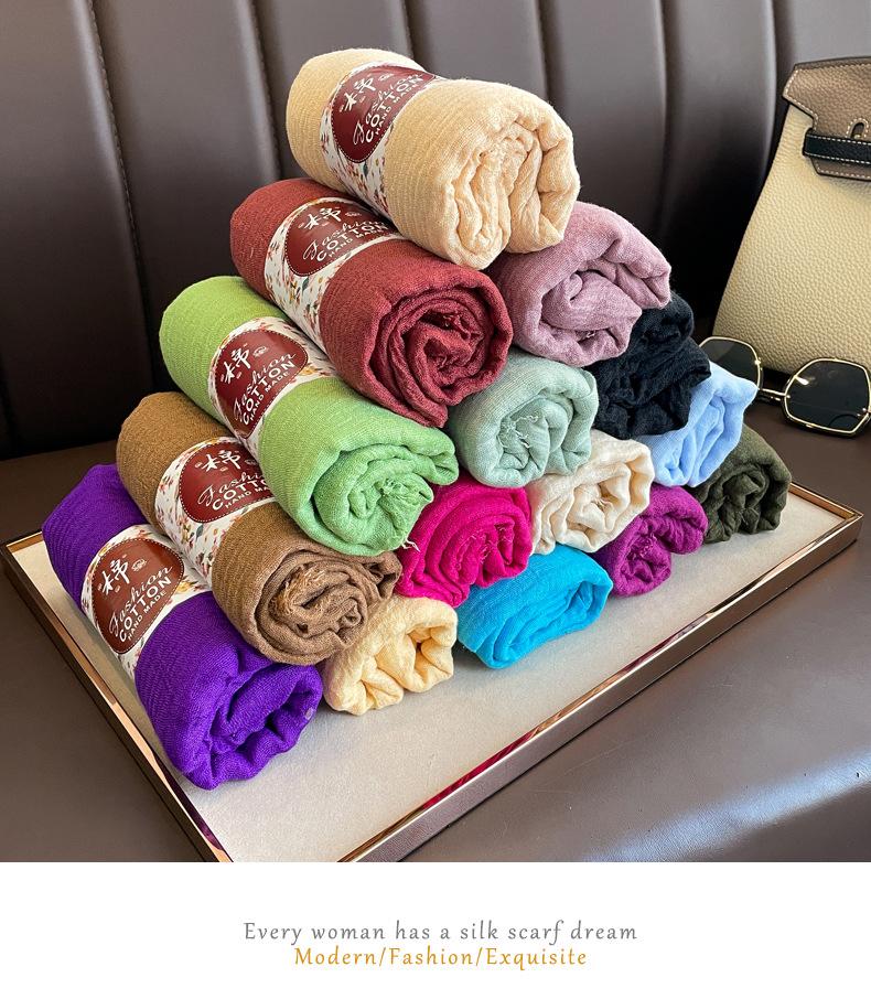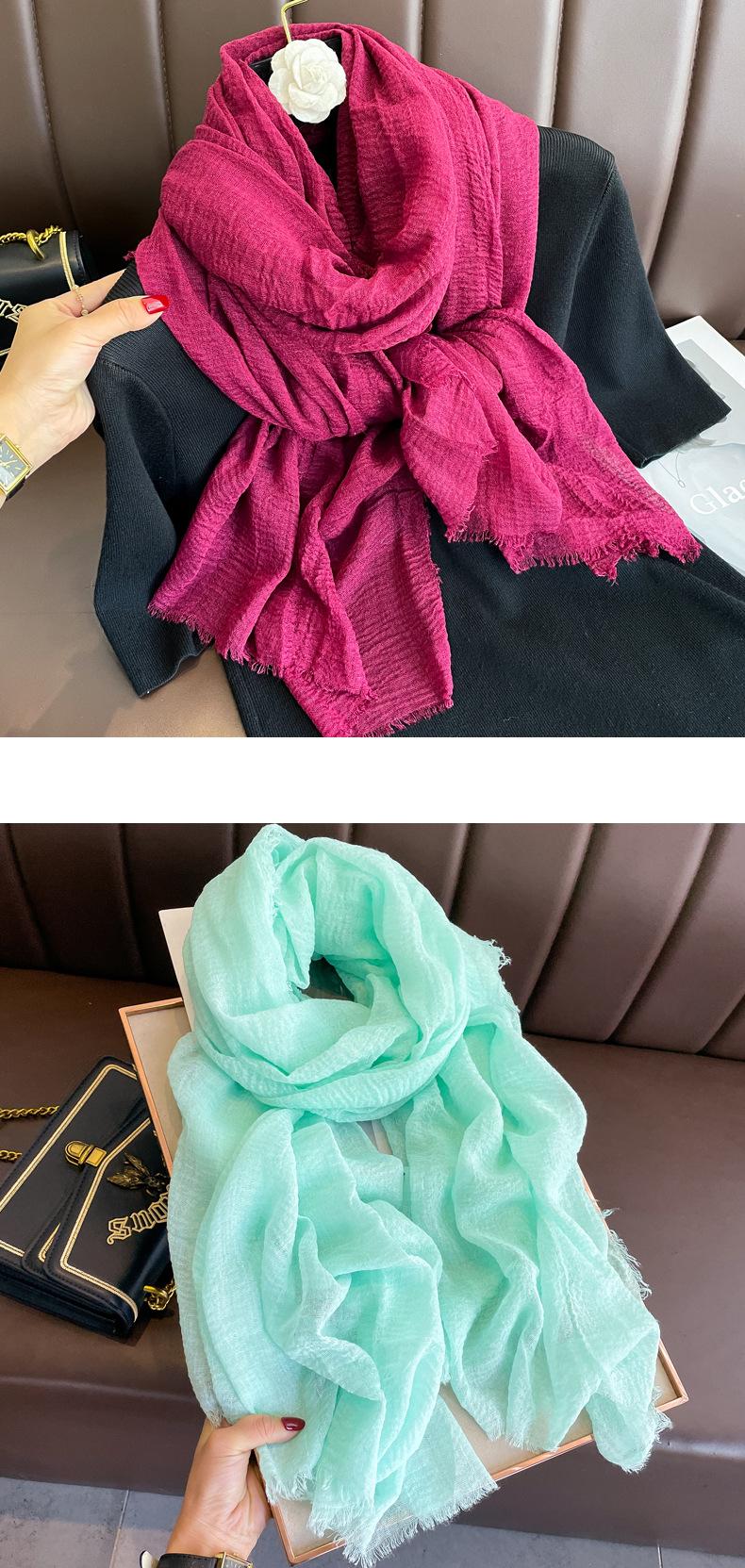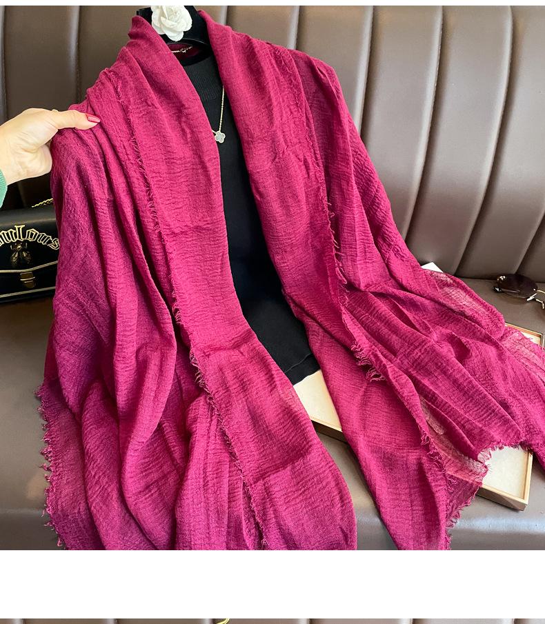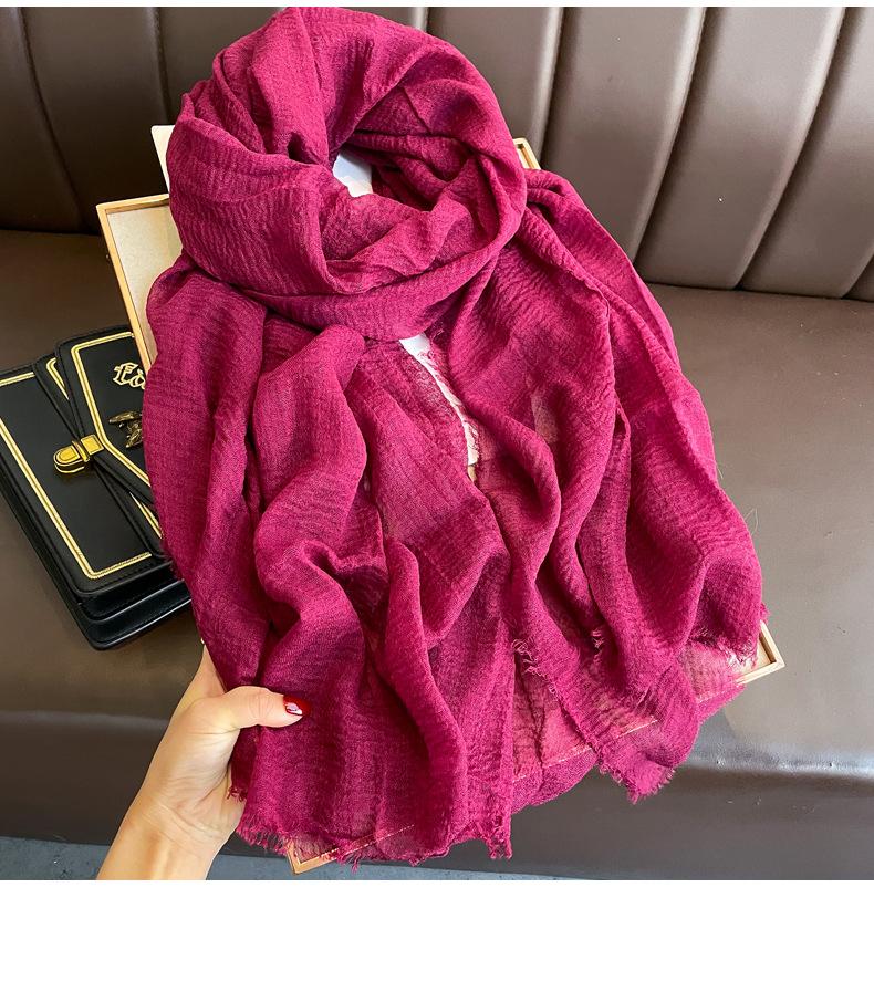 Bufanda roja vino para mujer, fina, de algodón y lino, para primavera, otoño e invierno, estilo coreano, color liso, artística, combinable, larga, de lino.