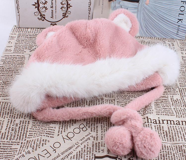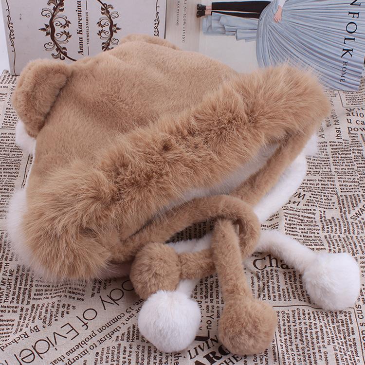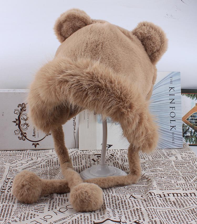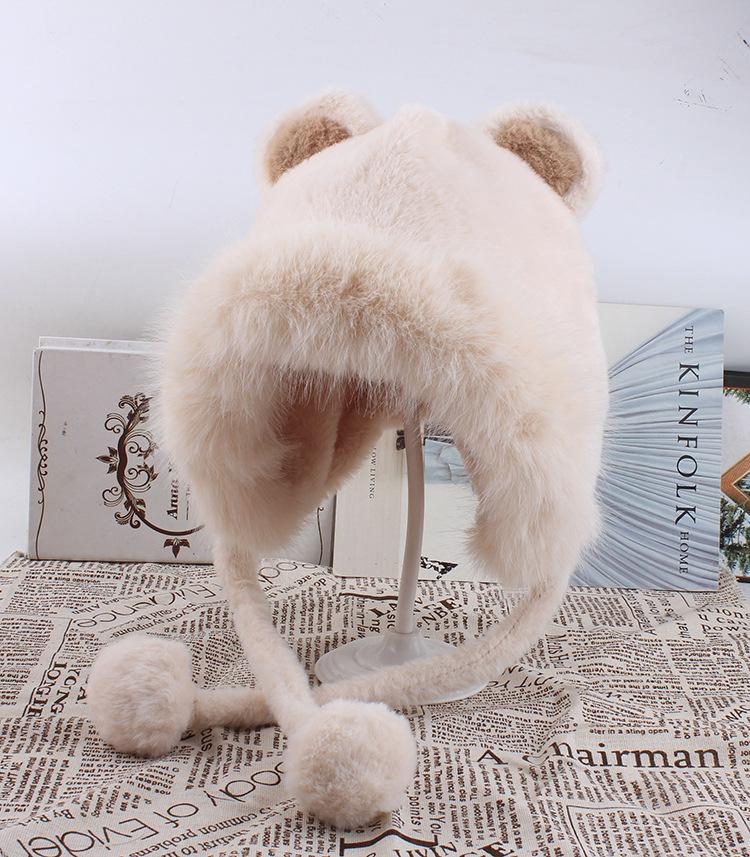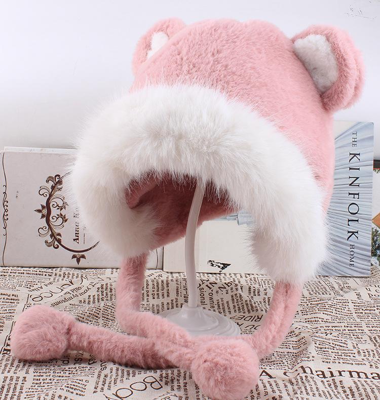 Nuevo gorro Lei Feng con protección para los oídos para otoño e invierno, cálido y bonito gorro con orejas de oso, ideal para celebridades de Internet, a prueba de frío, para montar al aire libre e invierno.