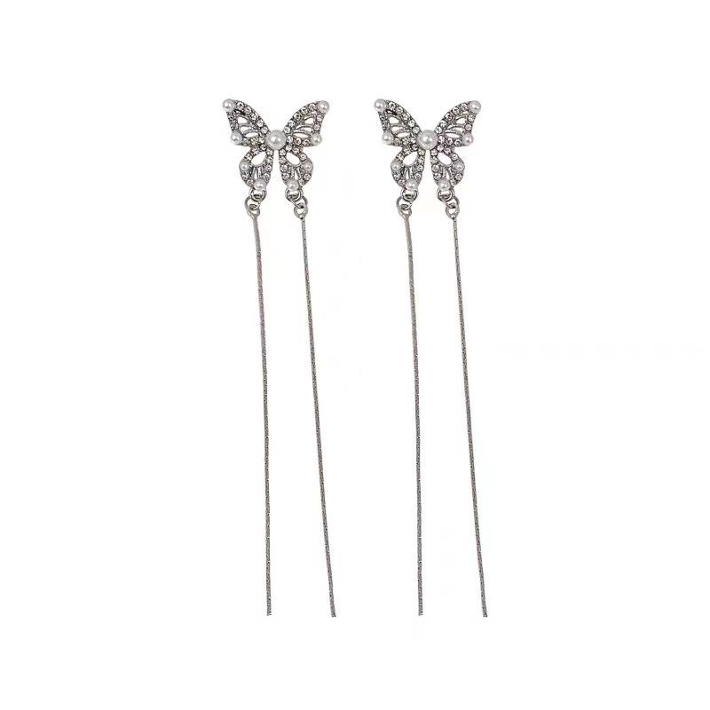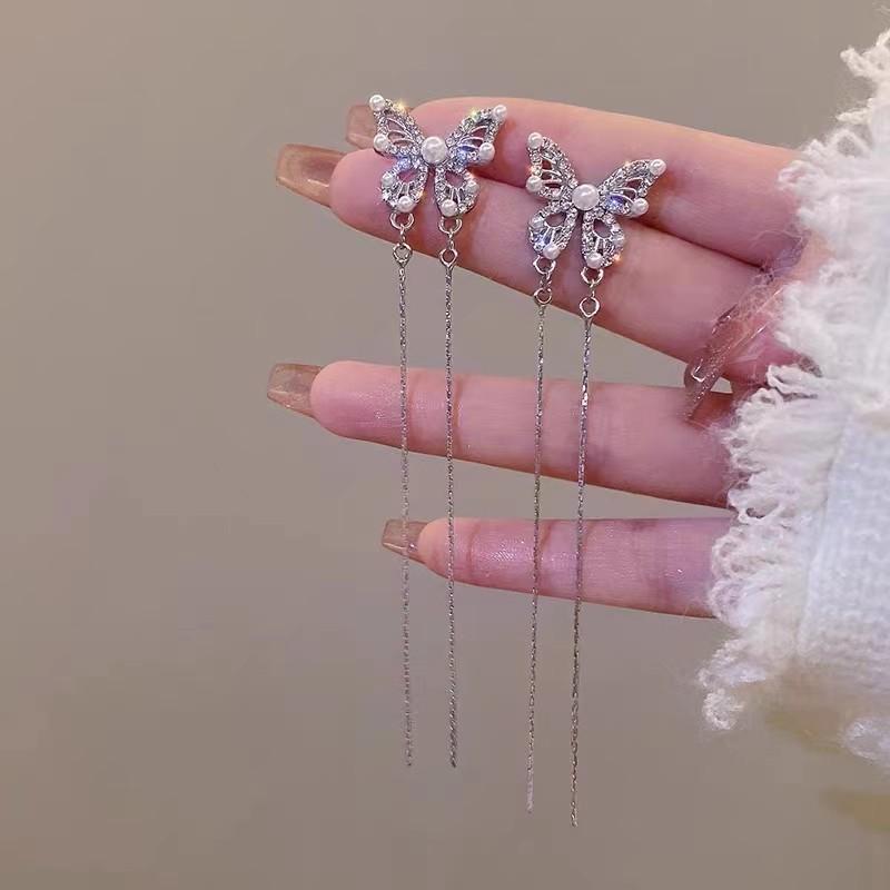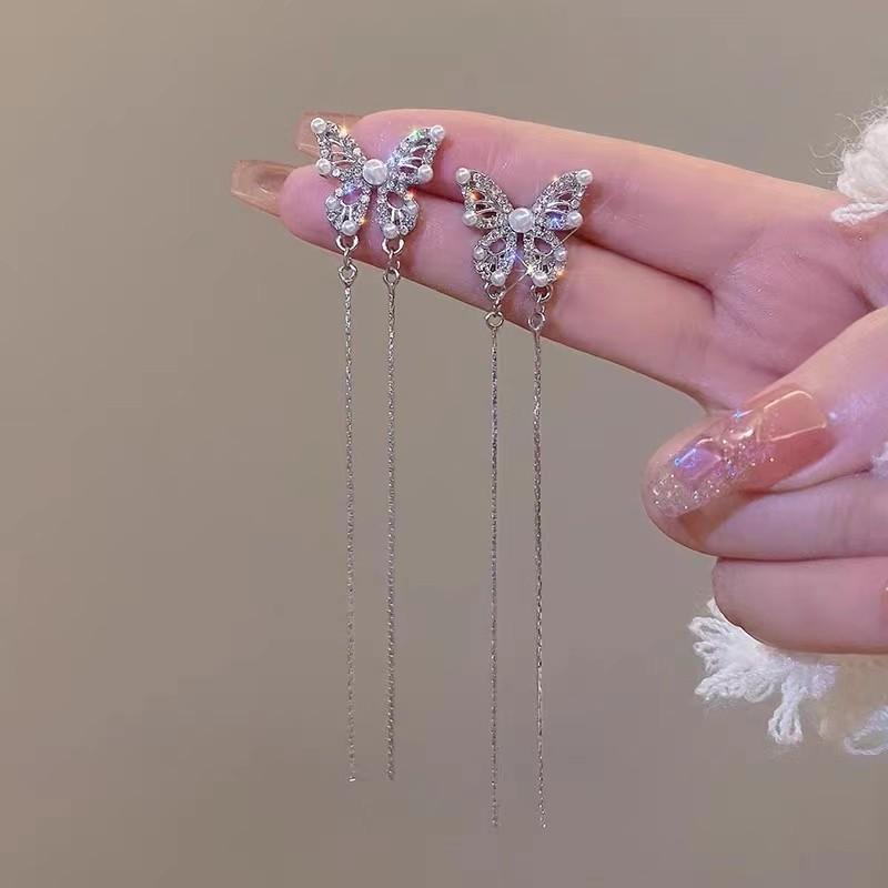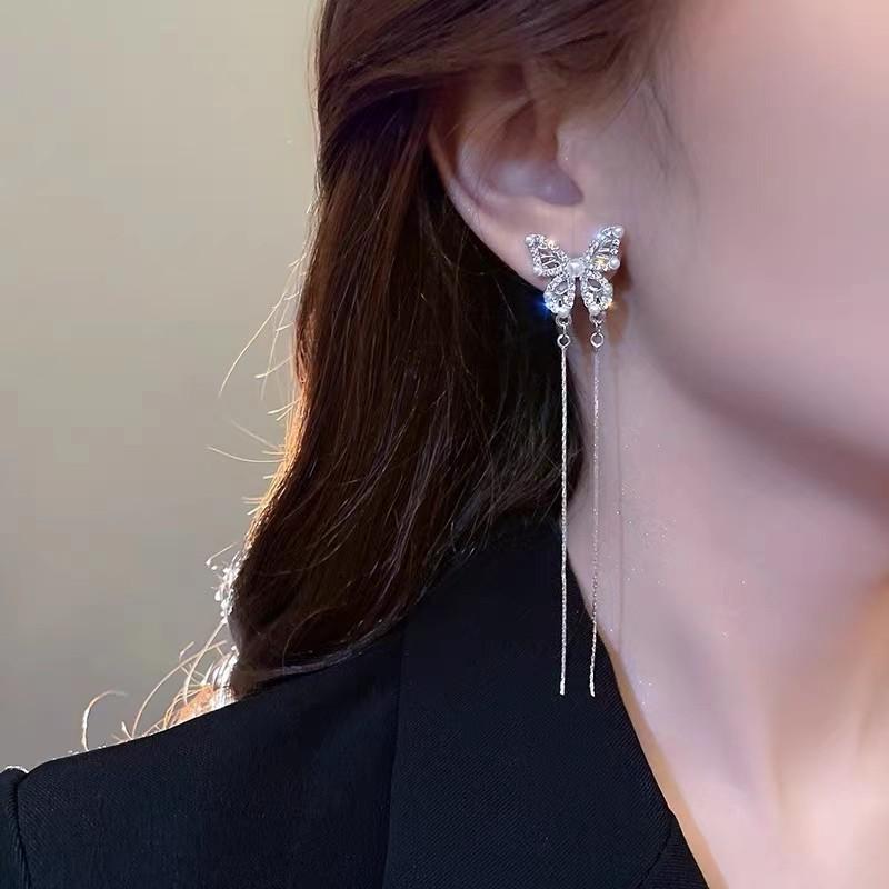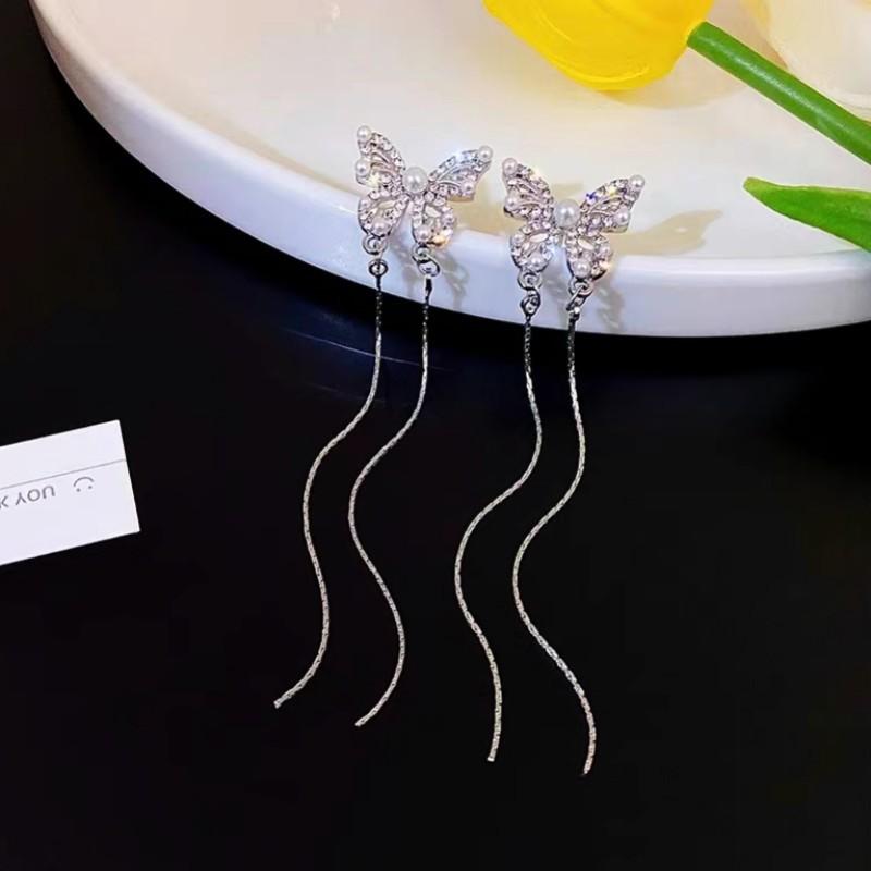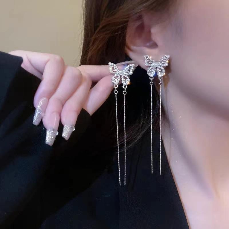 Pendientes largos con borlas de mariposa y diamantes de imitación de perlas de súper hada exquisitos, elegantes y de temperamento suave. Nuevos.