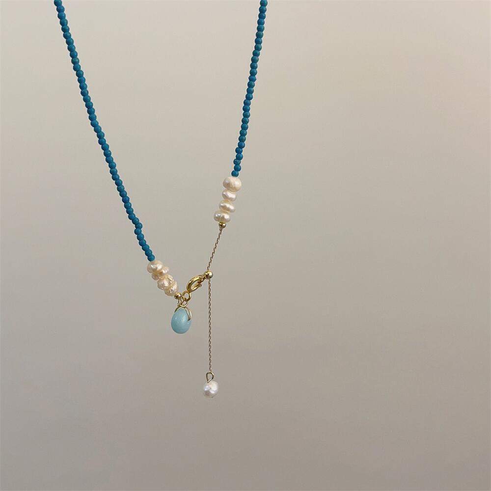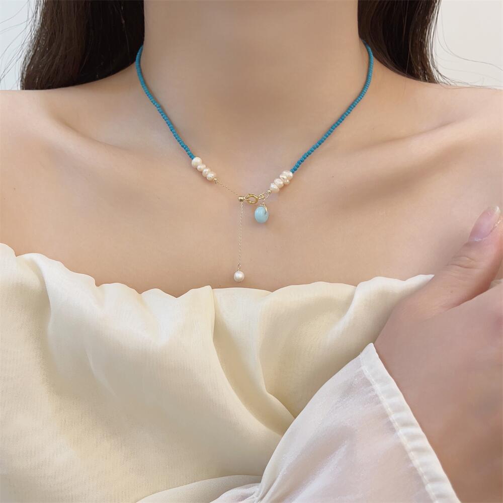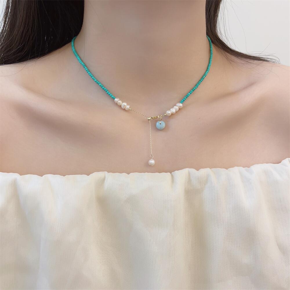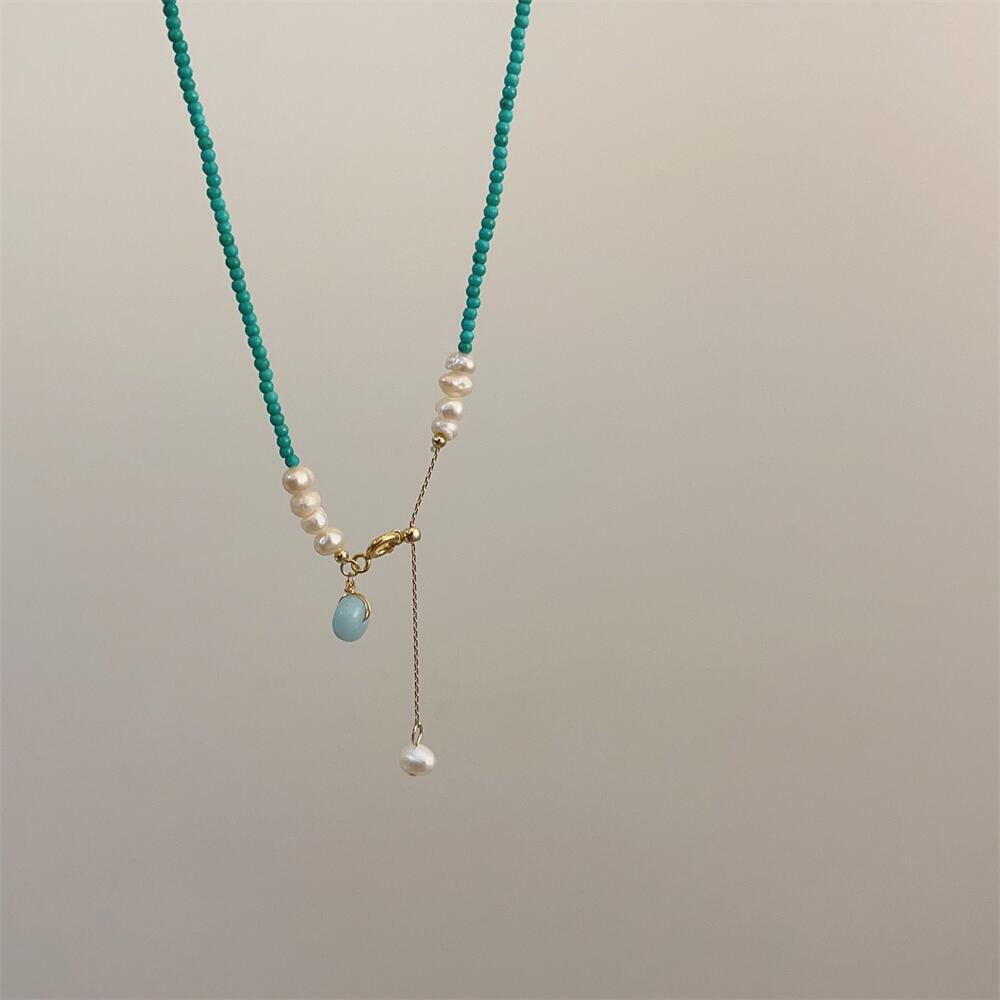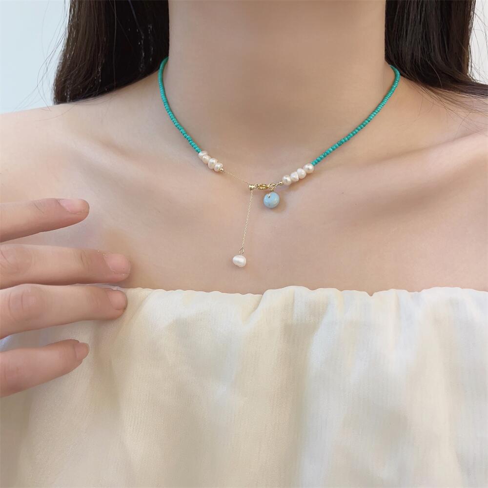 Sentido del Diseño Nicho Collar de Turquesa Natural de Alta Gama para Mujer Lujo Ligero Primavera y Verano Francés Retro Nicho Collar de Perlas