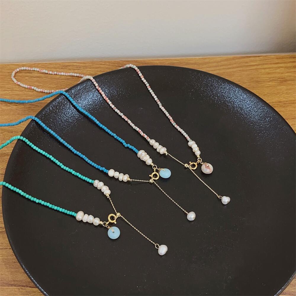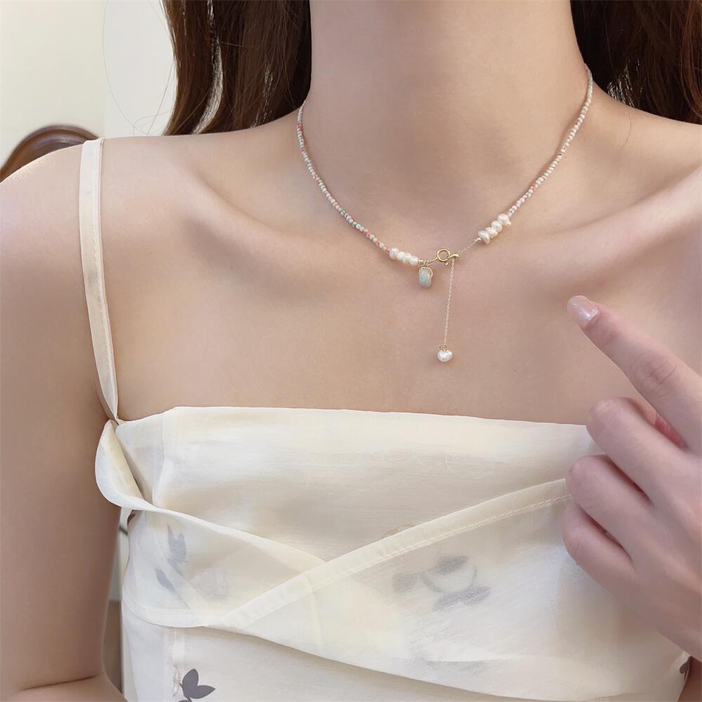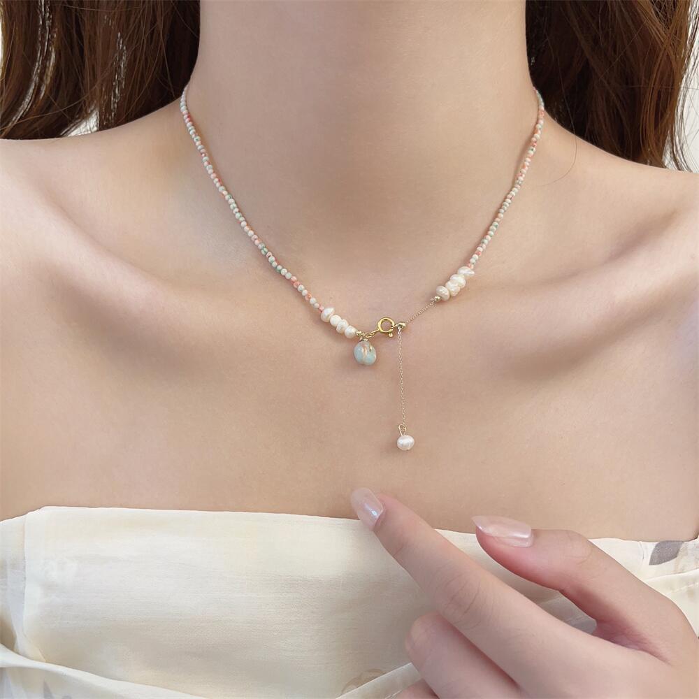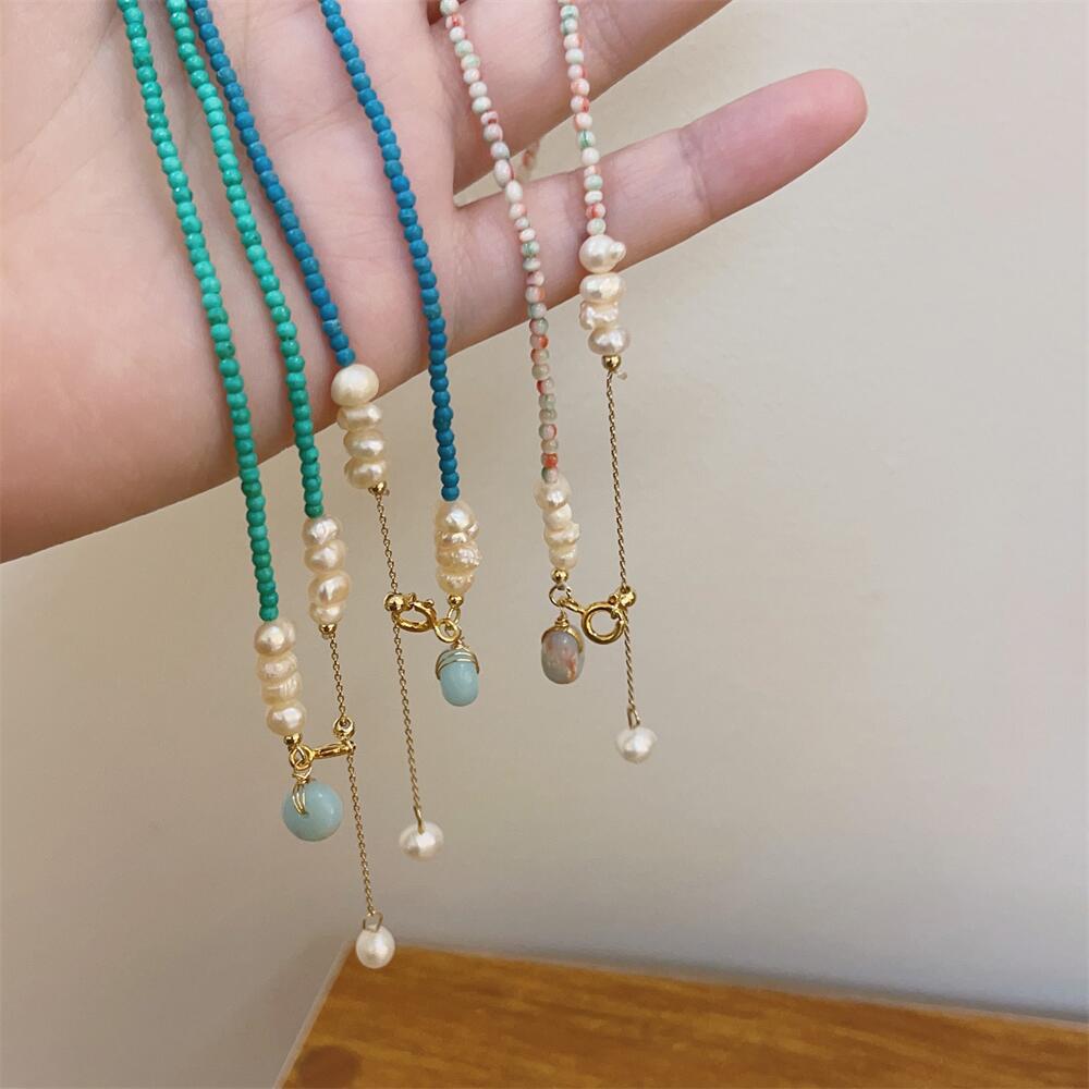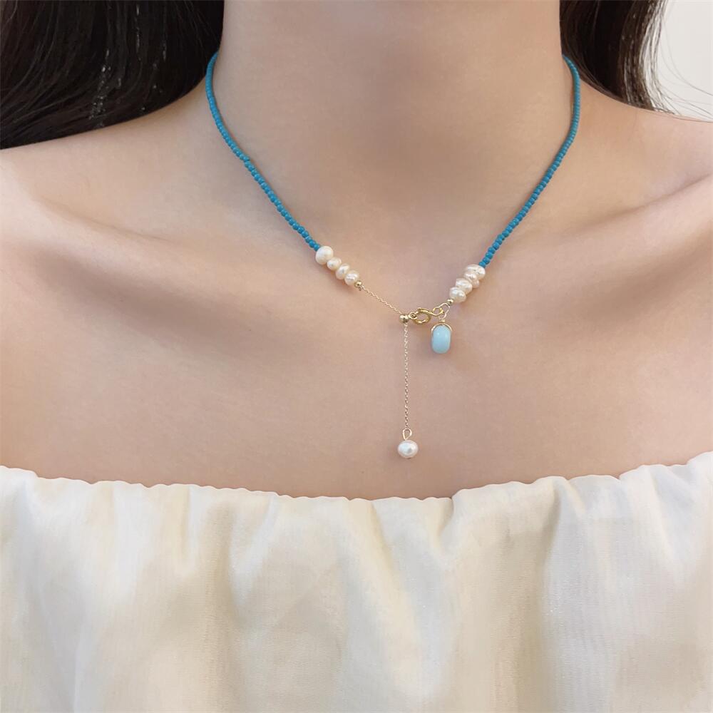 Sentido del Diseño Nicho Collar de Turquesa Natural de Alta Gama para Mujer Lujo Ligero Primavera y Verano Francés Retro Nicho Collar de Perlas
