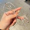 Gafas de miopía transparentes de polígono para mujer, estilo coreano, modernas, con montura de gafas con aumento disponible, lisas, lisas, lisas.