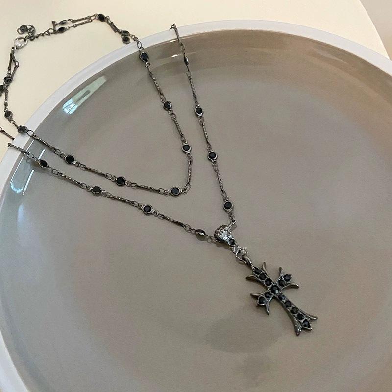 Collar largo con cruz de estilo europeo y americano para mujer, de verano, ligero, lujoso, de alta gama, con cadena de clavícula plateada, accesorios elegantes.