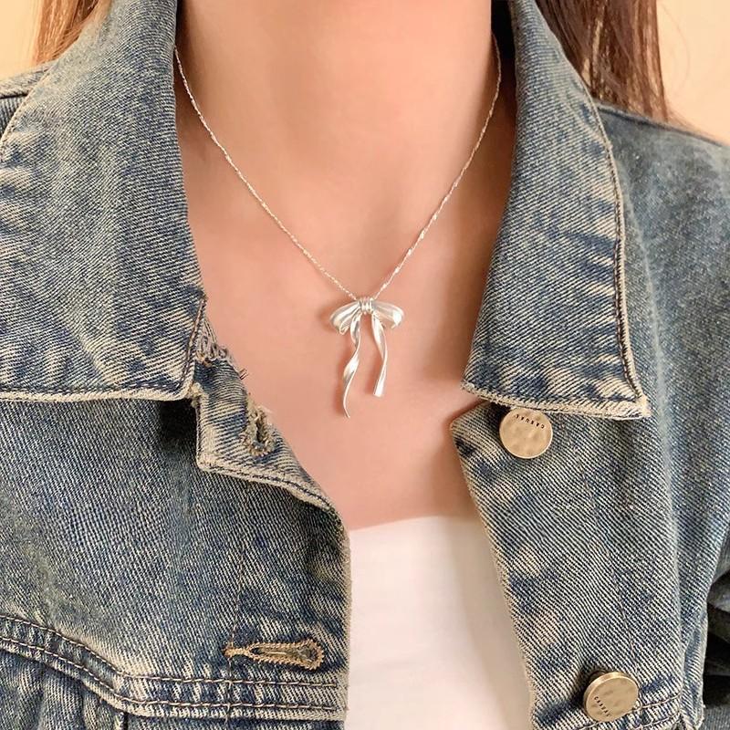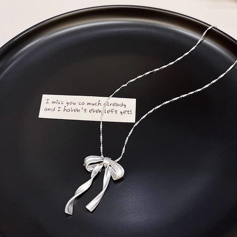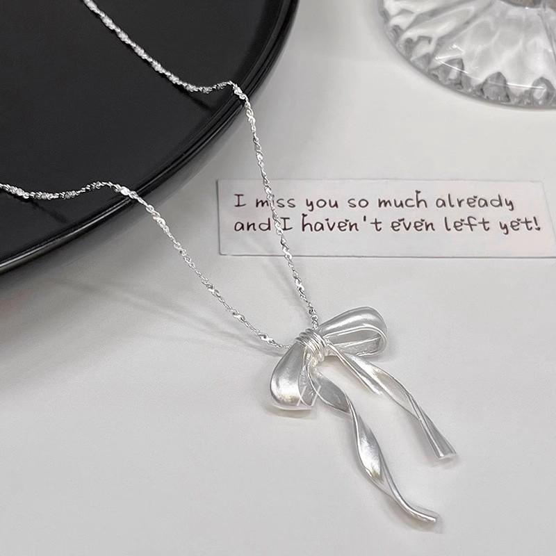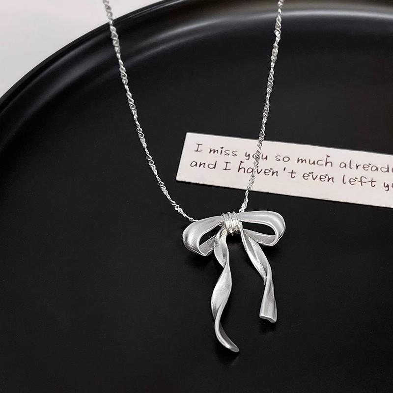 Frosted three-dimensional ribbon bow necklace (matte matte)