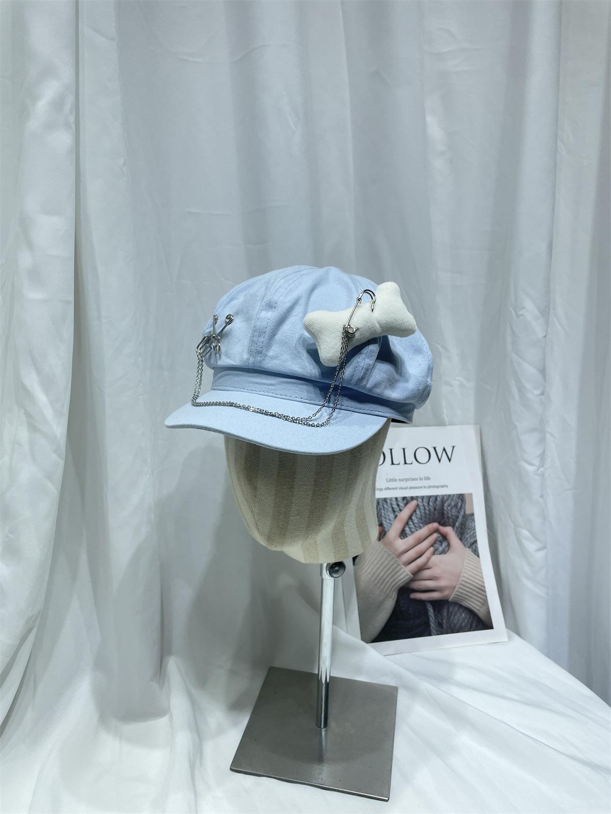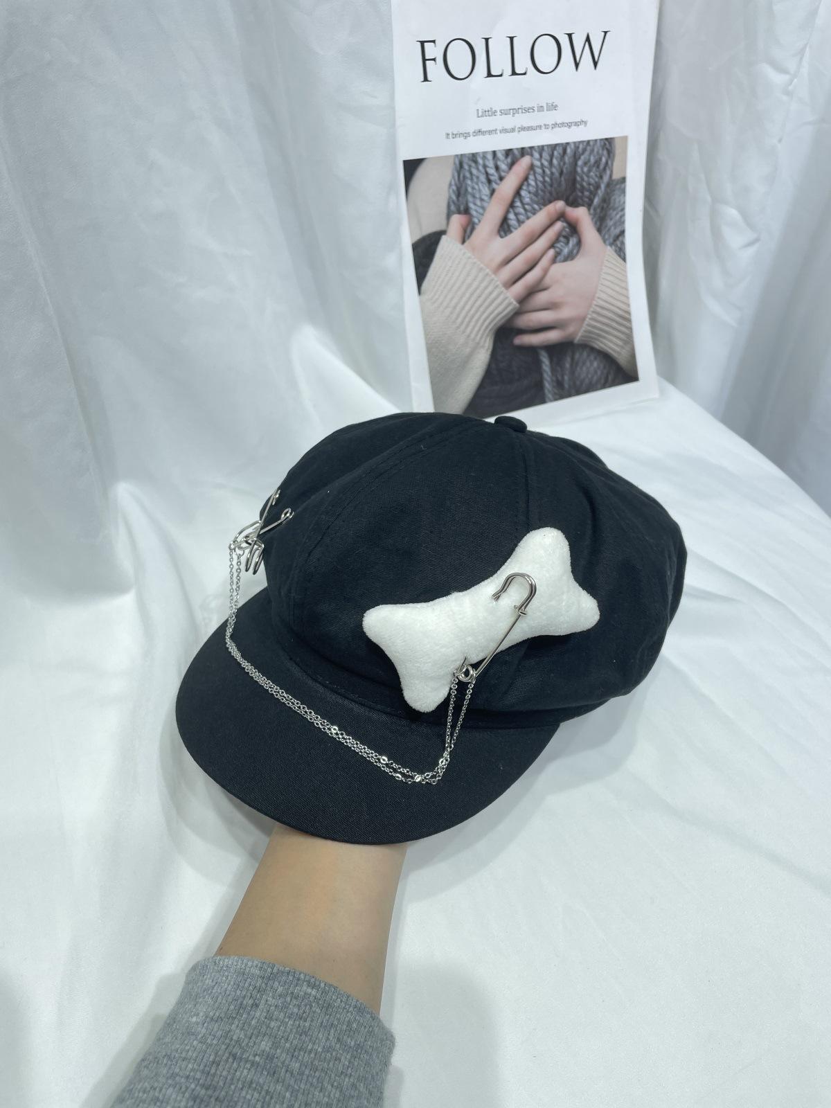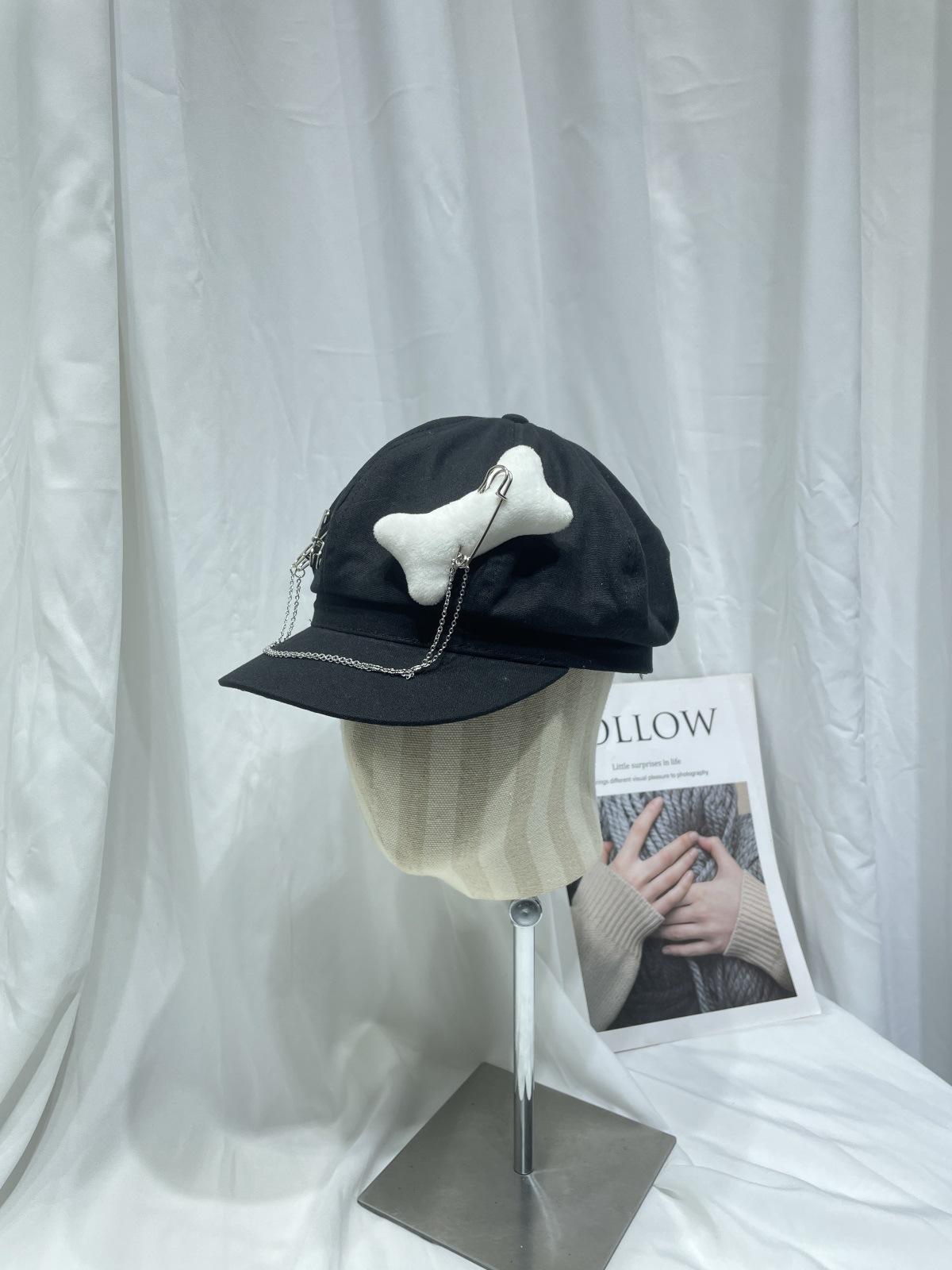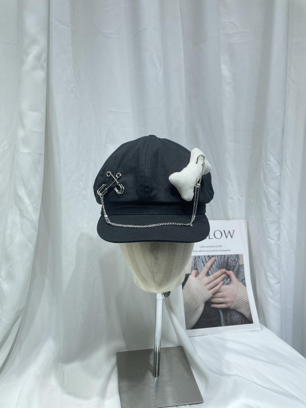 Sombrero Bailey estilo punk con broche de cadena de hueso estilo Yabi de Niche Design Y2K, sombrero octogonal distintivo para vendedor de periódicos de primavera y verano.