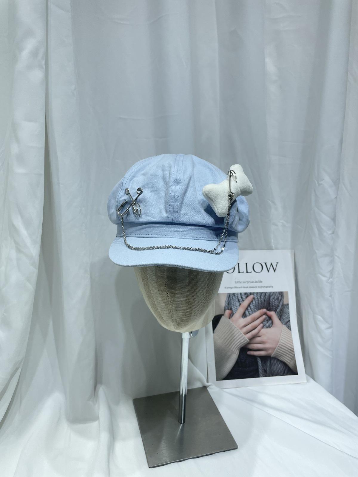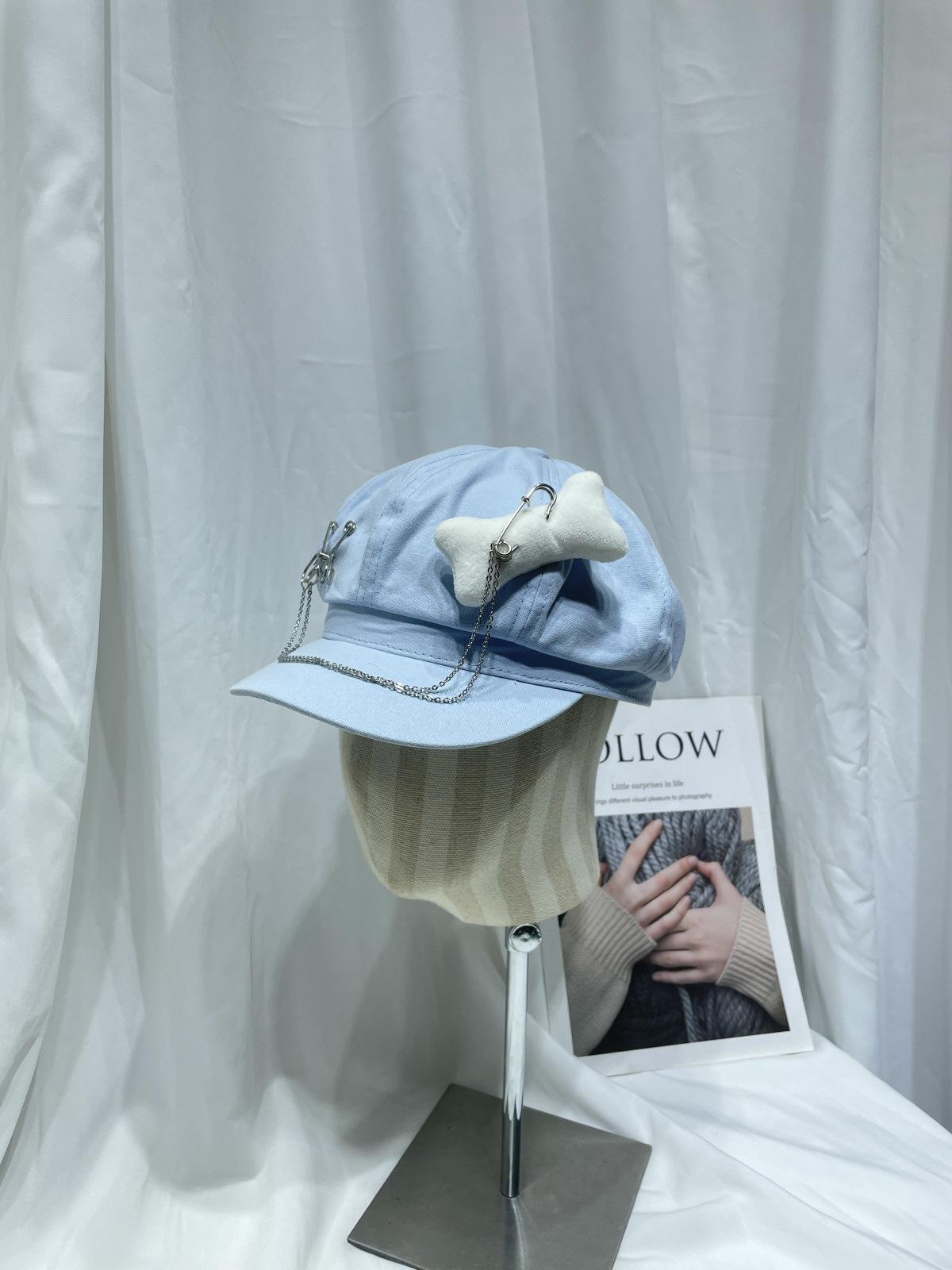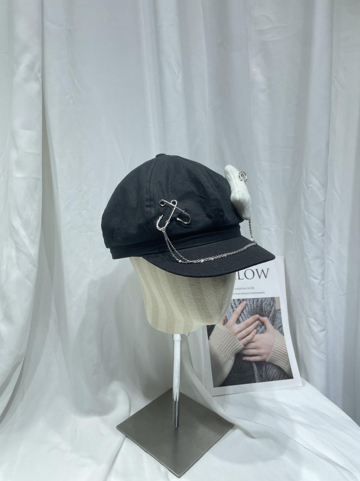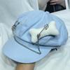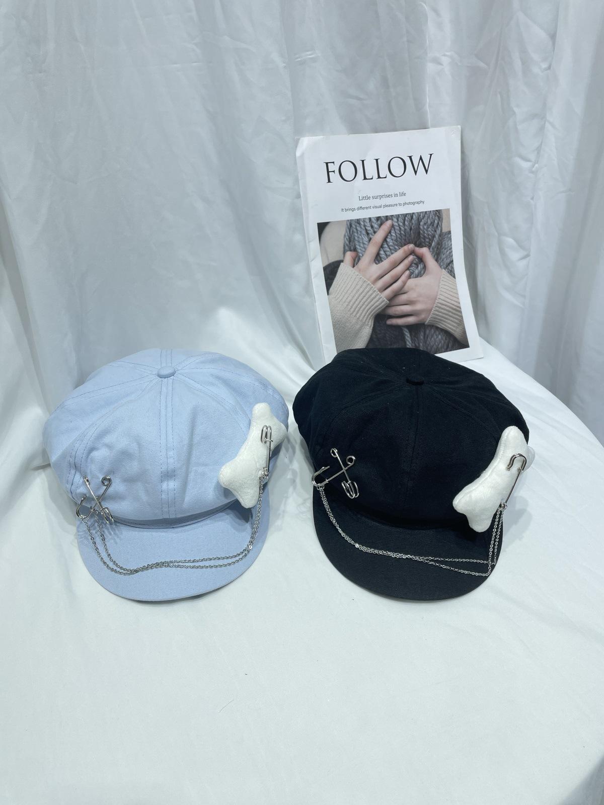 Sombrero Bailey estilo punk con broche de cadena de hueso estilo Yabi de Niche Design Y2K, sombrero octogonal distintivo para vendedor de periódicos de primavera y verano.