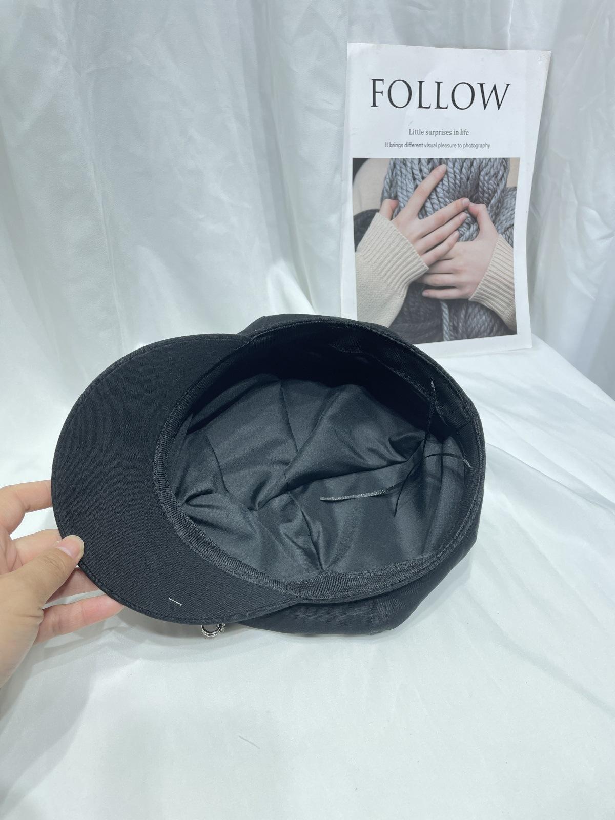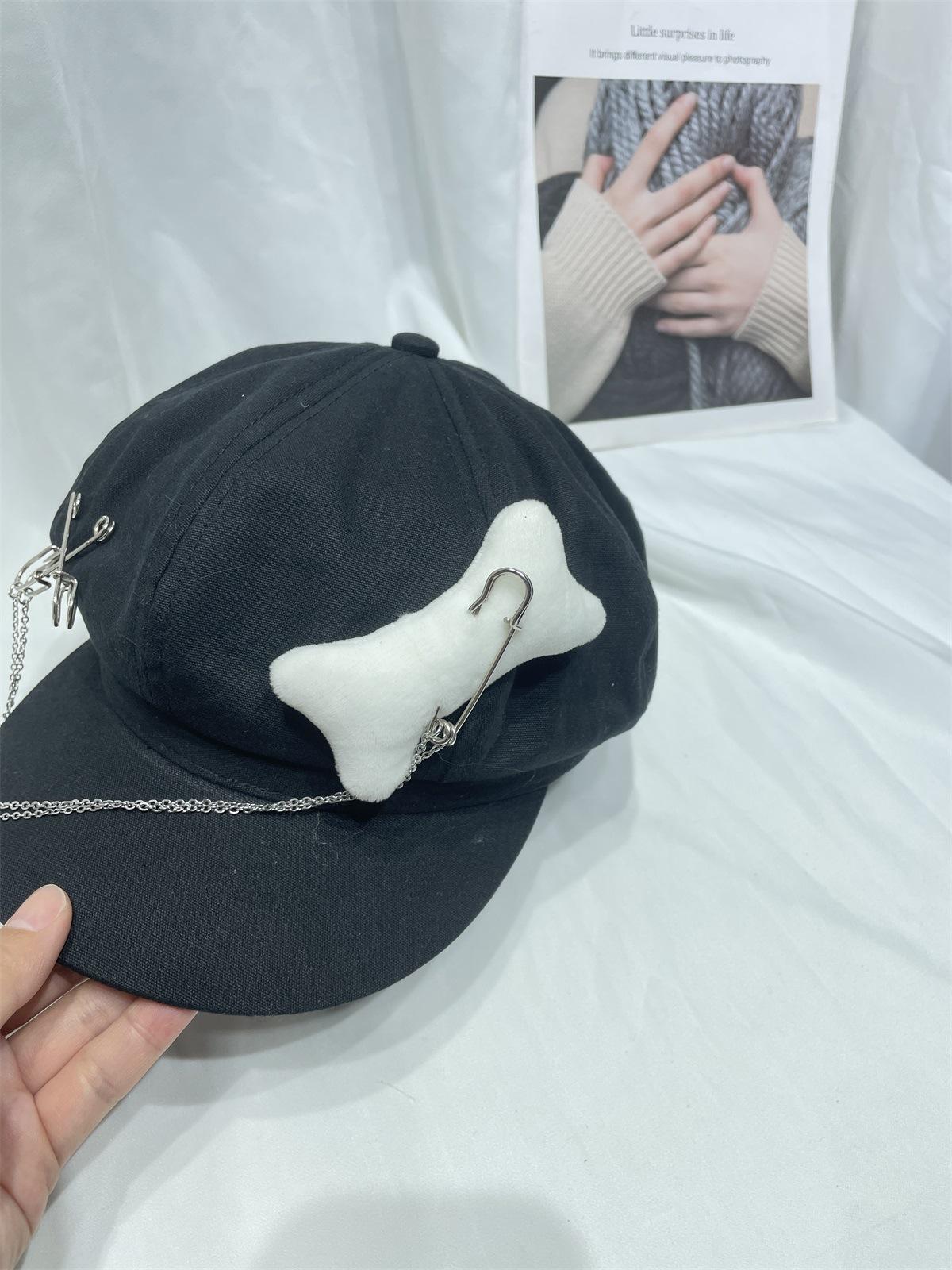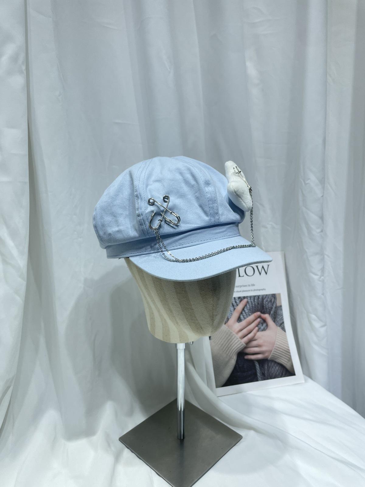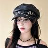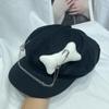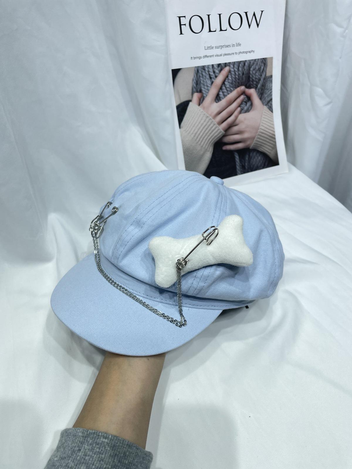 Sombrero Bailey estilo punk con broche de cadena de hueso estilo Yabi de Niche Design Y2K, sombrero octogonal distintivo para vendedor de periódicos de primavera y verano.