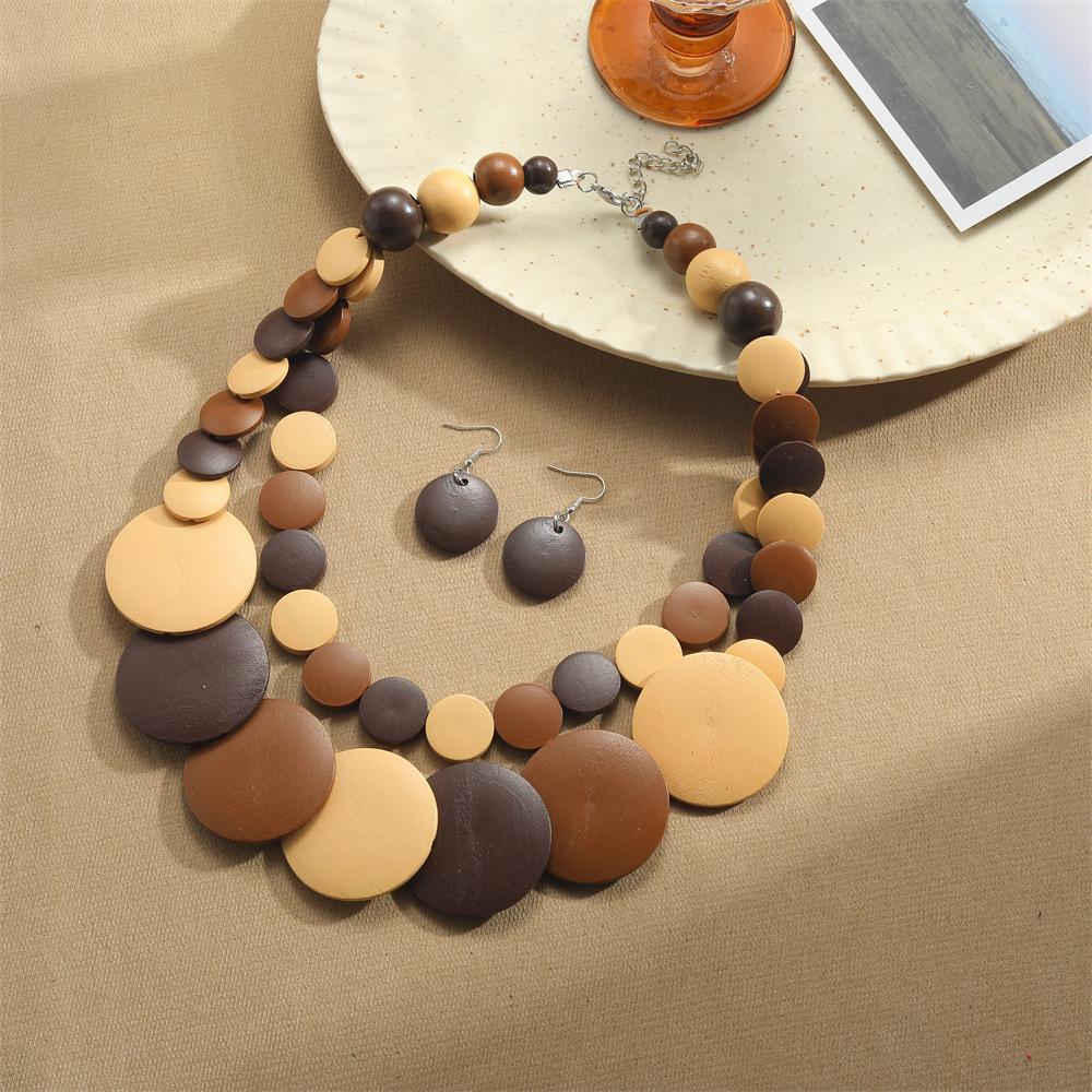 [Nombre del producto] Cadena de clavícula con colgante de disco de personalidad exagerada retro de gran venta, juego de collar y aretes versátil creativo para Halloween