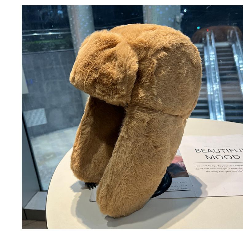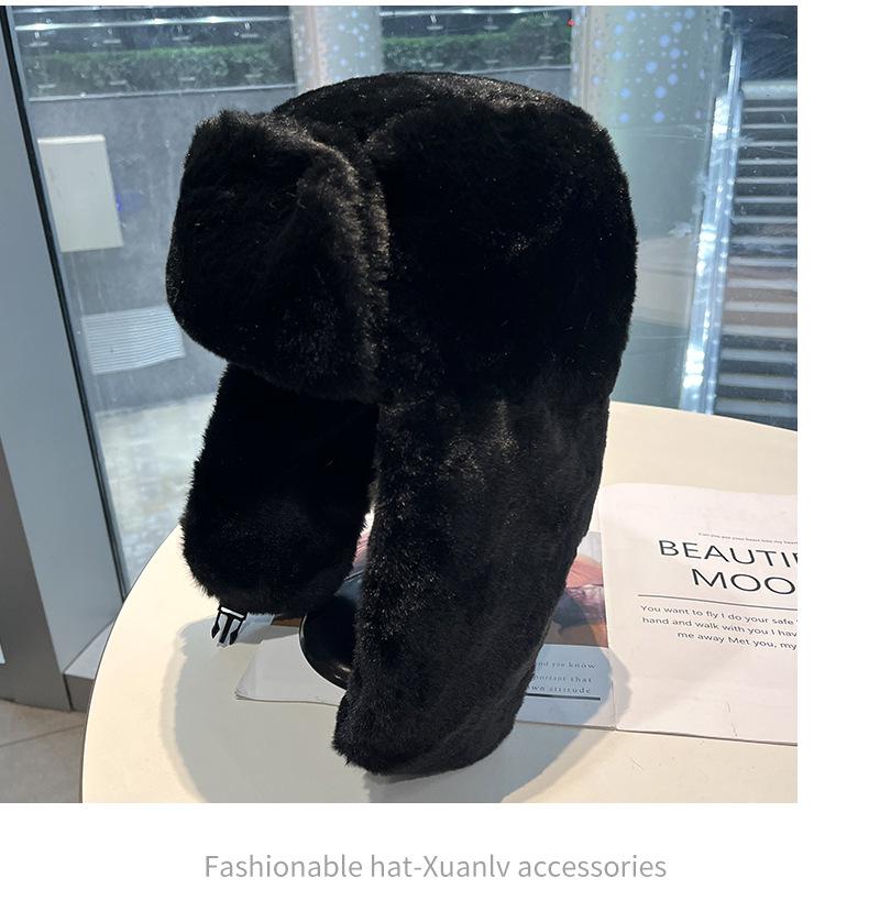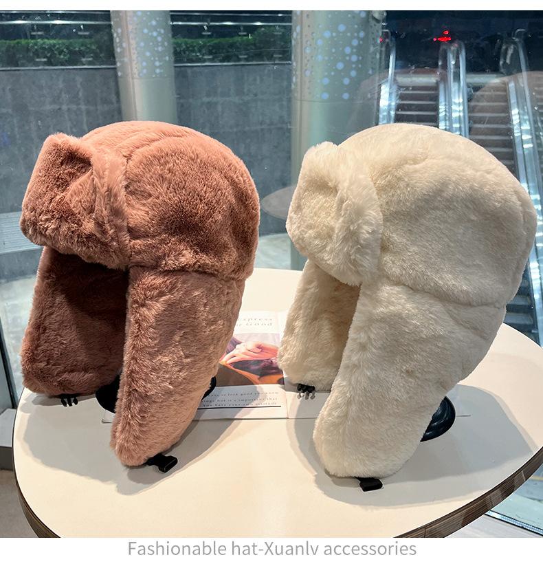 Monochrome plush Lei Feng hat-Black, Monochrome plush Lei Feng hat-beige, Monochrome plush Lei Feng hat-leathe...