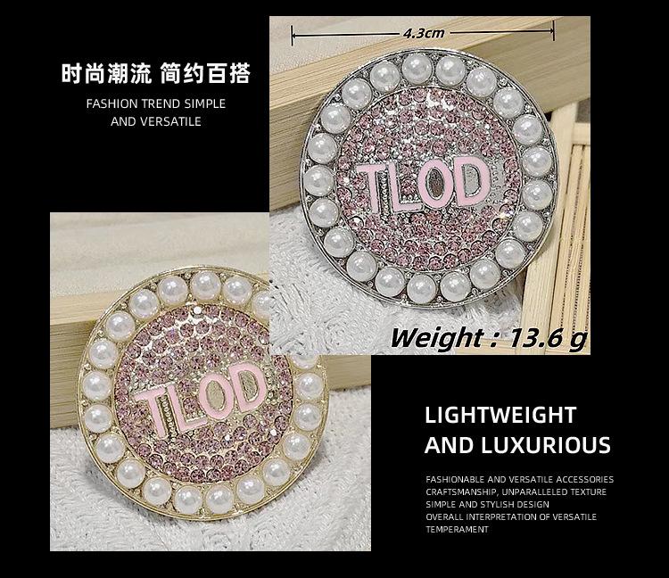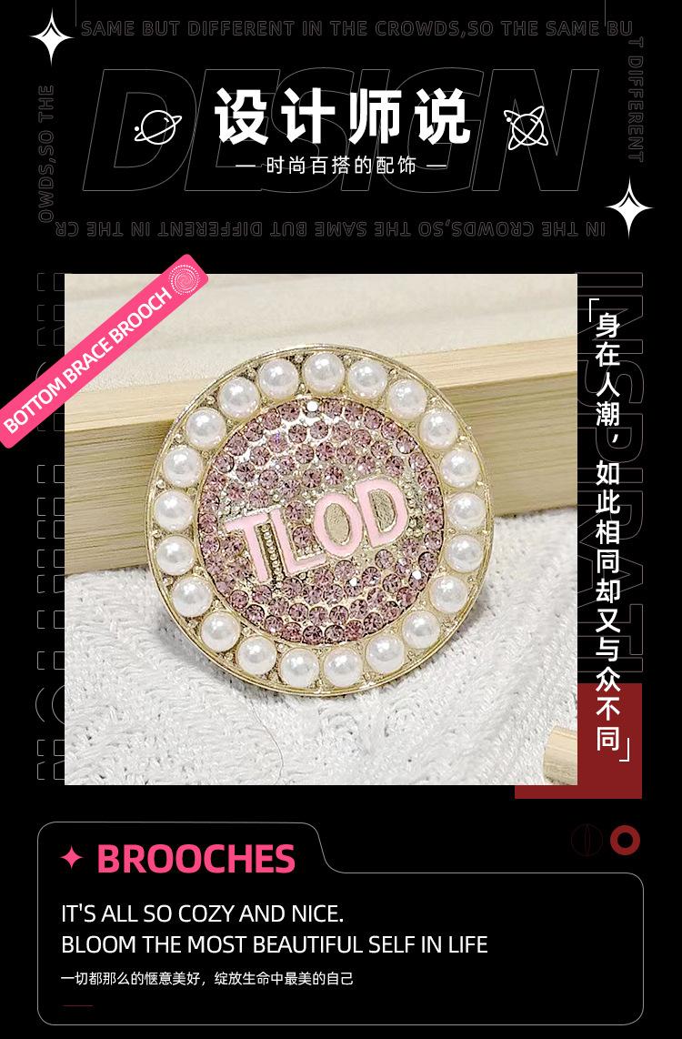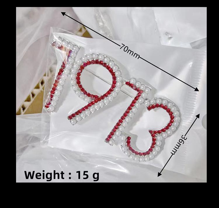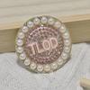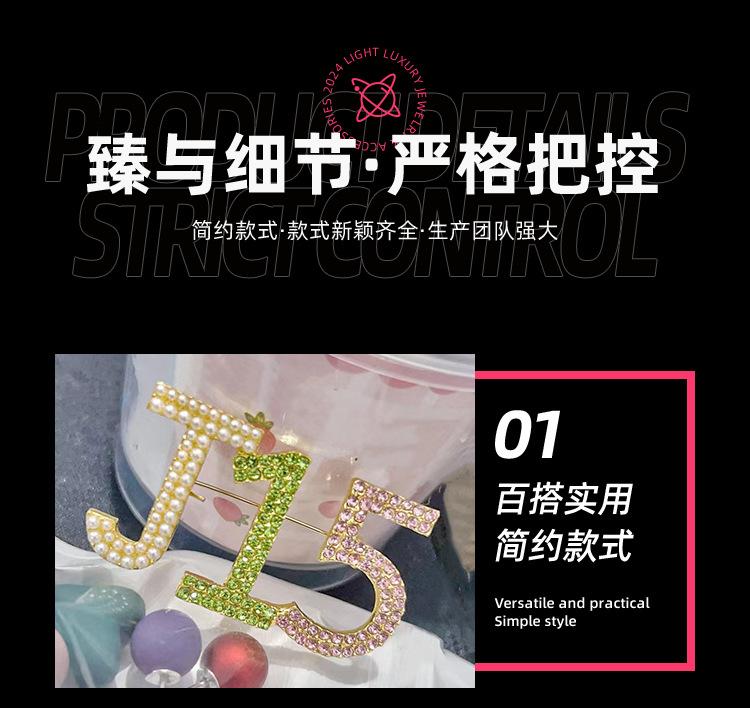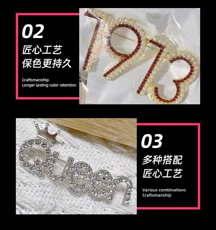 Broche elegante de aleación de diamantes, elegante broche de ramillete, accesorios de joyería, broche de hebilla, broche de perla coreana con letras inglesas.