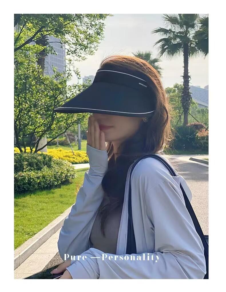 Sombrero para el sol para niños, de verano, plegable, anti-UV, con grandes esquinas, parte superior vacía, para ciclismo, de goma negra, protector solar.