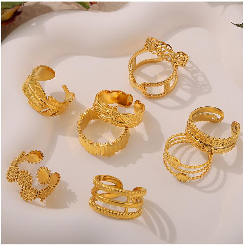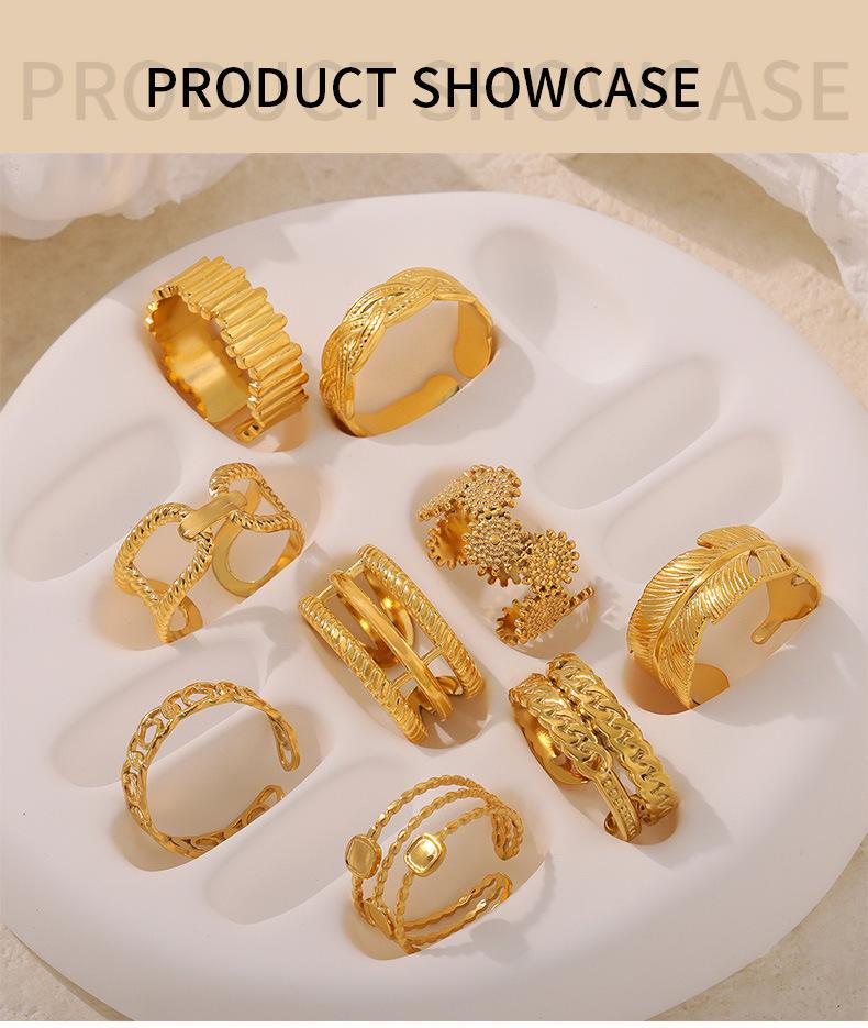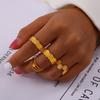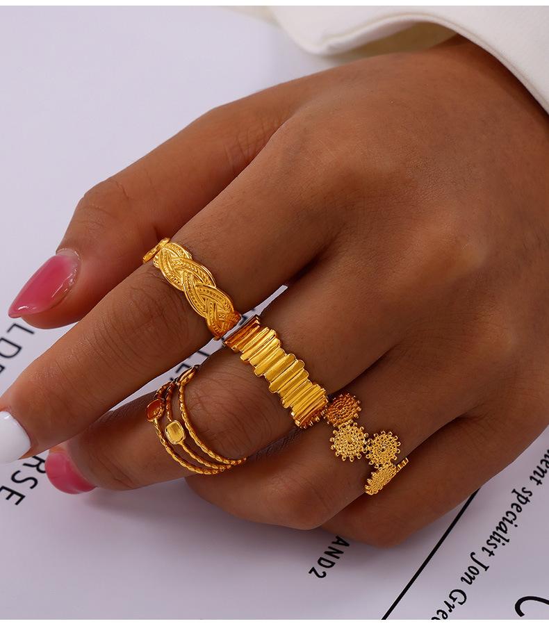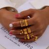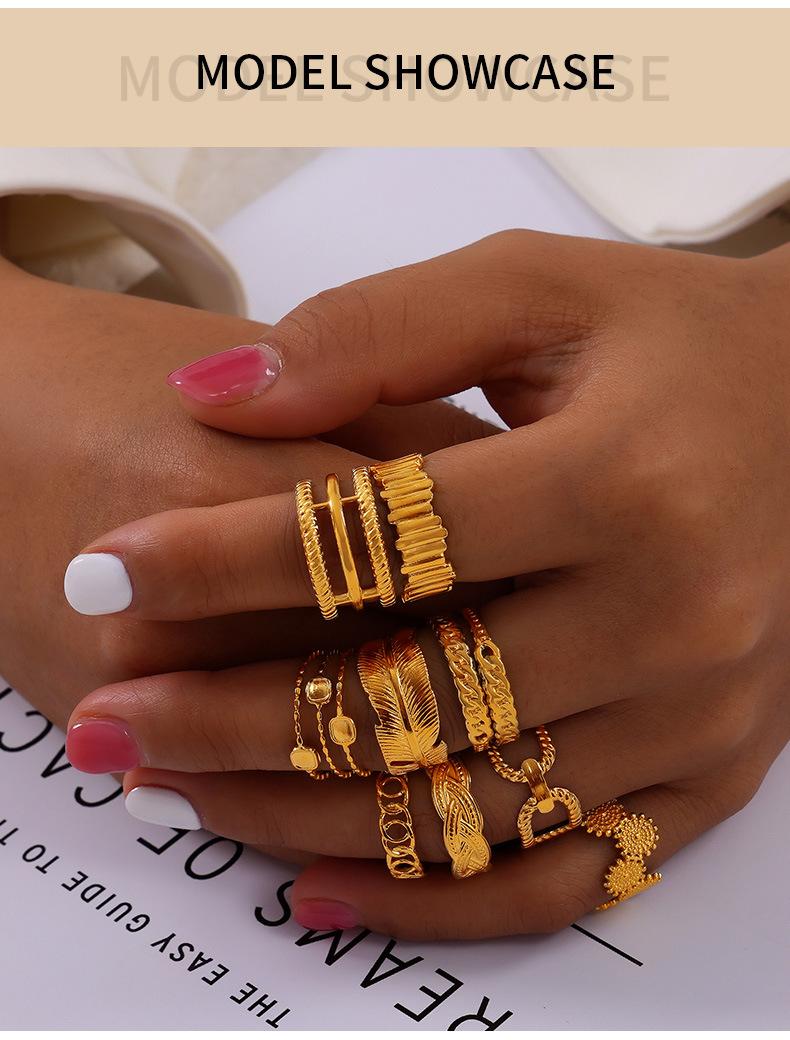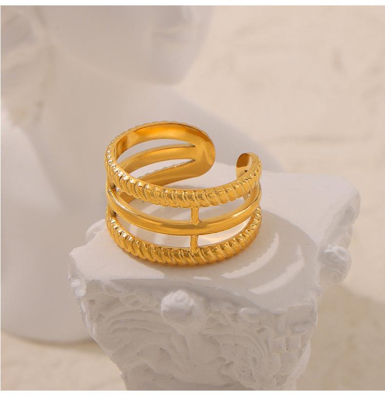 Joyería de Diseño Simple Personalizado Estilo Ins Anillo de Empalme de Textura Geométrica Acero de Titanio Estilo Apilado Multicapa Anillo para el Dedo Índice
