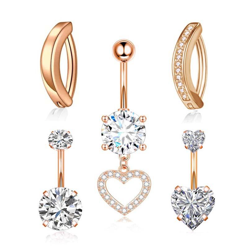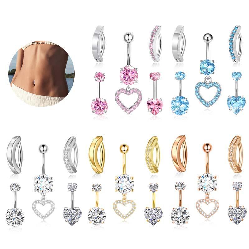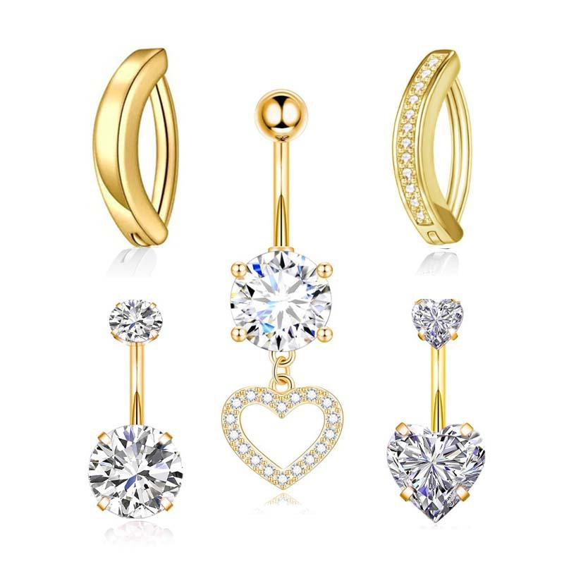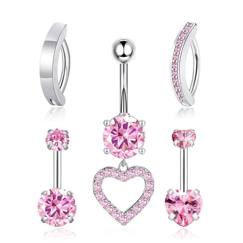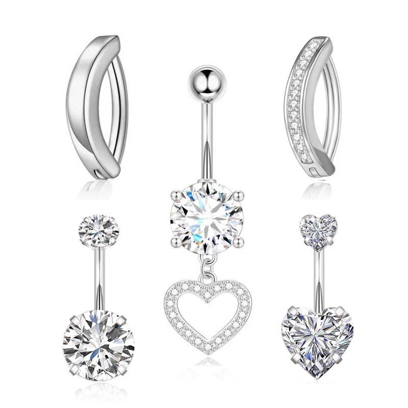 Amazon Anillos para Ombligo de Acero Inoxidable con Corazón de Zirconia Juego de 5 Piezas Perforación de Ombligo Joyería Corporal Fábrica