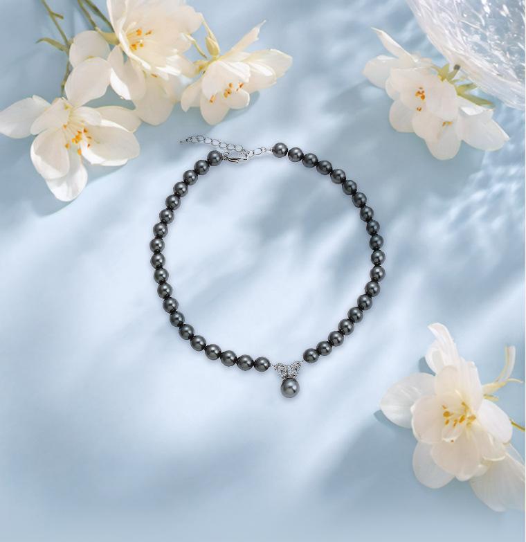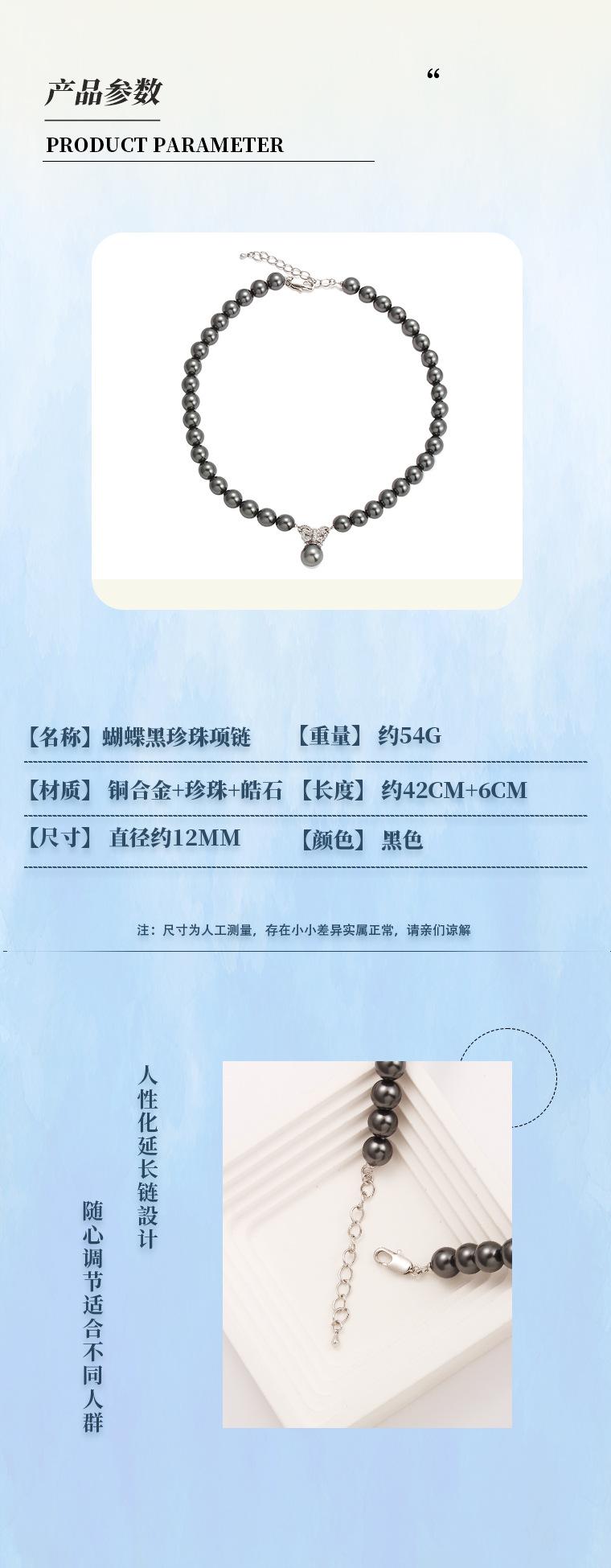 Collar de Perlas Negras del Mismo Estilo de Ni Ni, Diseño de Lujo Ligero, Sensación de Alta Gama, Elegante Colgante Versátil de Perla Tahitiana de Mariposa