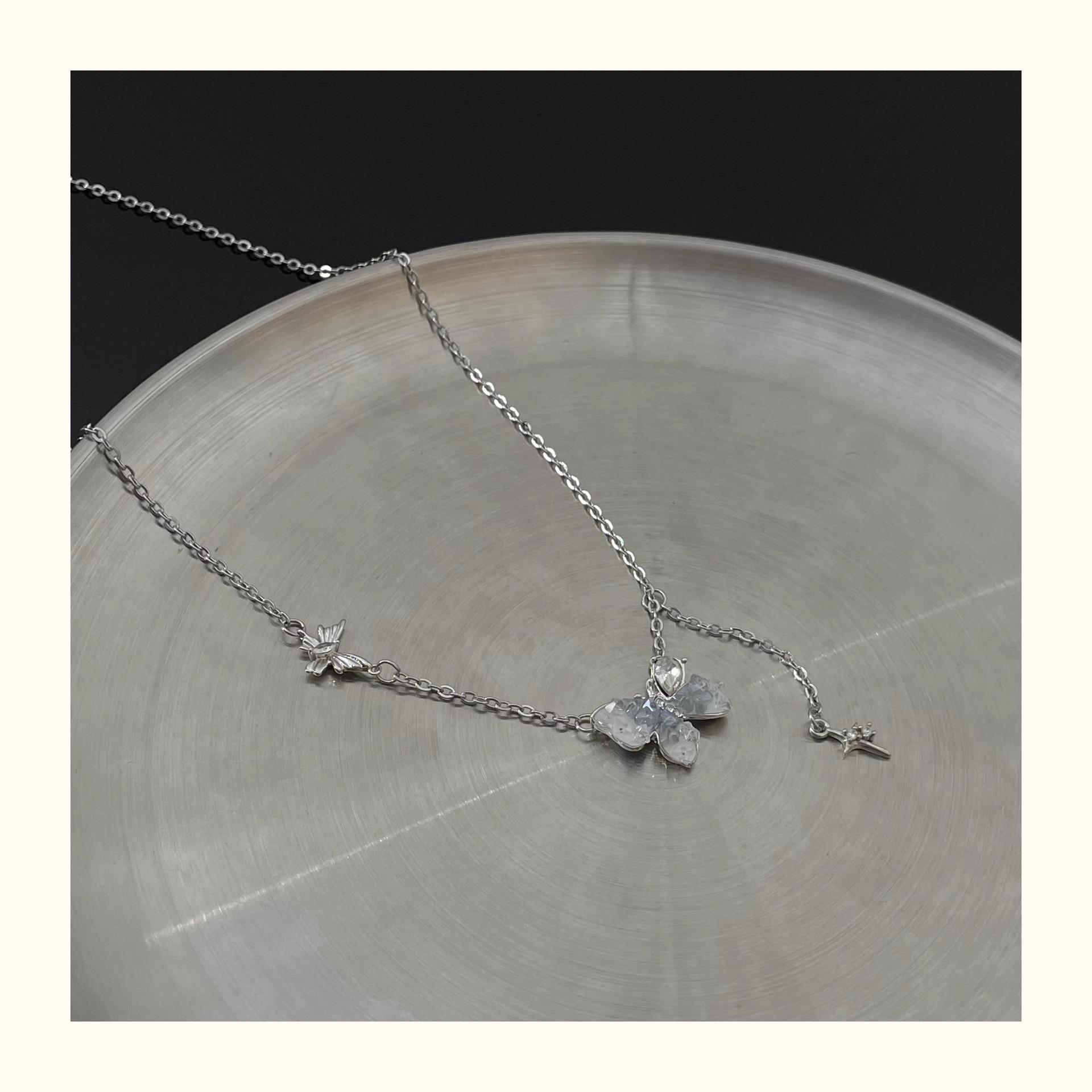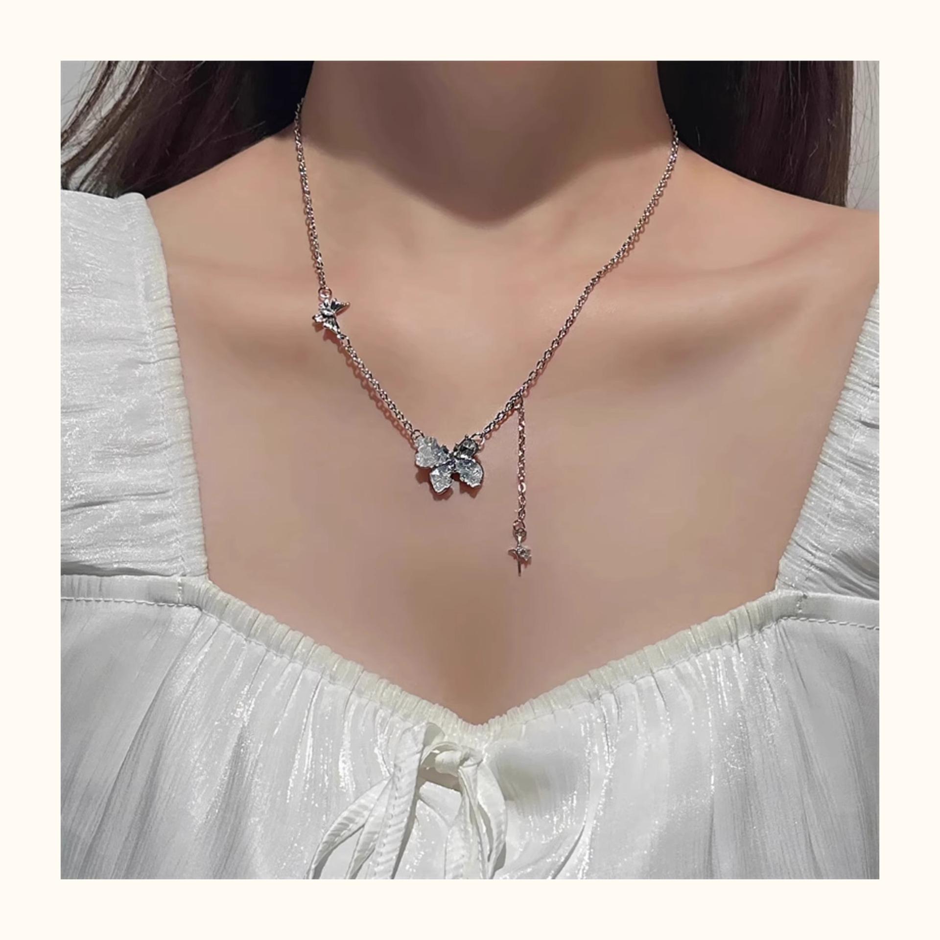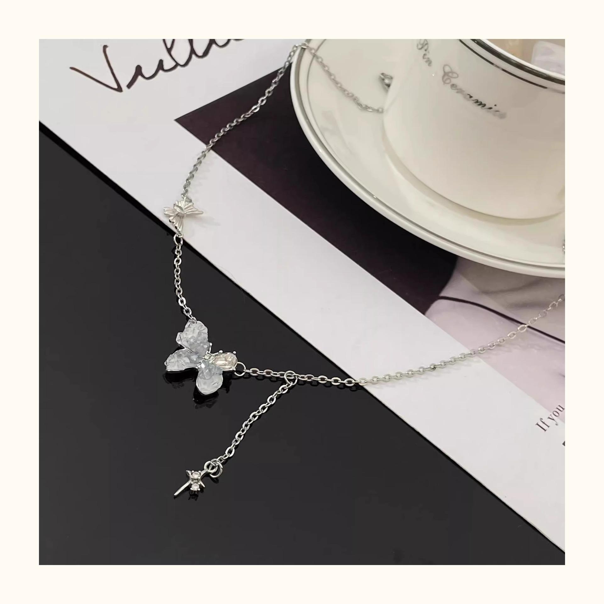 Collar de mariposa de cristal de estilo francés, fresco, de verano 2024, con diseño de nicho, cadena de clavícula sencilla, de lujo, de alta calidad y ligera para mujer.