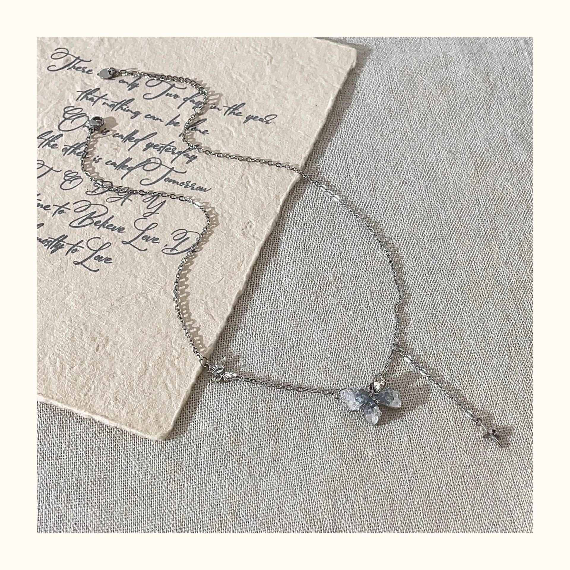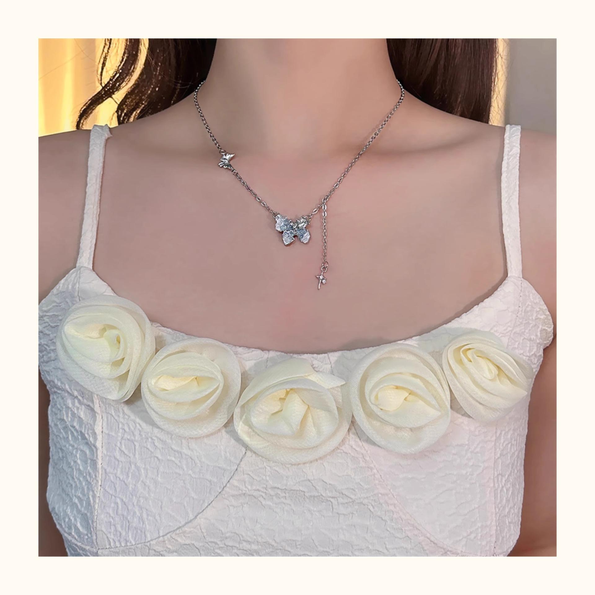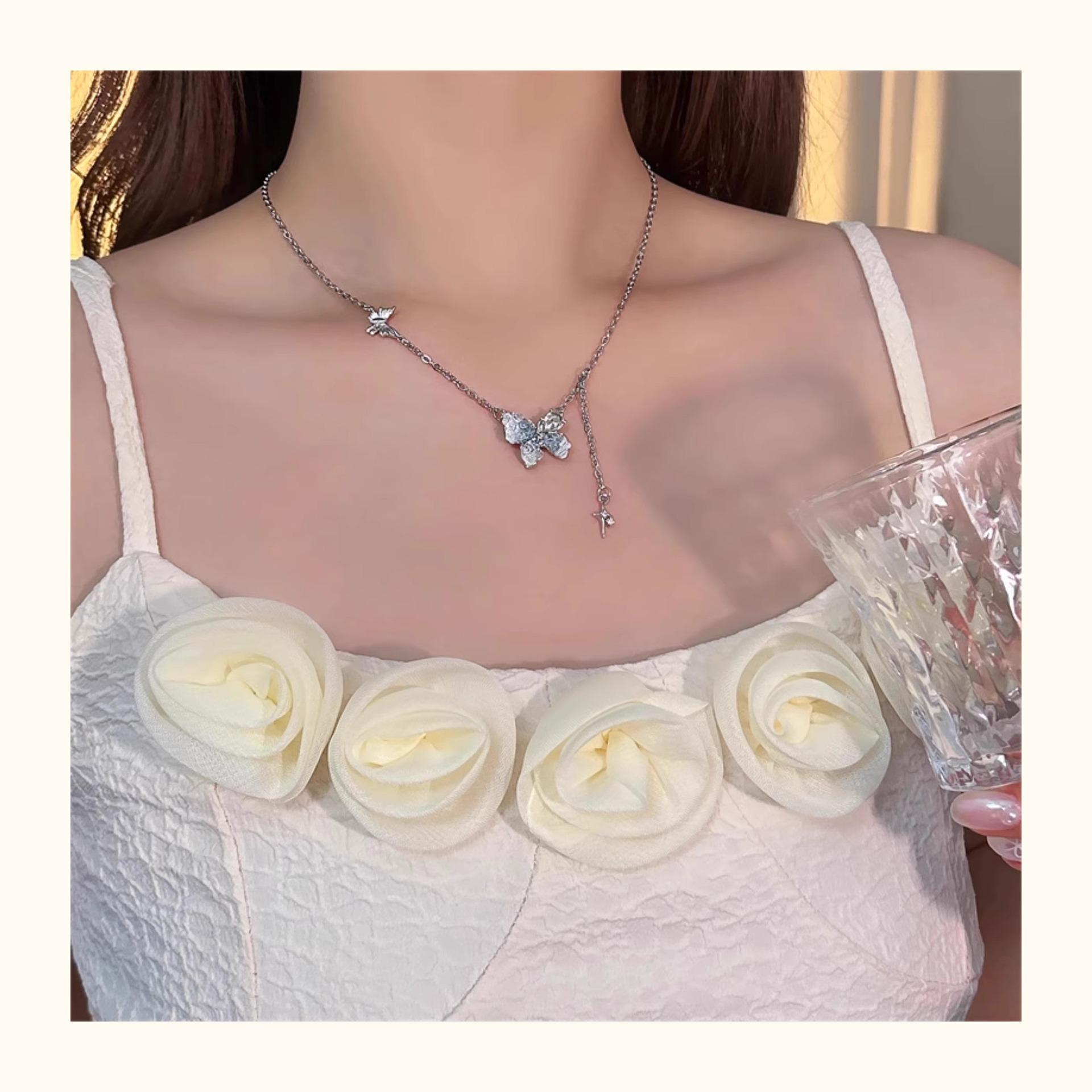 Collar de mariposa de cristal de estilo francés, fresco, de verano 2024, con diseño de nicho, cadena de clavícula sencilla, de lujo, de alta calidad y ligera para mujer.