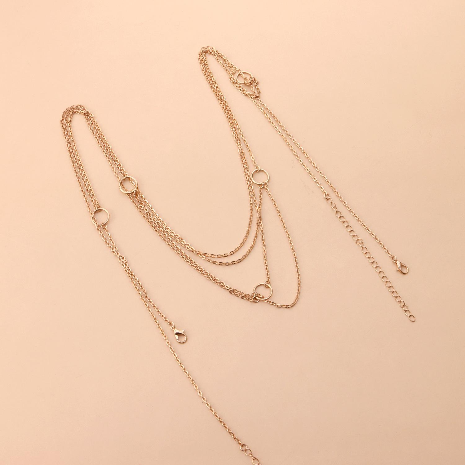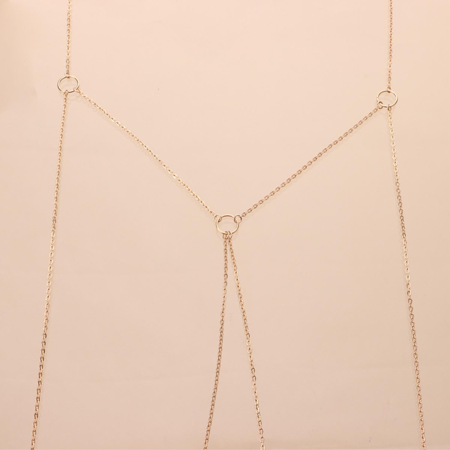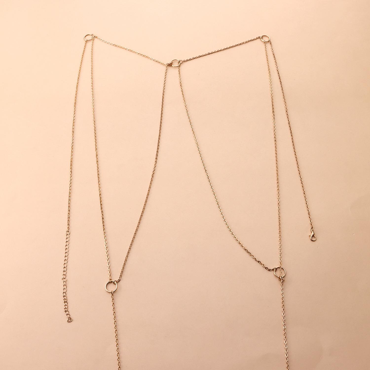 Cadena de cuerpo para sujetador de bikini sexy personalizada, joyería transfronteriza europea y americana, accesorios de cadena de pecho con cinco círculos geométricos para mujer
