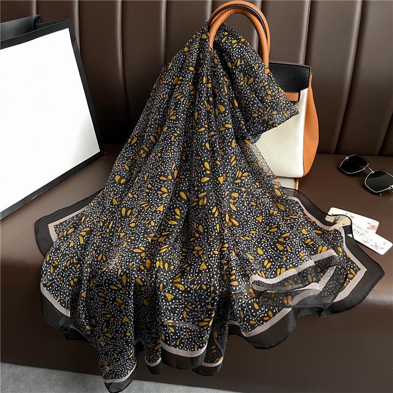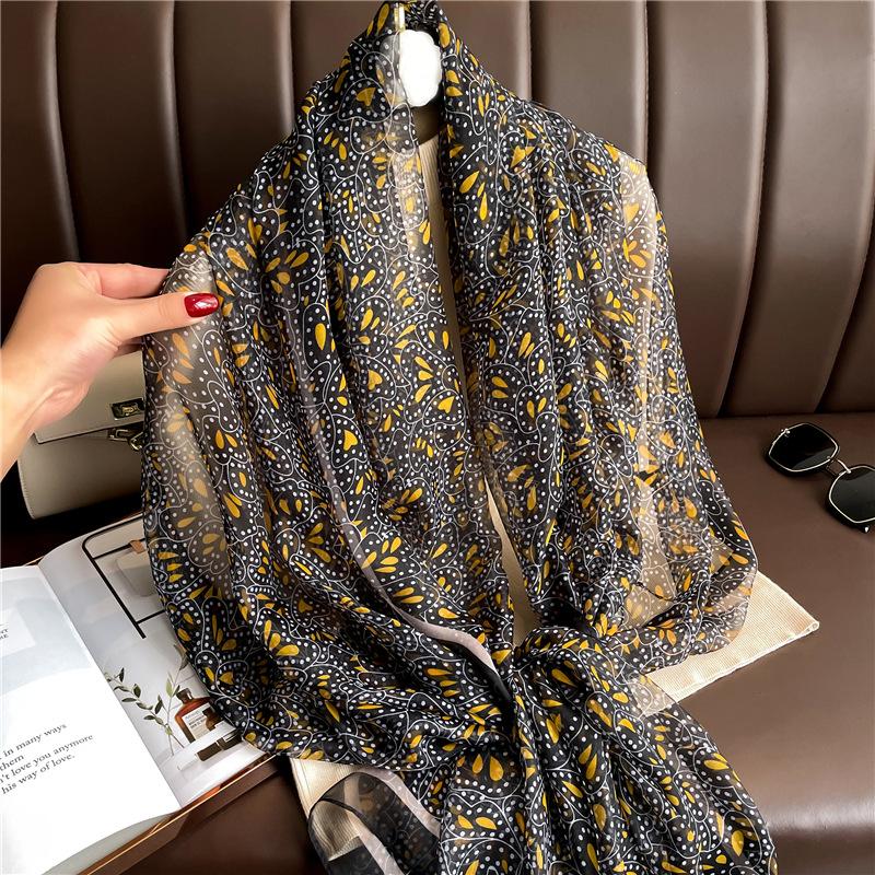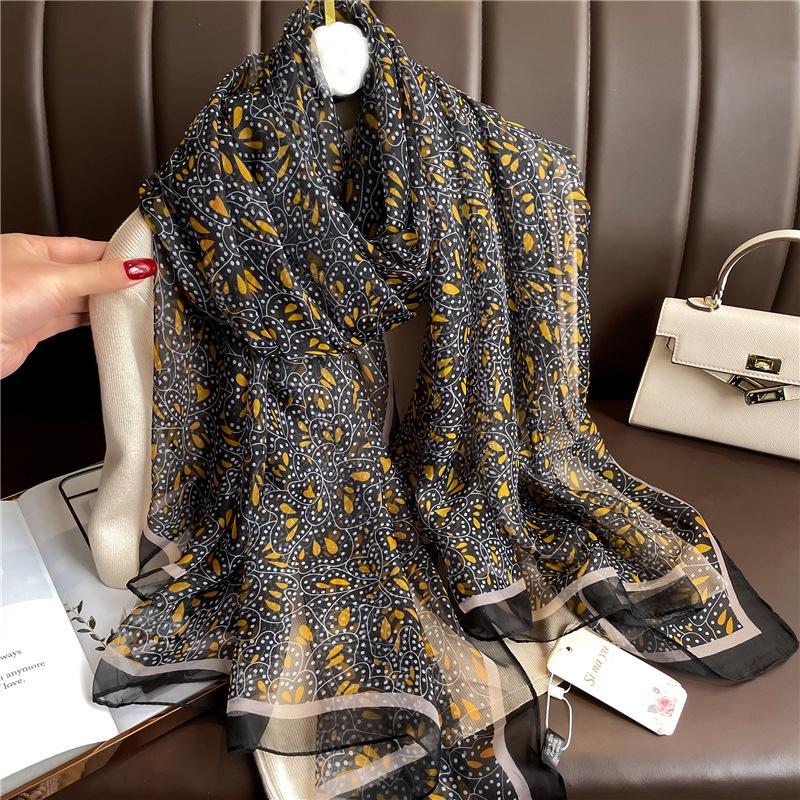 Bufanda elegante de seda con estampado de flores para mujer, de gran tamaño, con protección solar, ligera y de lujo, para uso diario, chal grande, bufanda Yourou