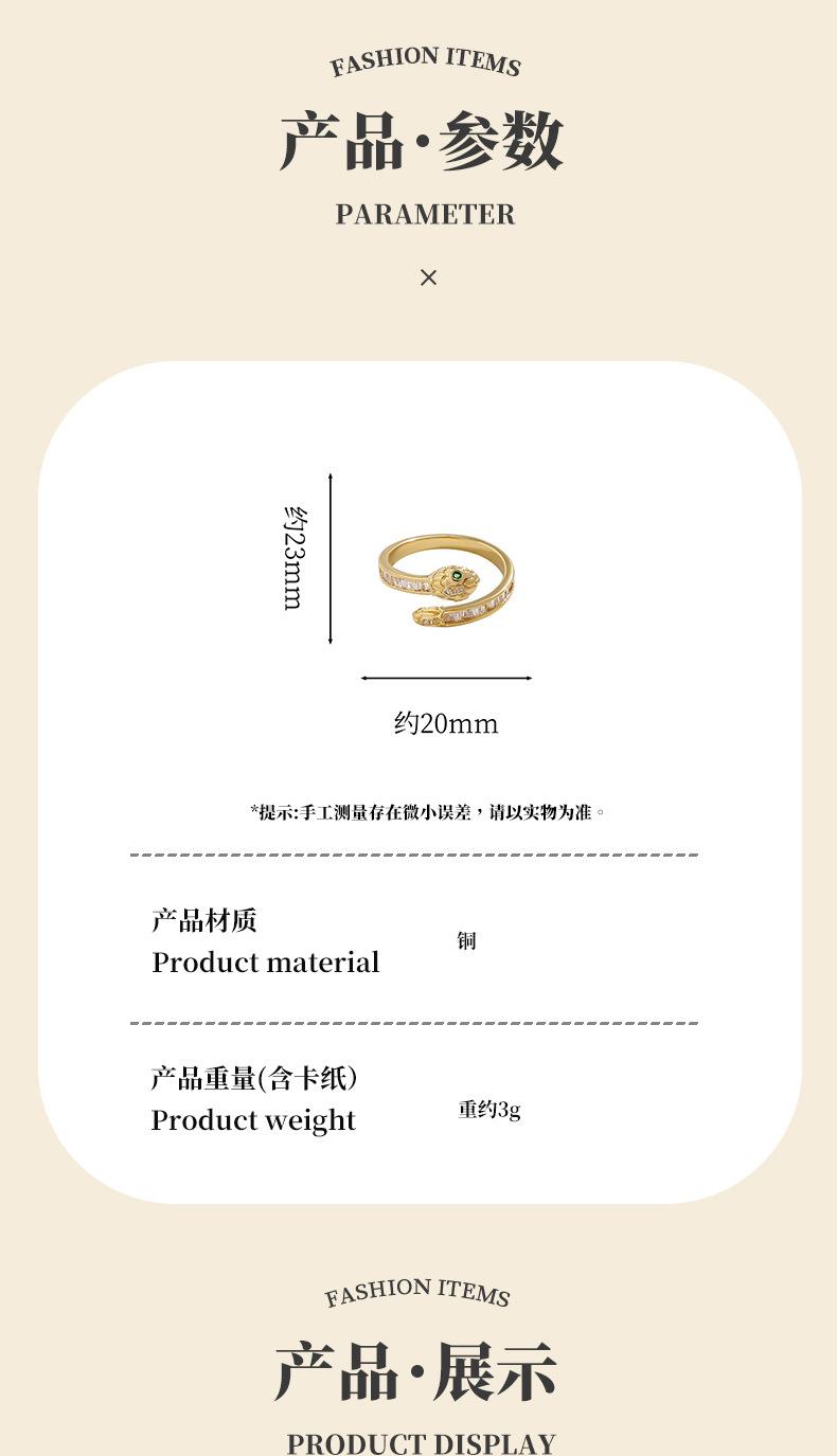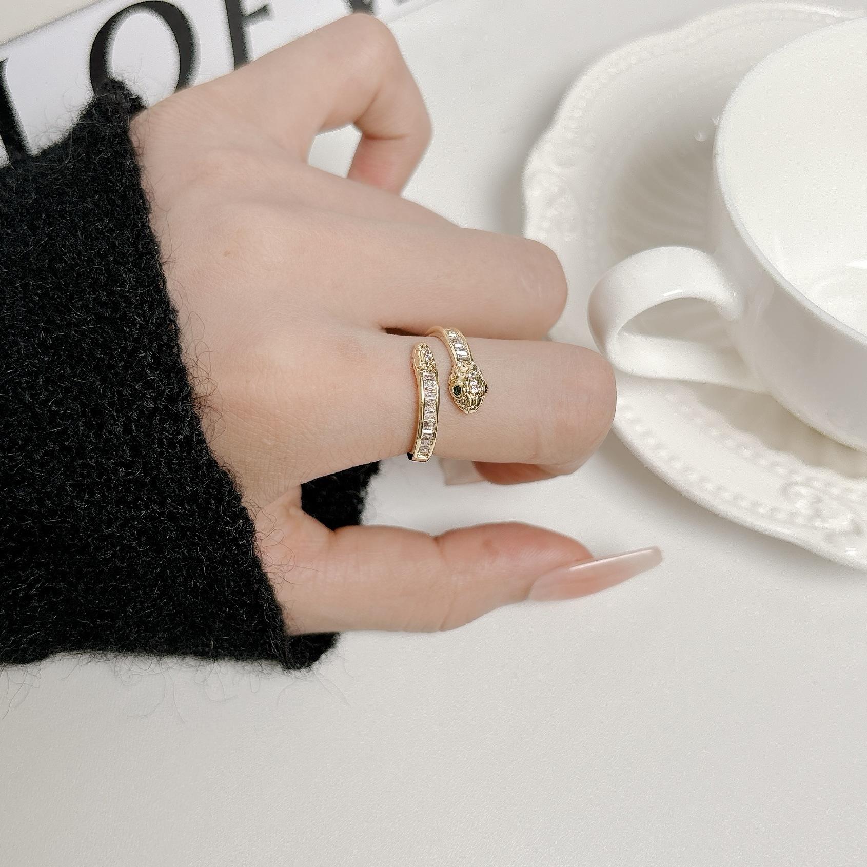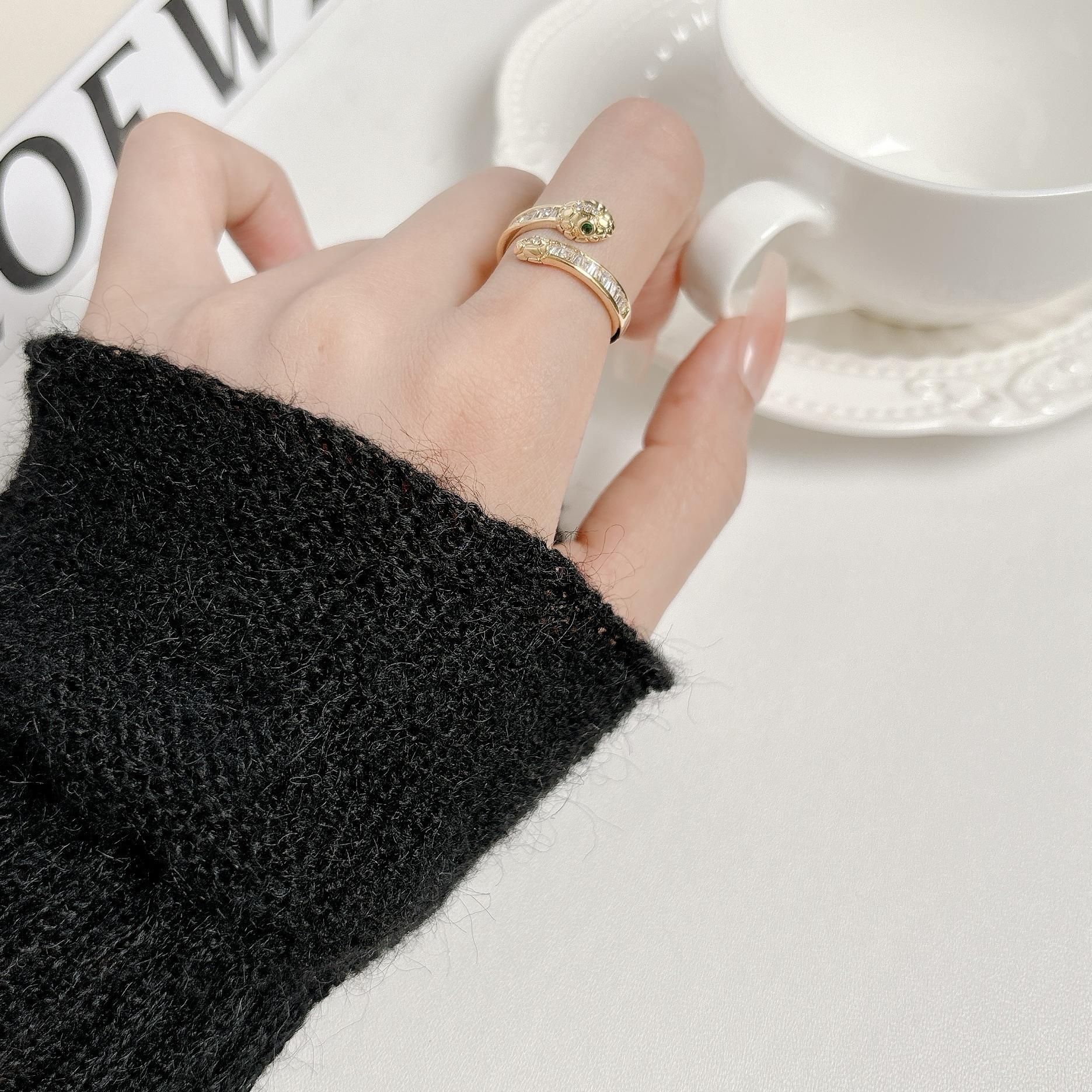 Anillo Abierto de Circonita Estilo Serpiente de Lujo Ligero Estilo Ins Anillo Elegante Femenino Nicho Alta Gama Estilo Lujo Accesible Anillo para Dedo Índice Venta al por Mayor