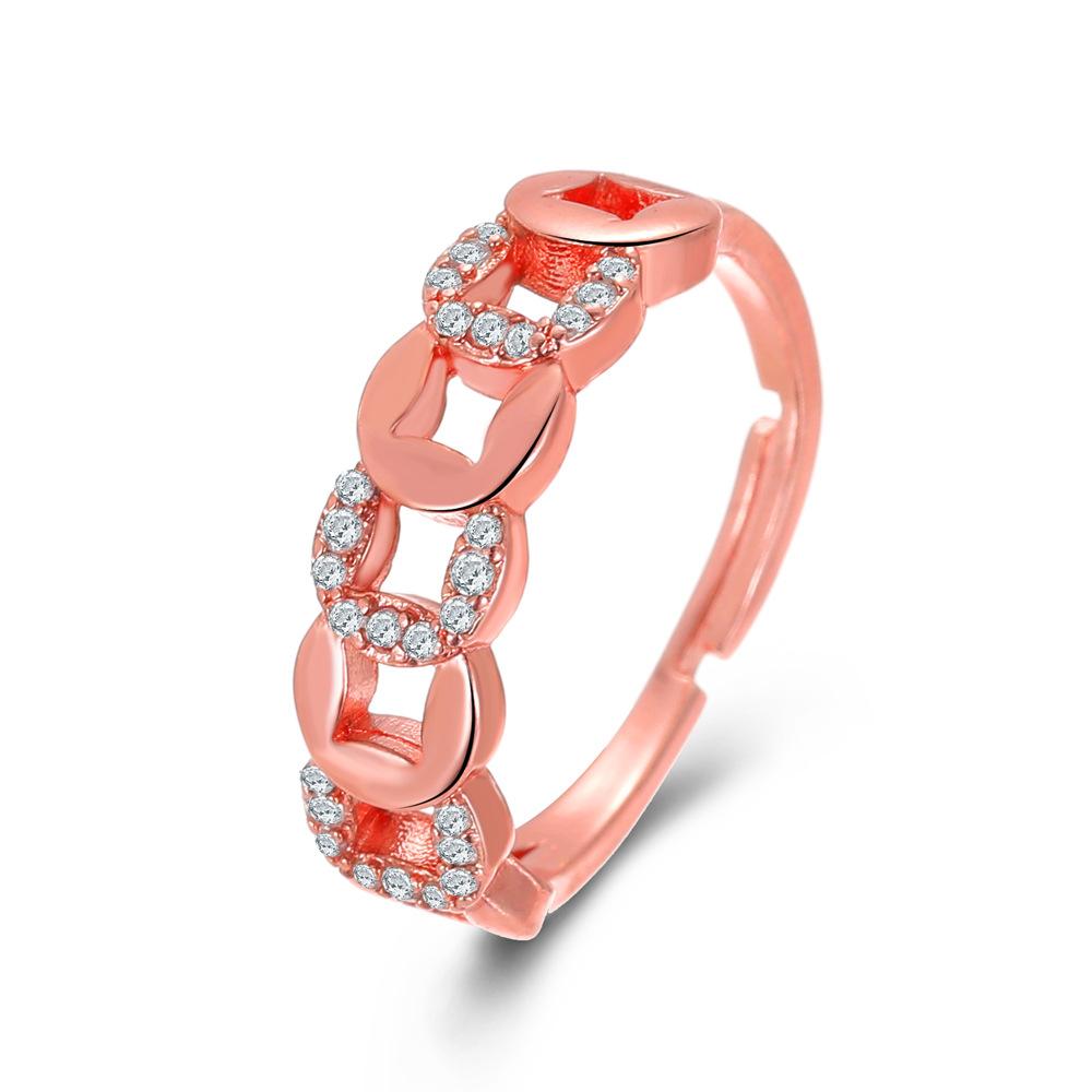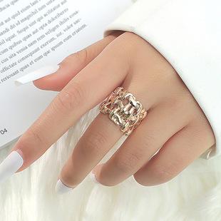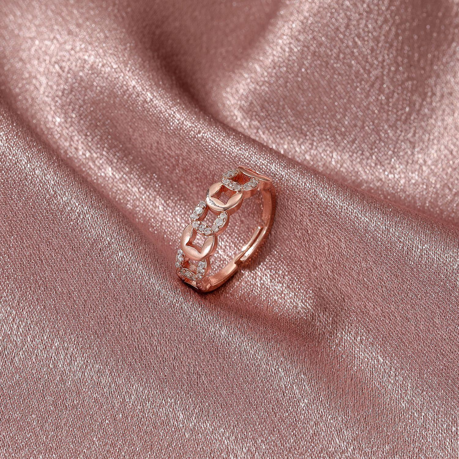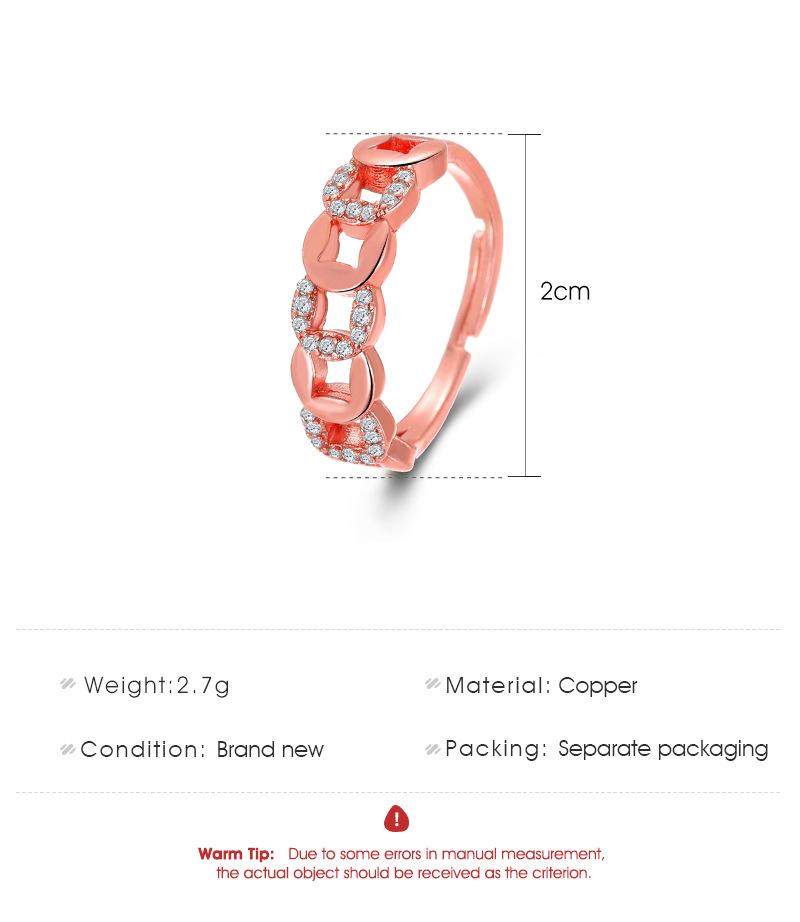 Anillo de cadena distintivo europeo y americano, estilo retro, con incrustaciones de cobre y circonitas, apertura hueca, joyería geométrica.