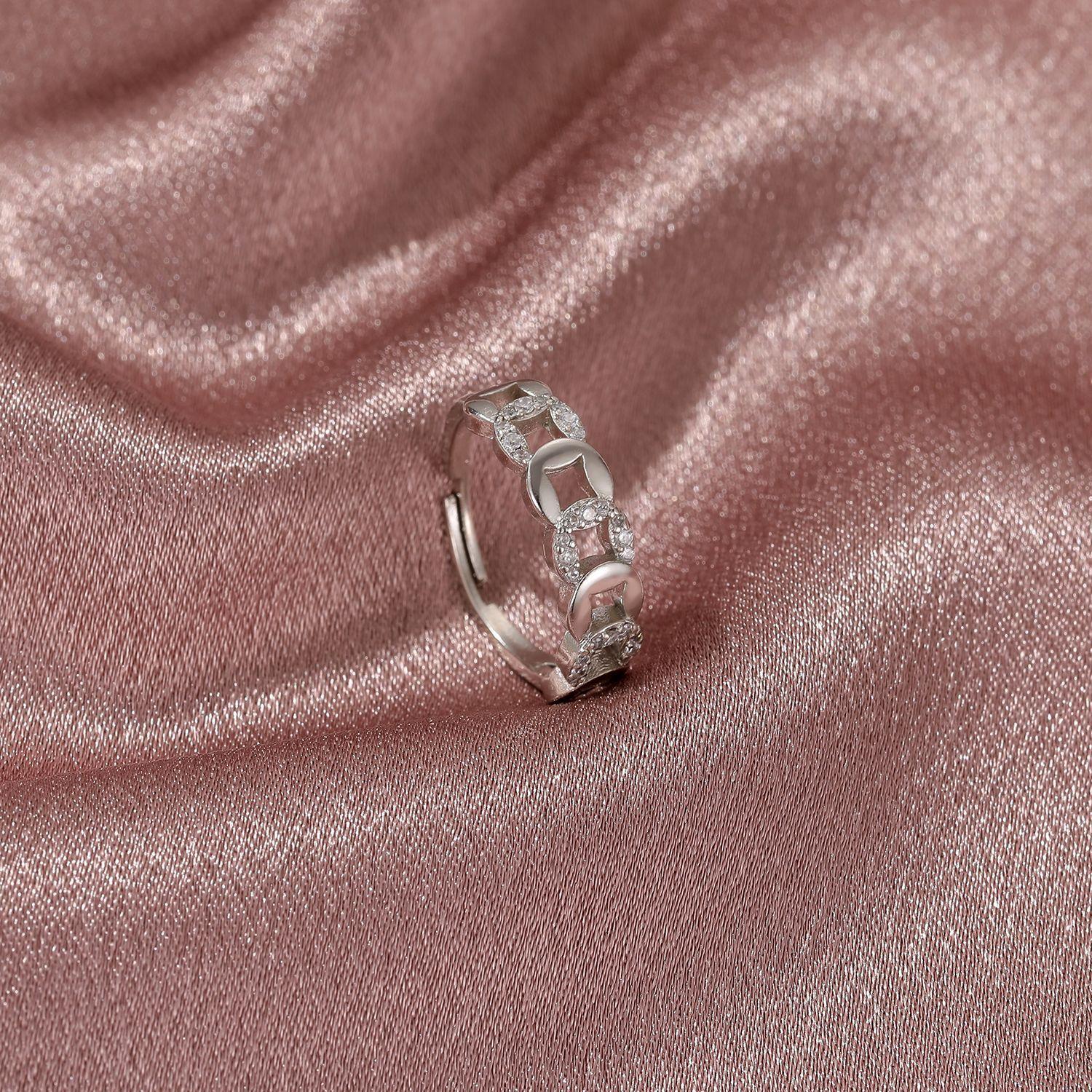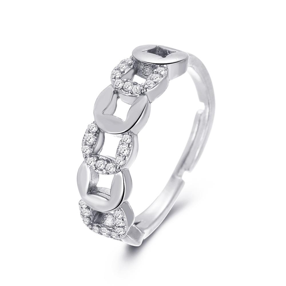 Anillo abierto hueco de cadena de circón de nueva personalidad europea y americana ins anillo ajustable de moda retro femenino al por mayor