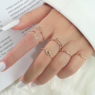 Amazon nuevo juego de anillos abiertos geométricos personalizados retro metal anillo ajustable joyería de mano femenino al por mayor