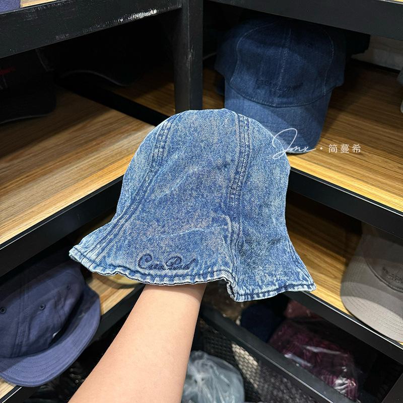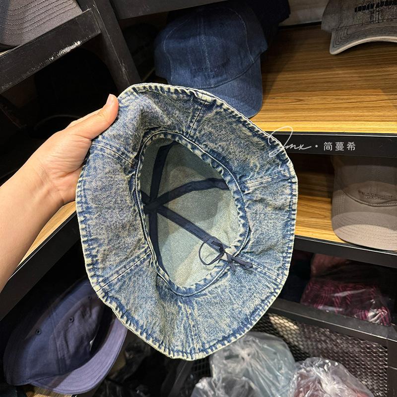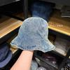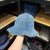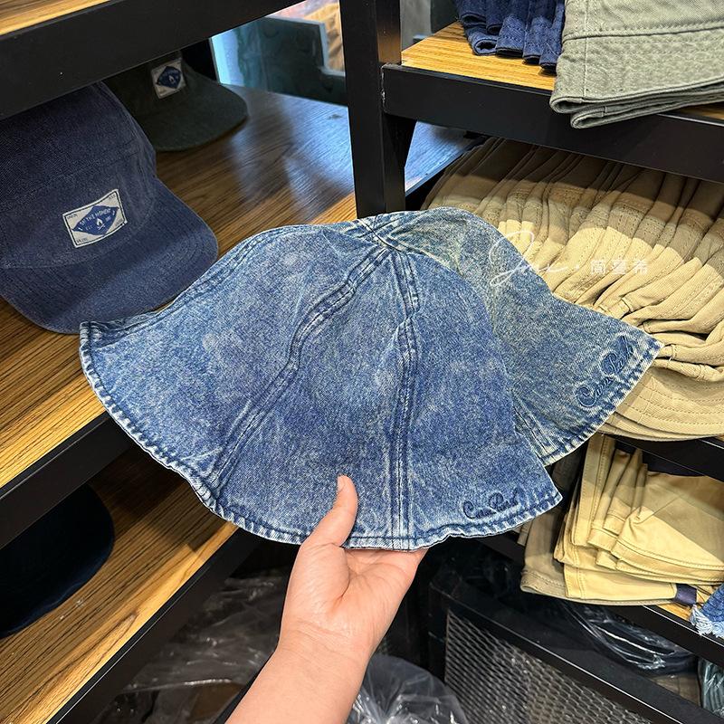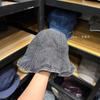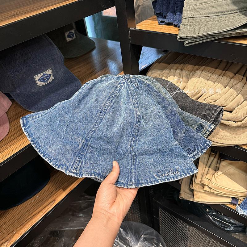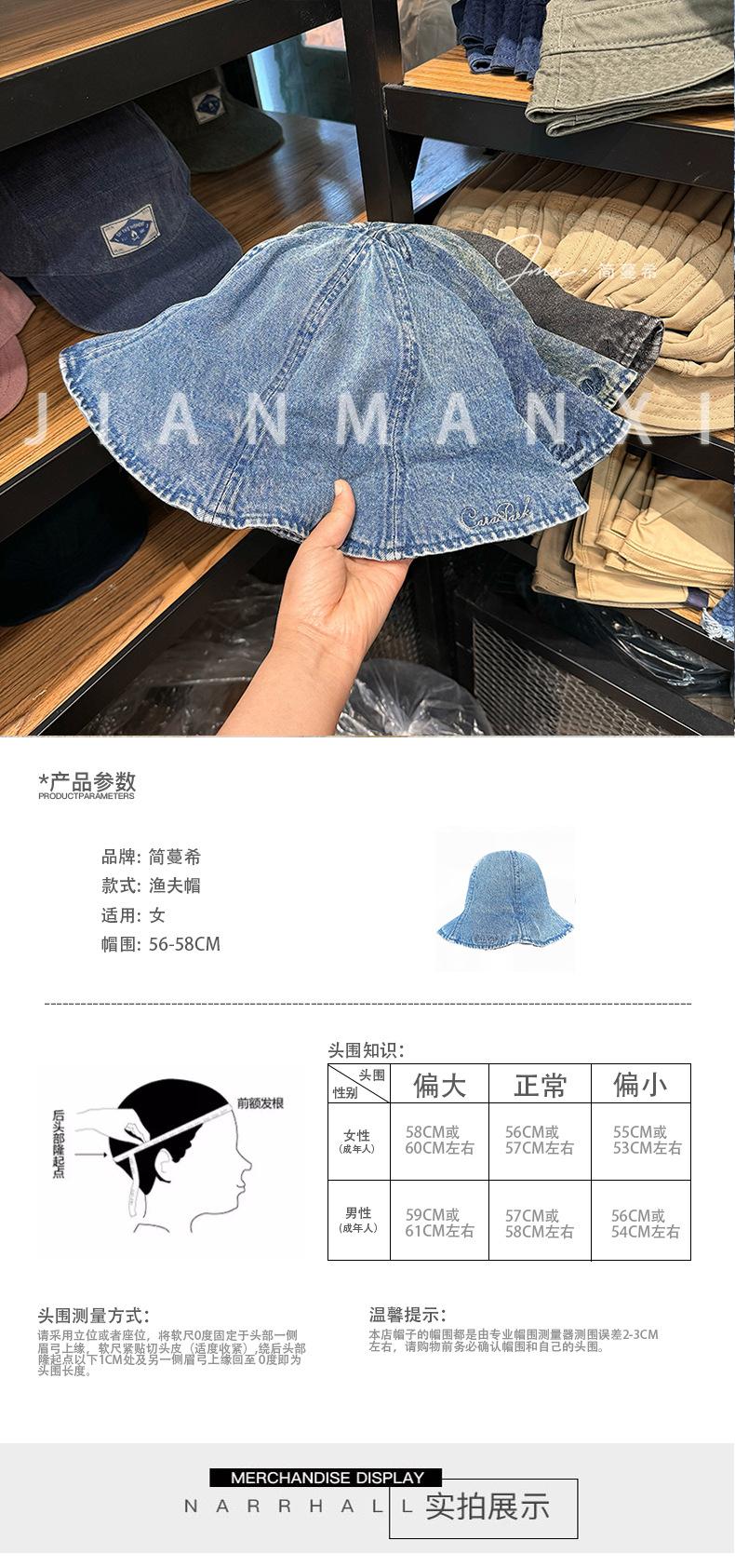 Circunferencia de cabeza grande cúpula ala bordado de letras retro japonés casual lavado sombrero de pescador de mezclilla hombres y mujeres sombrero para el sol