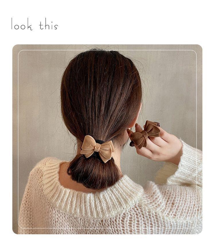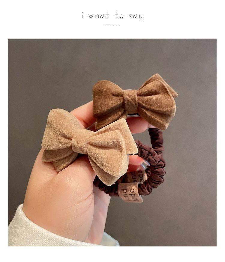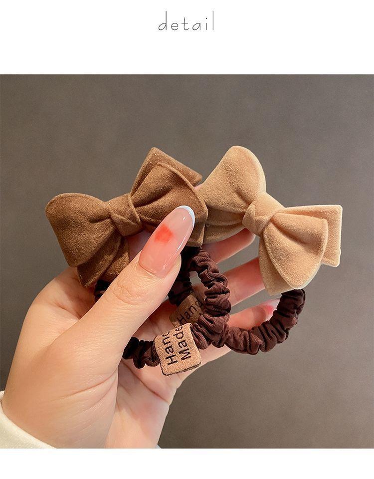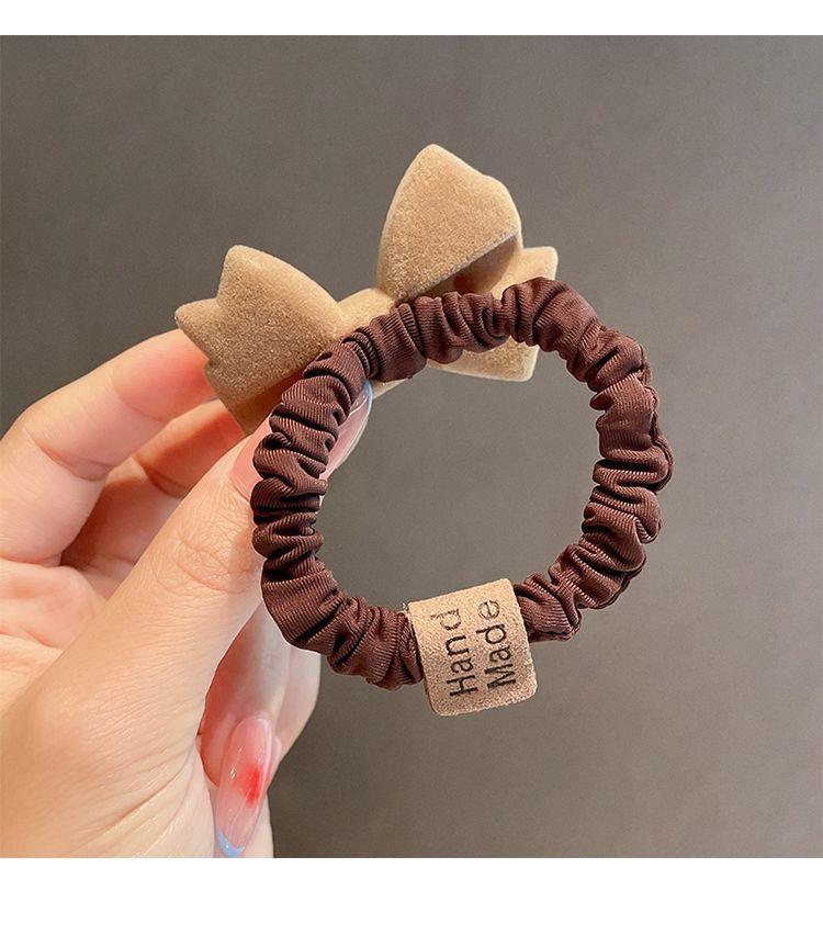 Otoño e Invierno Nuevo Anillo para el Cabello con Lazo Color Té con Leche Cuerda para el Cabello Lindo Simple Goma Tendón Cola de Caballo para Niña Cuerda para el Cabello Accesorios para el Cabello