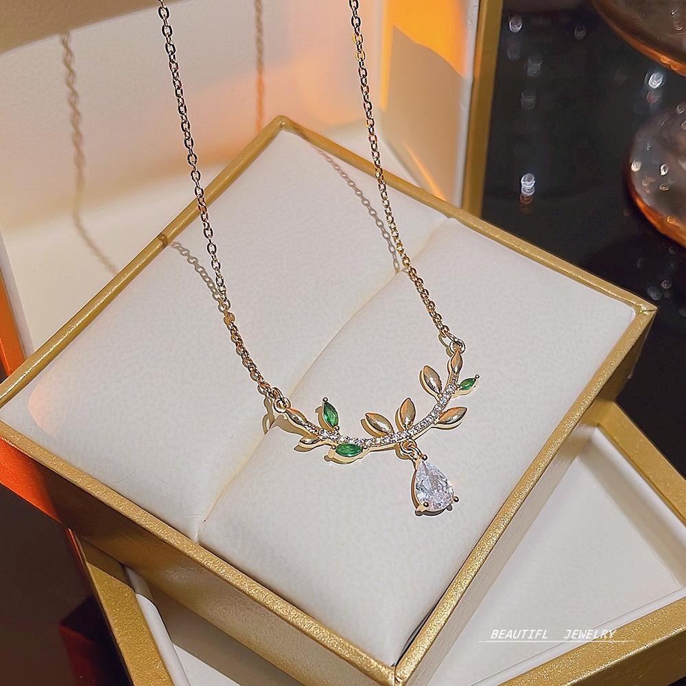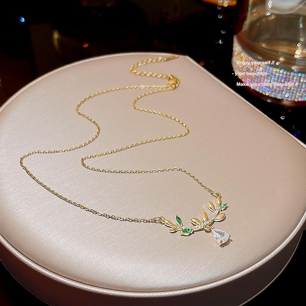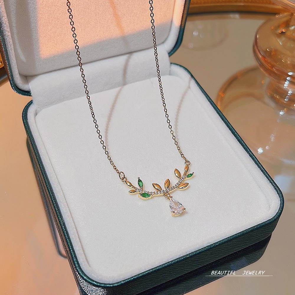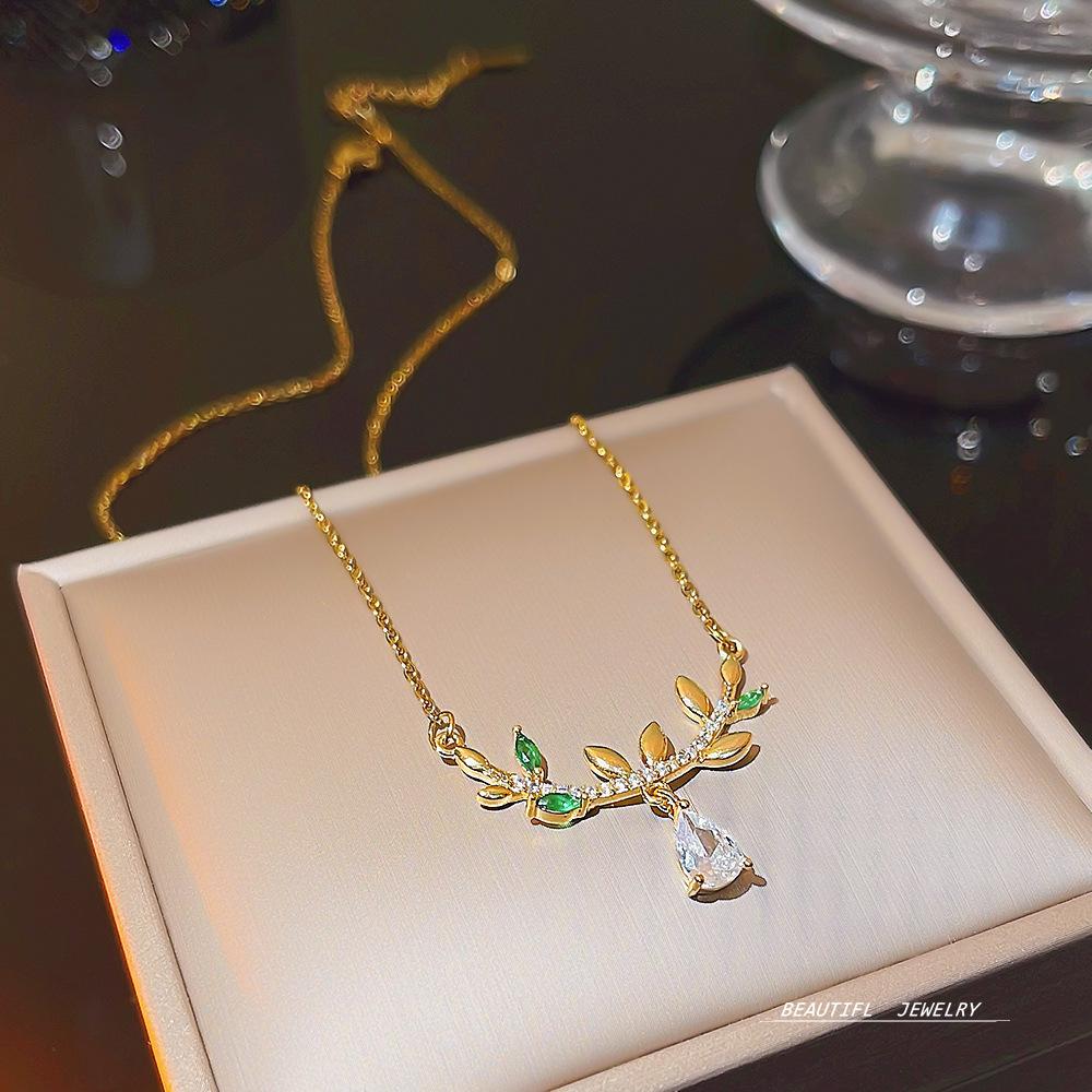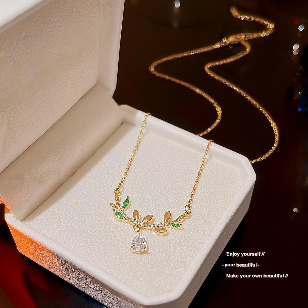 Nuevos accesorios Yiwu, cadena de clavícula de lujo ligera de nicho de alta calidad, elegante collar de cadena de suéter de asta de elfo que combina con todo para mujeres