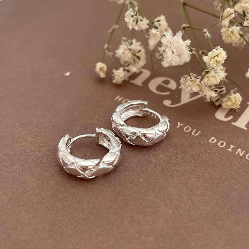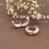Aretes de Plata Esterlina 925 con Patrón y Aretes para Mujer Diseño Nicho Europeo y Americano Retro de Alta Gama Estilo Ins Aretes de Aro Metálicos