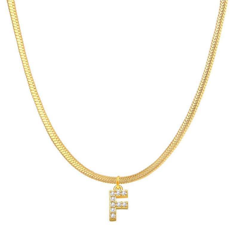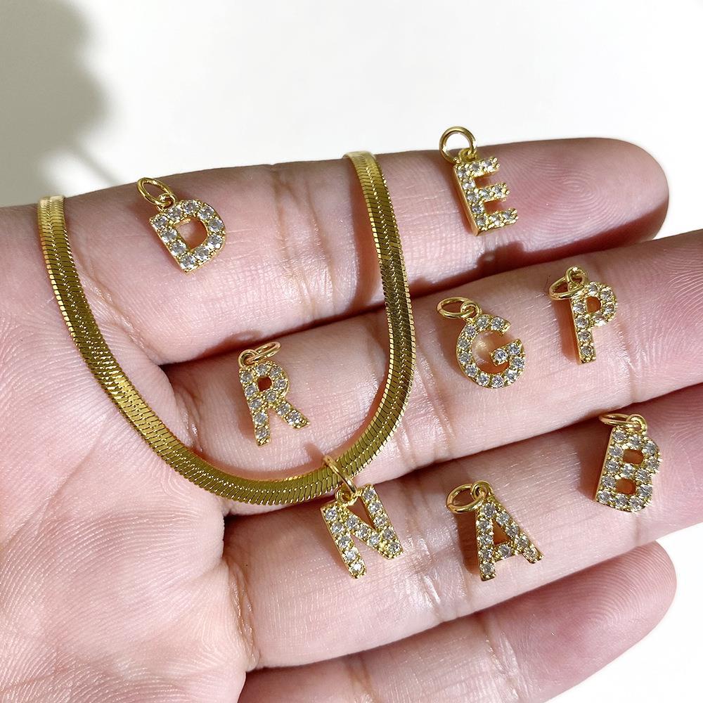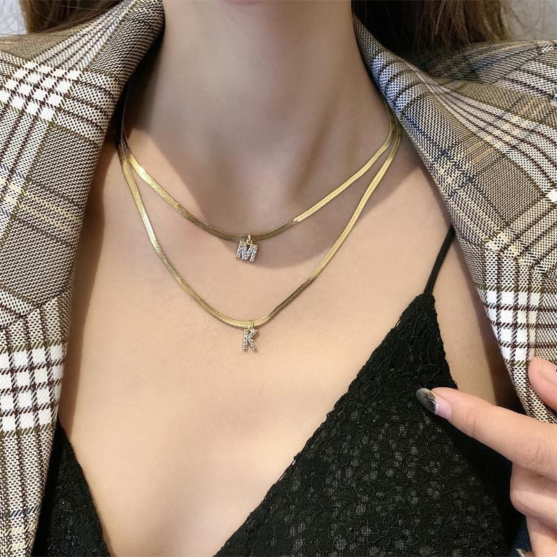 Collar ajustable de acero de titanio con 26 letras en inglés europeo y americano, cadena de clavícula con hueso de serpiente plano retro francés y colgante de diamantes apilados
