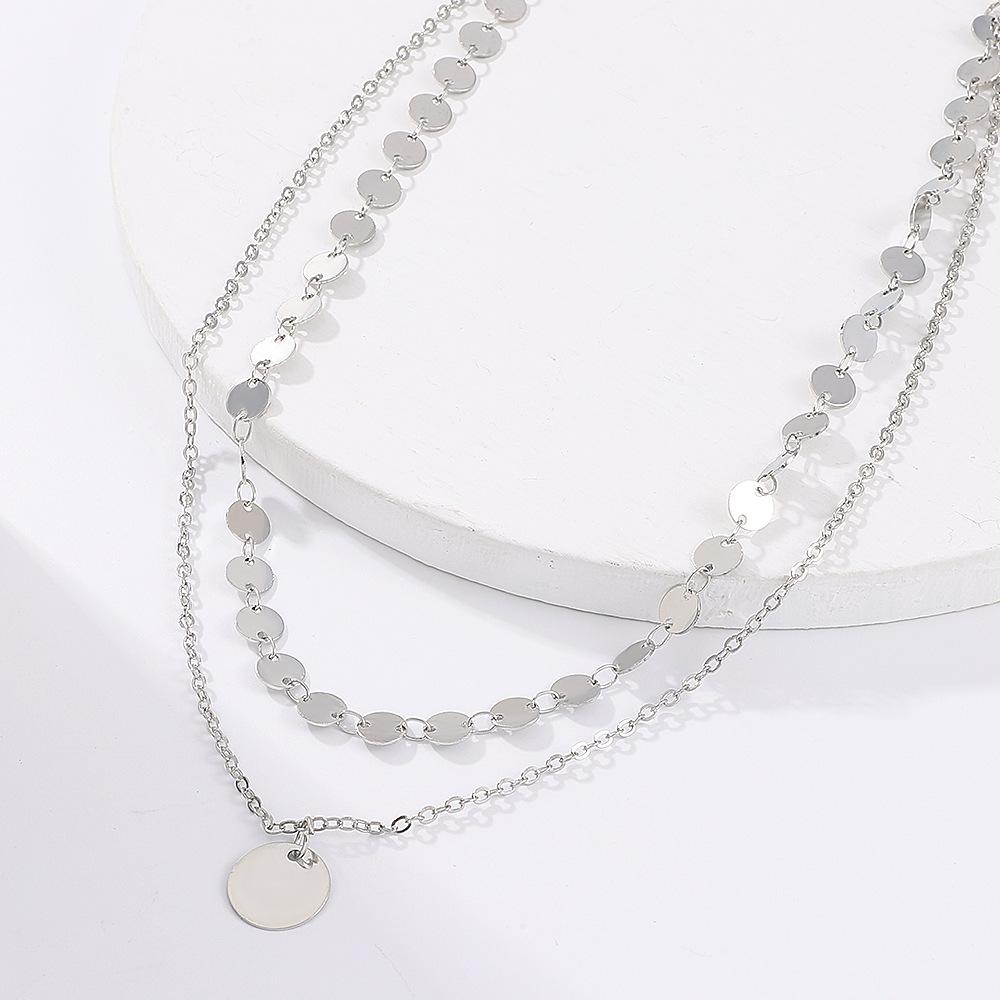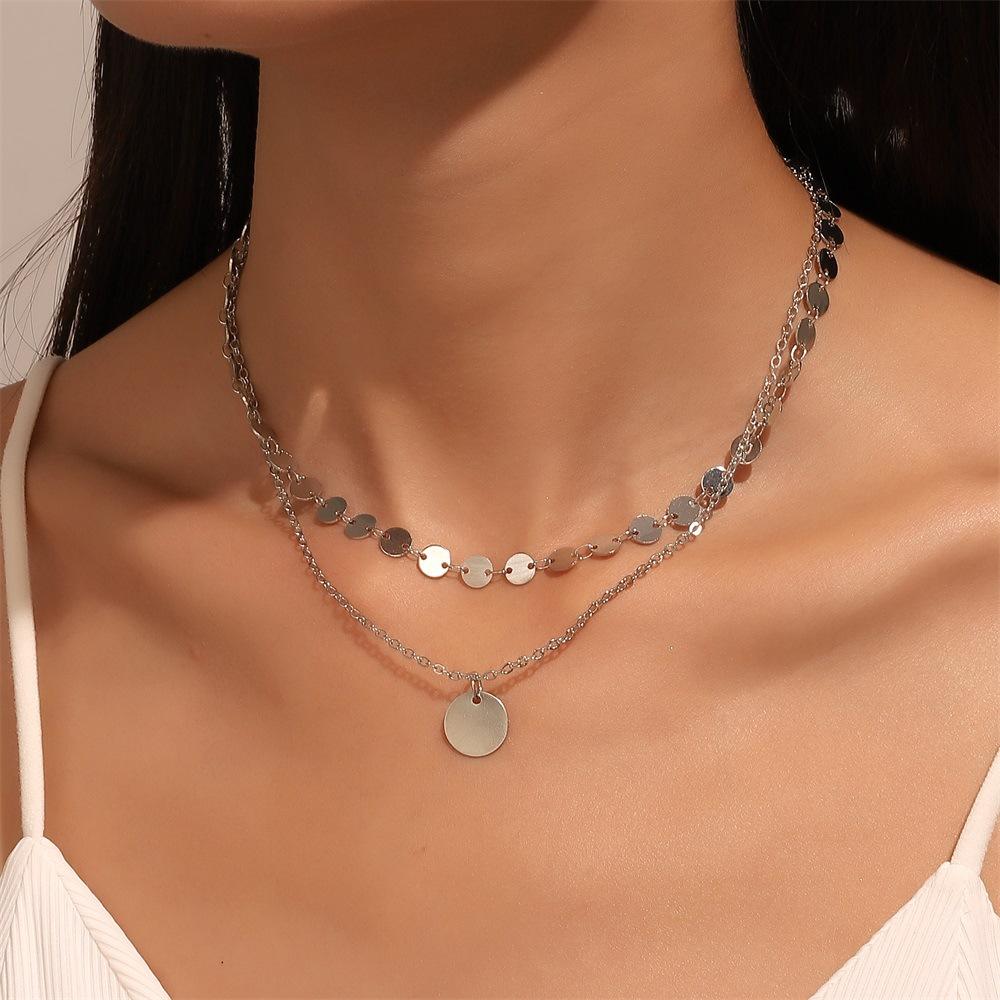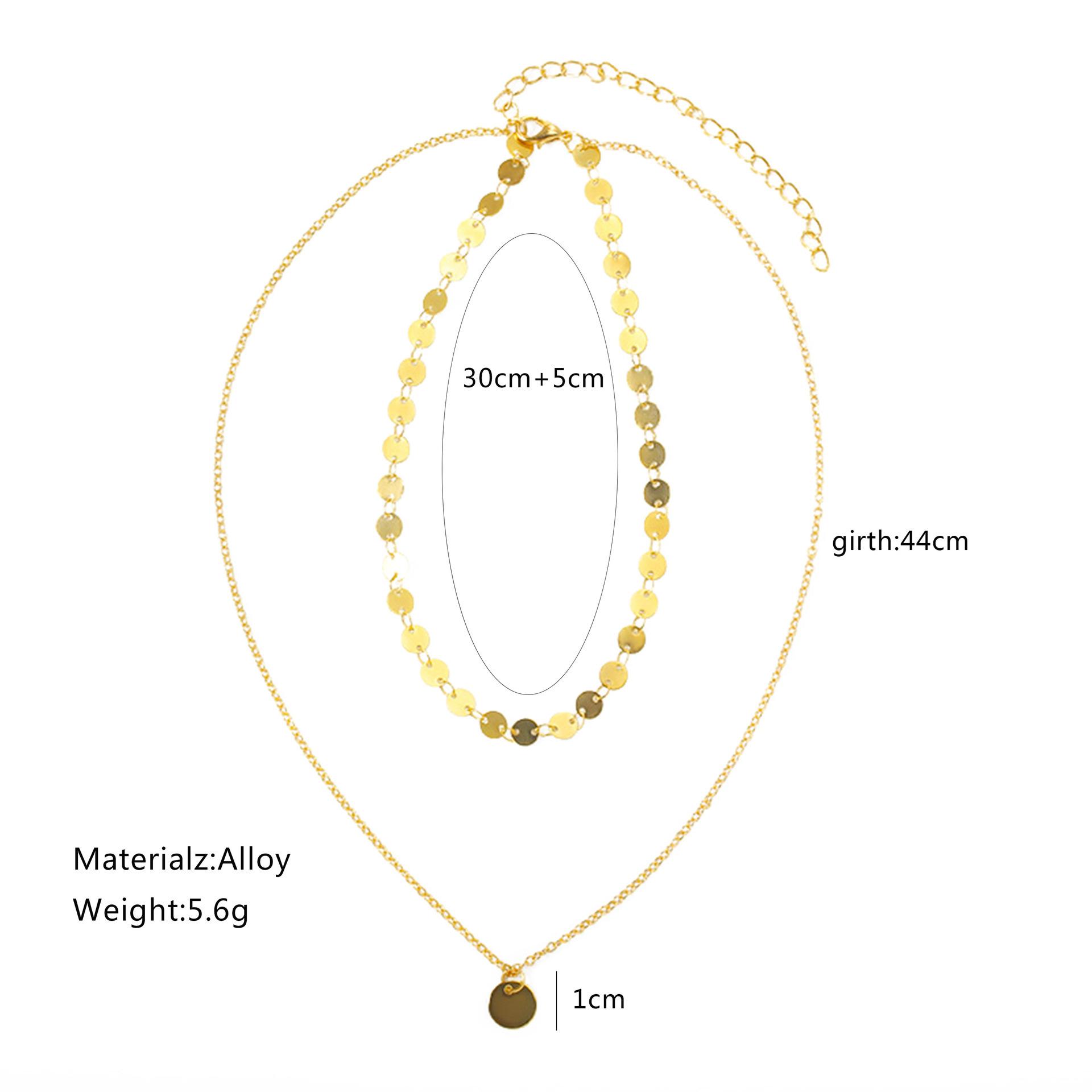 Collar de lentejuelas hecho a mano de aleación de estilo nacional de comercio exterior transfronterizo, collar simple de cadena chapada en oro de doble capa y múltiples capas para mujer