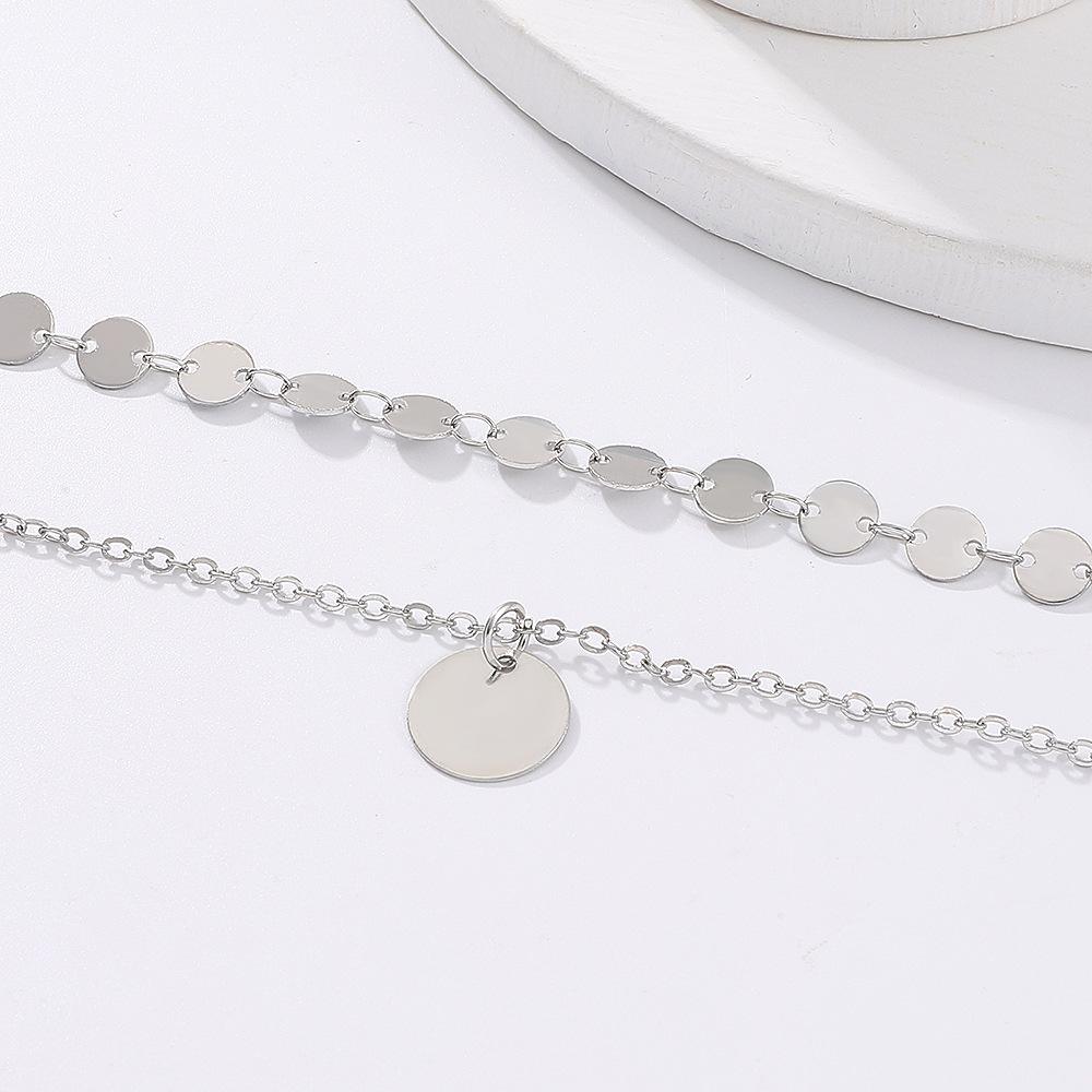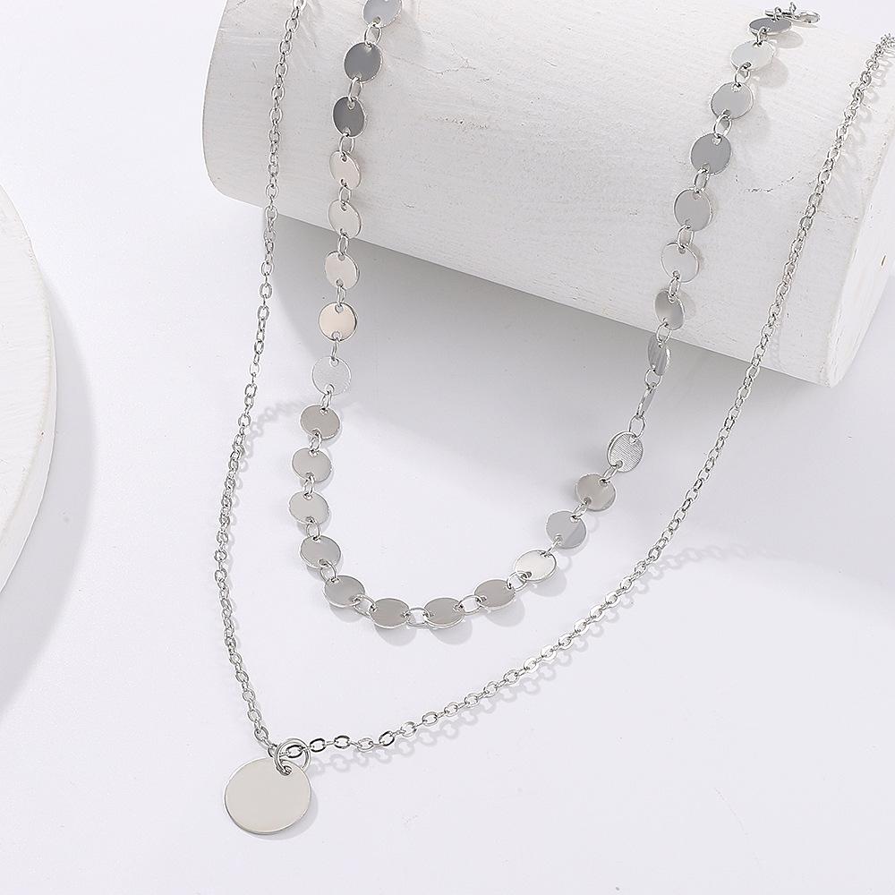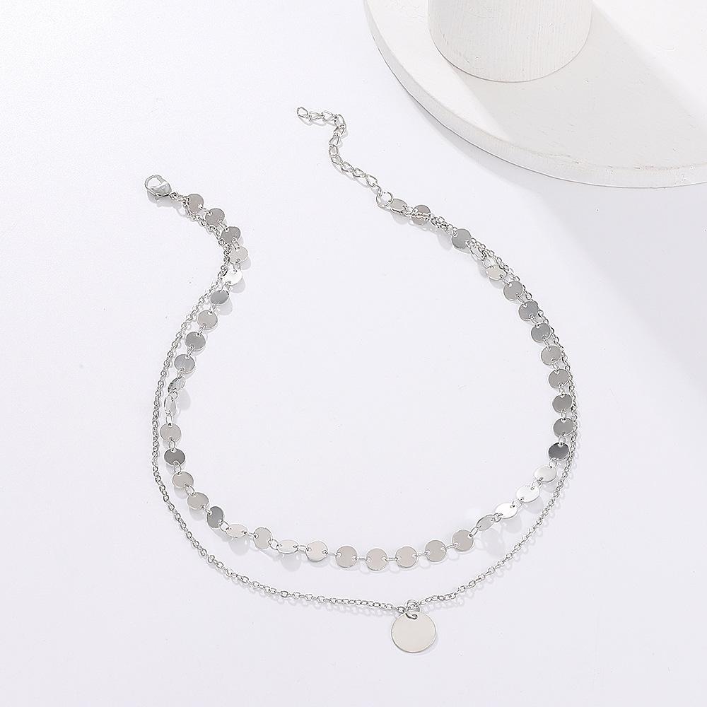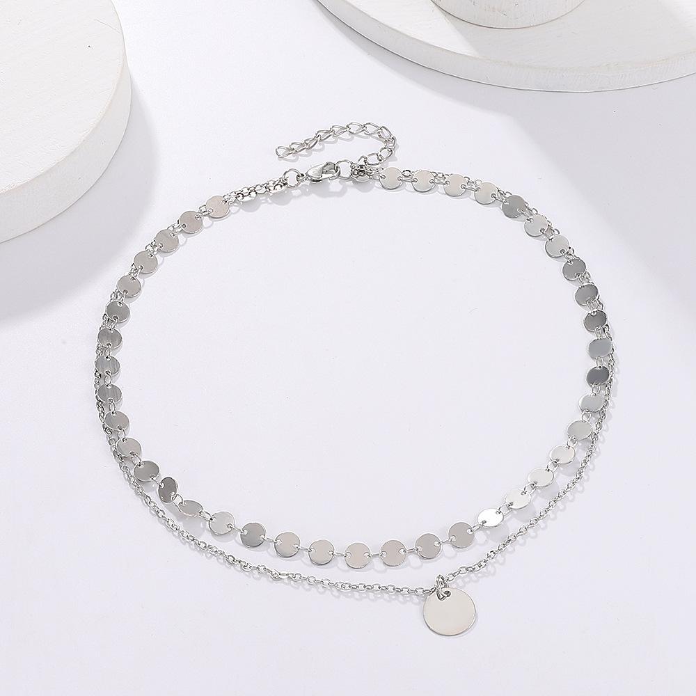 Collar de lentejuelas hecho a mano de aleación de estilo nacional de comercio exterior transfronterizo, collar simple de cadena chapada en oro de doble capa y múltiples capas para mujer