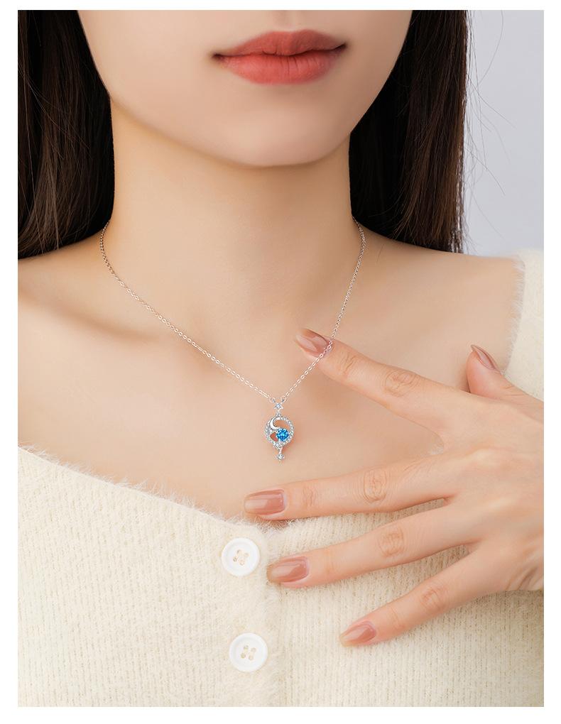 Collar de plata 999 con diseño de gato de la suerte para mujer, cadena de clavícula Ruyi de lujo con colgante de campana de viento.