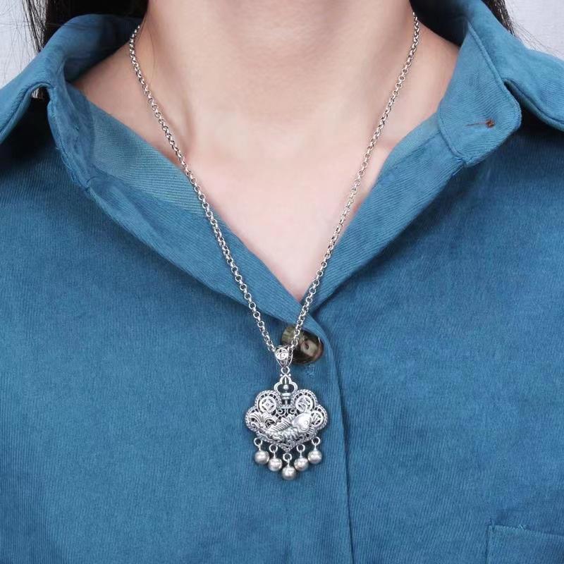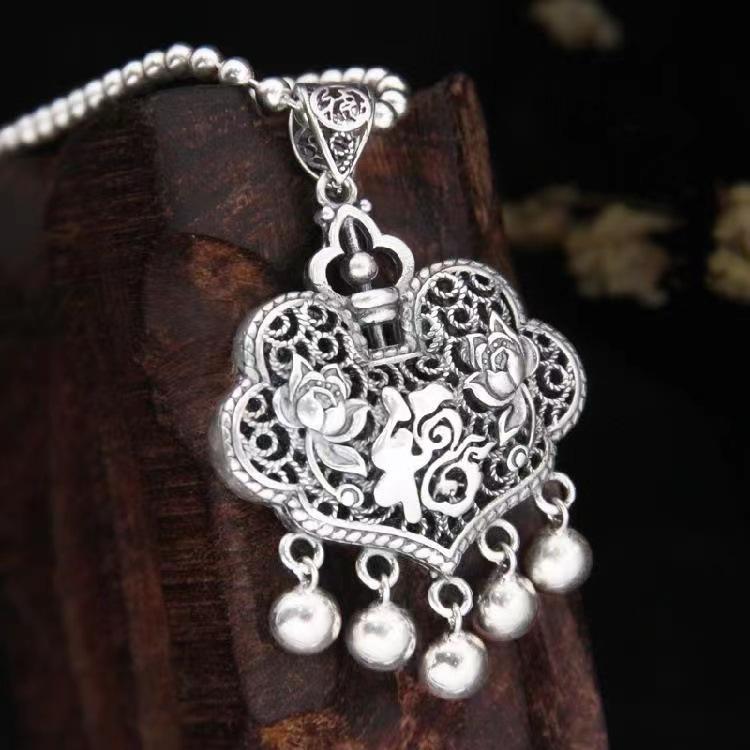 Colgante Candado Corazón de Xiangxu Fu Zi Colgante Étnico Retro Hueco de Loto Año tras Año Más que Colgante de Koi