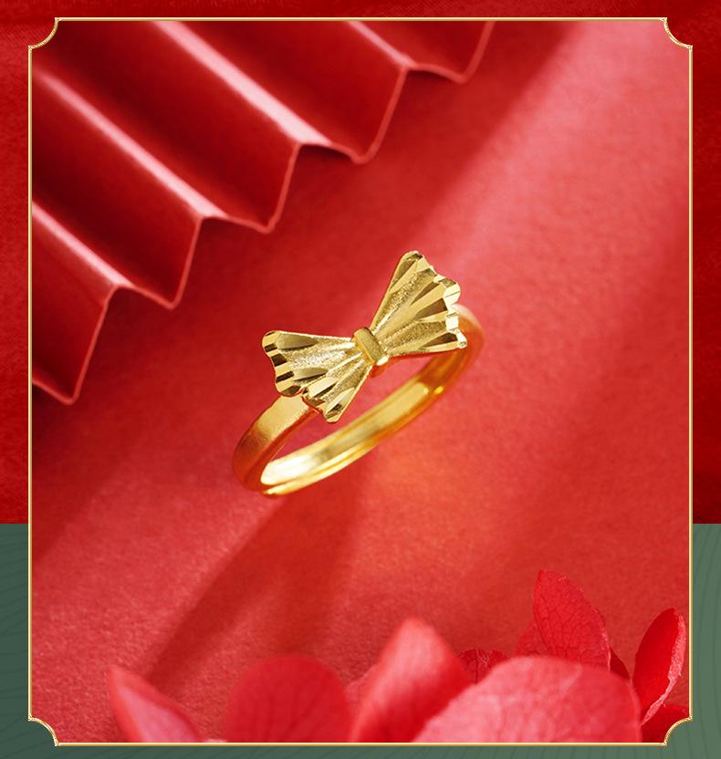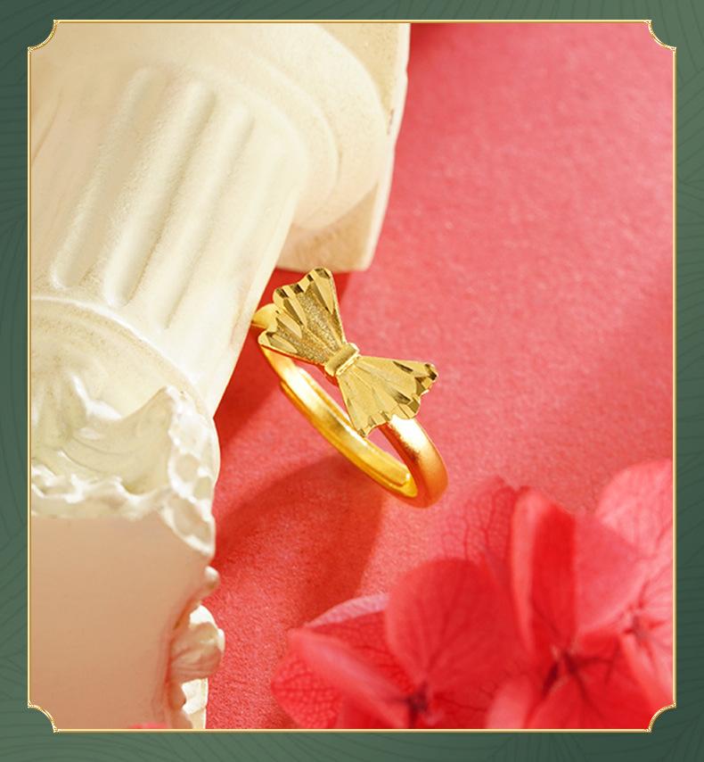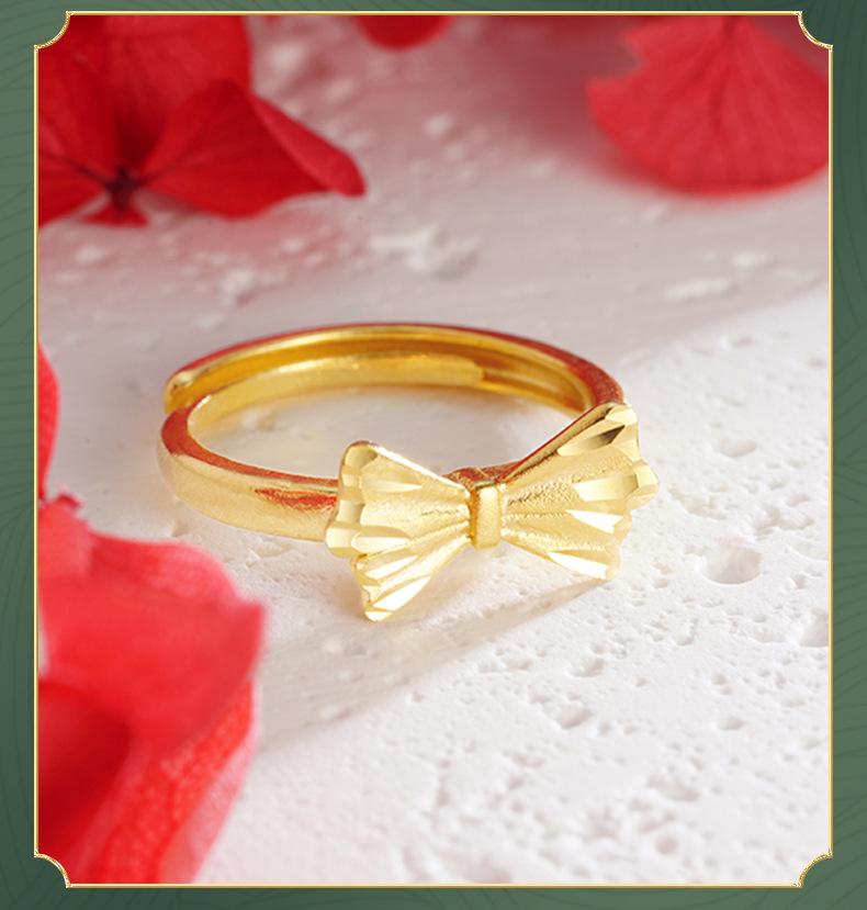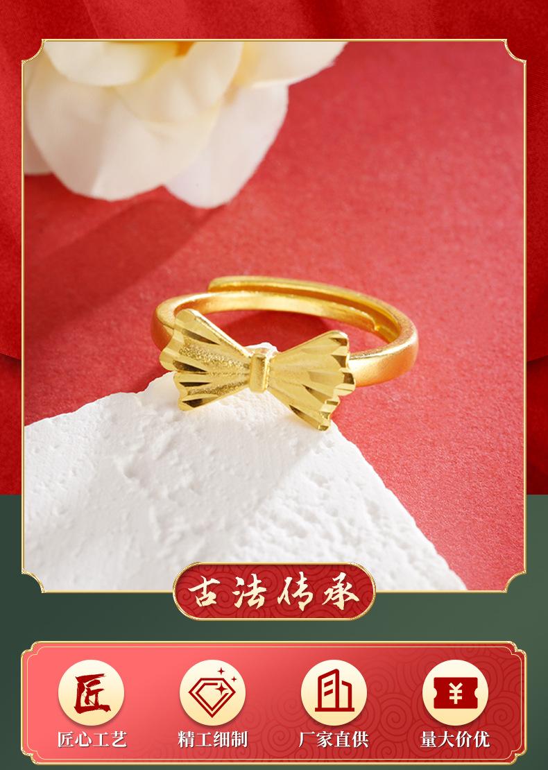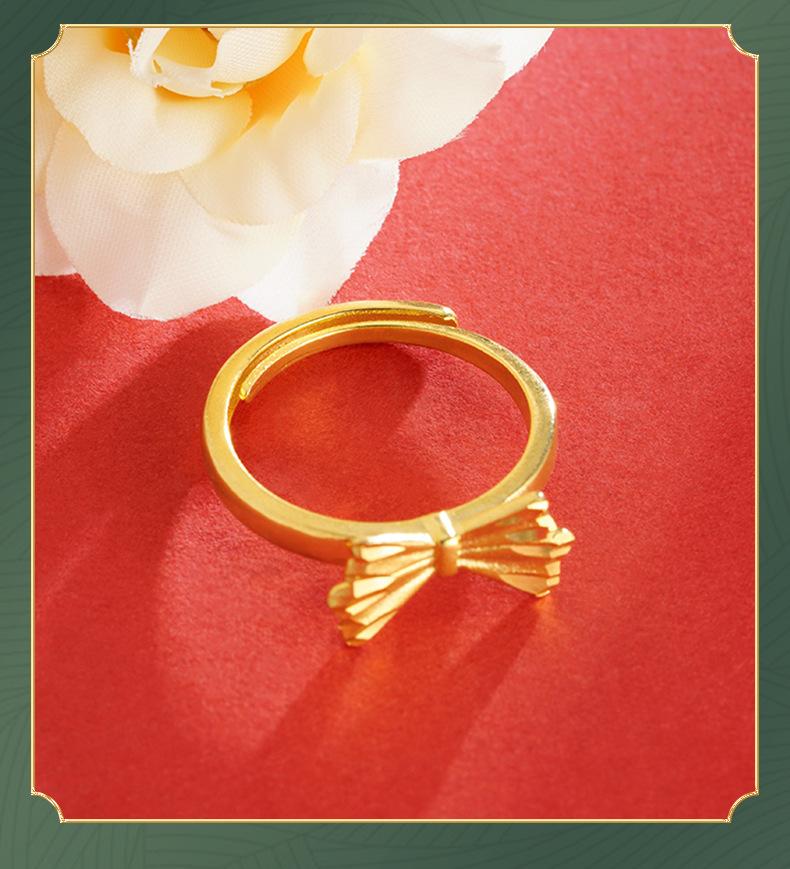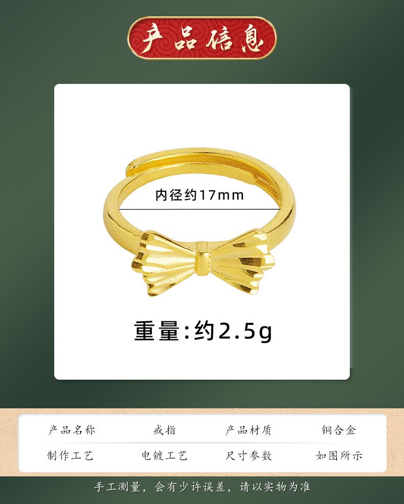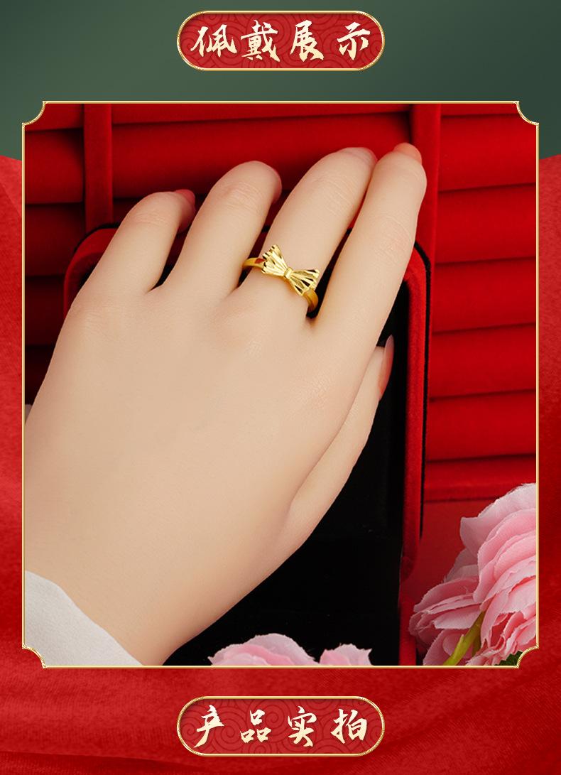 Nuevo anillo de oro de imitación lazo para mujer que no se desvanece por mucho tiempo nicho sentido de alta gama artesanía chorro de arena anillo abierto femenino de oro arena